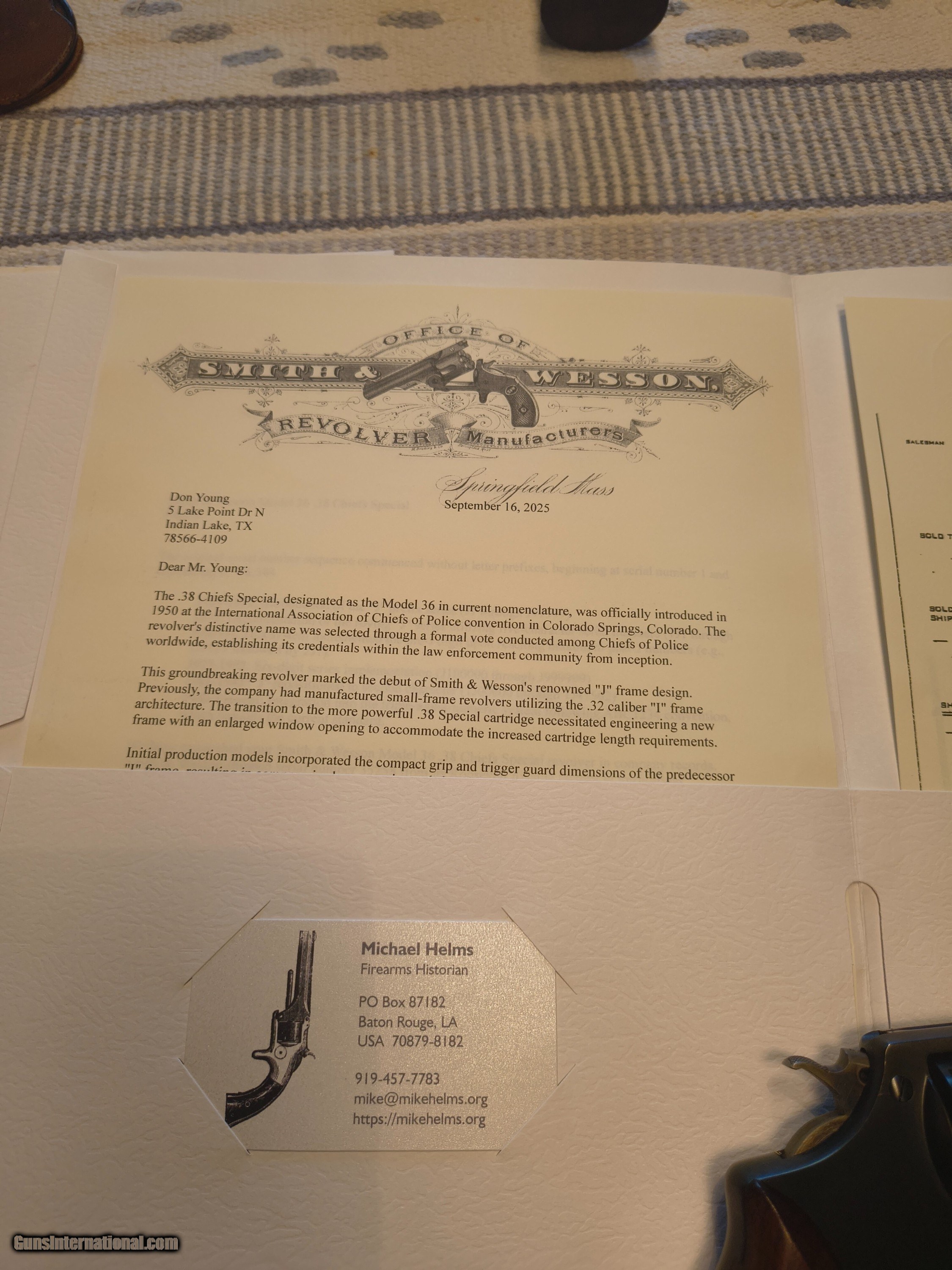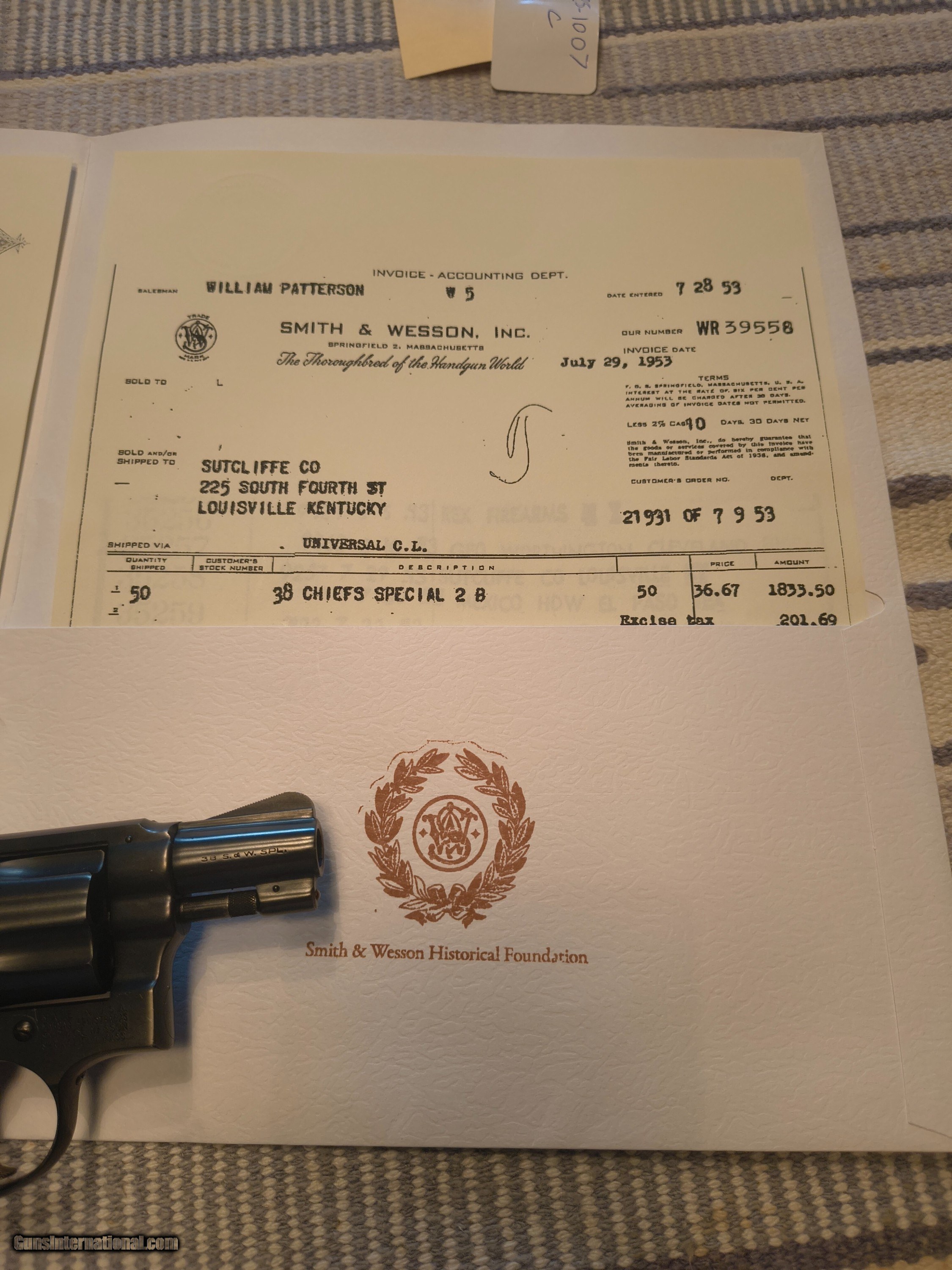 Mint original condition "BABY" Chief Special shipped 7/29/53 comes with SWHF Letter. No box. Call for Price !!!