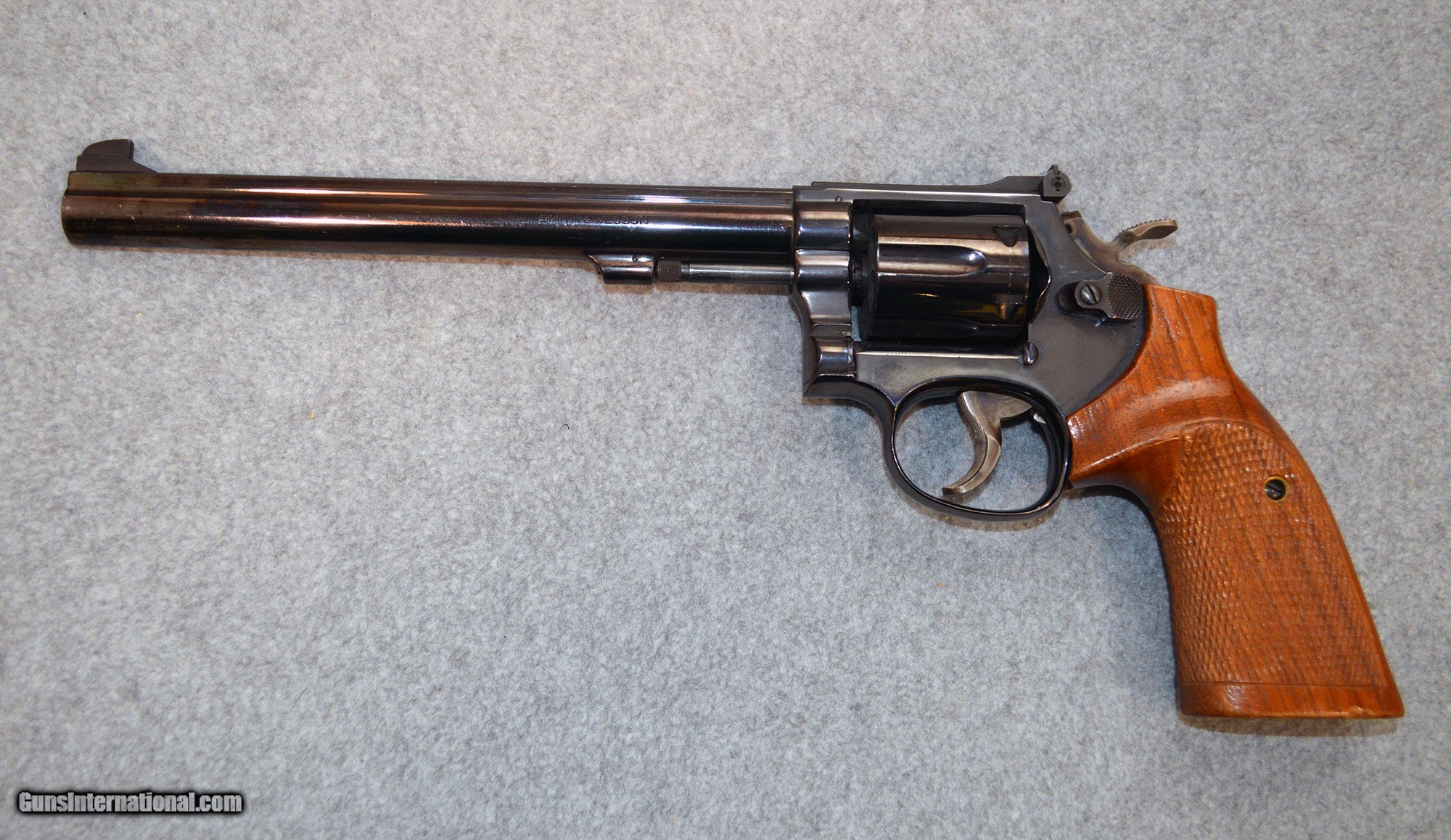 Description: This Smith & Wesson Model 14-4 is a classic K-frame double-action revolver chambered in .38 S&W Special +P. Known as the "K-38 Masterpiece" it features a 6" pinned barrel, adjustable target sights with Patridge front sight and micrometer-click rear sight, a serrated trigger, and a target hammer for precise trigger control. Finished in deep blue with checkered walnut Magna-style grips and a diamond insert around the grip screw, The Model 14-4 is widely regarded as one of the finest production .38 Special target revolvers ever made. Its smooth double-action pull and crisp single-action trigger made it a favorite among bullseye shooters and Law Enforcement trainers during its era. Today it remains highly sought after by collectors and competitive shooters for its exceptional accuracy and timeless craftsmanship. This revolver is in very good condition. .38 S&W Special Chambers: .38 S&W Special Barrels: 8 Triggers: Serrated Weight: 2.55 lbs. Sights: Factory Item Location: Louisville, KY Price: $599.99 Contact Seller |