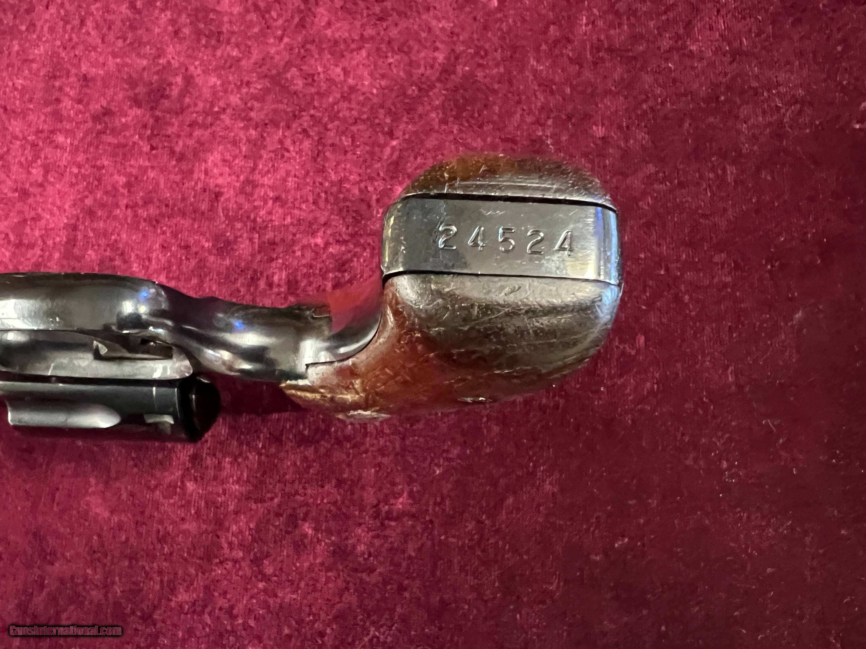 Description: Hello. Today we have a Smith & Wesson Model 40 in 38 special. This revolver has a 2" barrel. It is 95% blue with Smith and Wesson grips. This gun has been fired very little and has a "lemon squeeze backstrap safety." The serial number is 24524. If you have any questions, feel free to contact us. Buyer pays shipping. We charge 3% on all card transactions. SOLD Curio/Relic: Yes Handgun Caliber: .38 Special Manufacturer: Smith & Wesson Model: 40 Serial Number: 24524 |