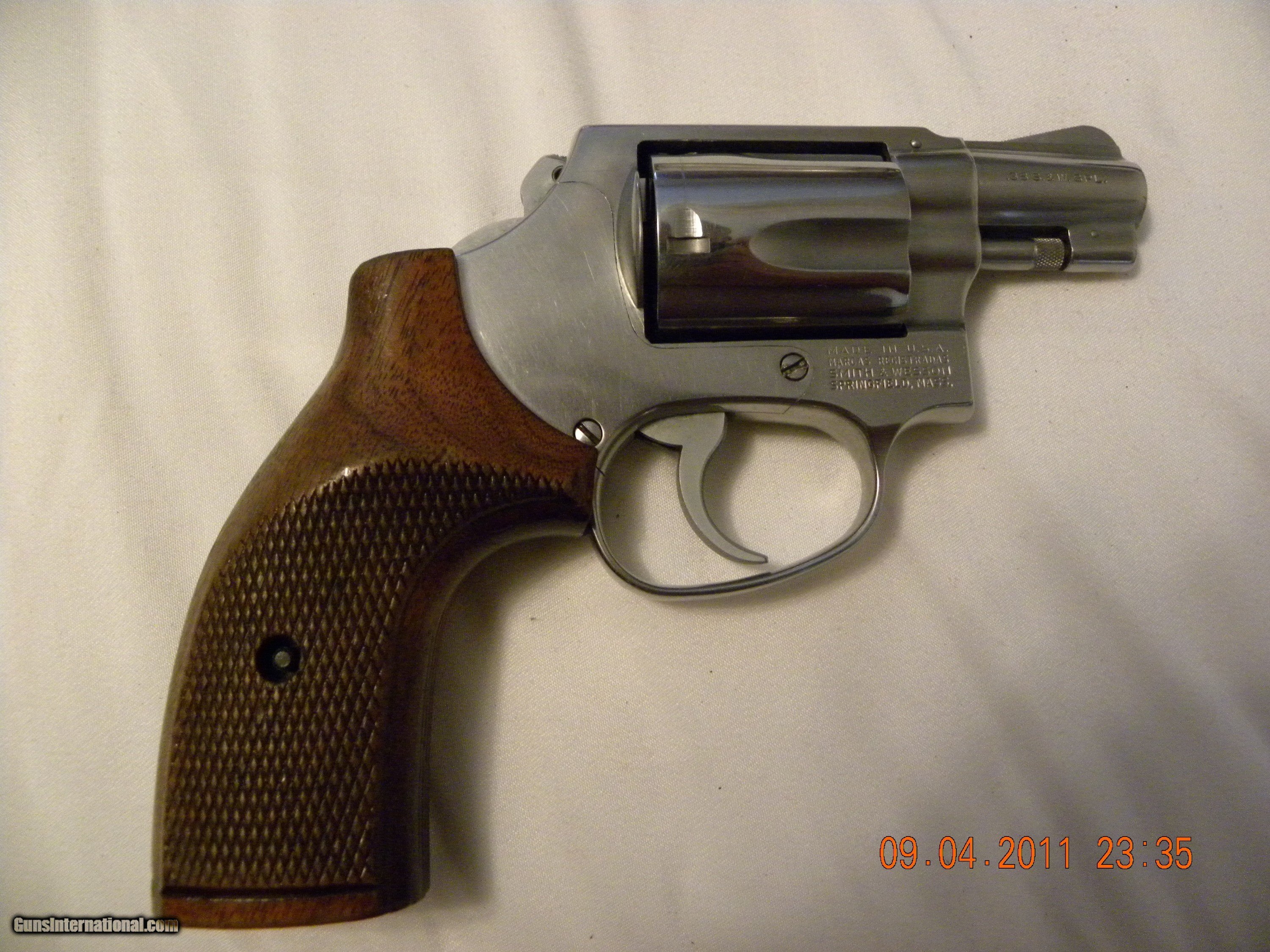 Description: Smith & Wesson - Model 60 - .38 Special - 5 shot, stainless steel, Herrett custom wooden grips, bobbed hammer. Excellent condition. SOLD Handgun Caliber: .38 Special Manufacturer: Smith & Wesson Model: 60 Condition: Excellent Metal Condition: Excellent Wood Condition: Excellent Bore Condition: Excellent Action: smooth double action |