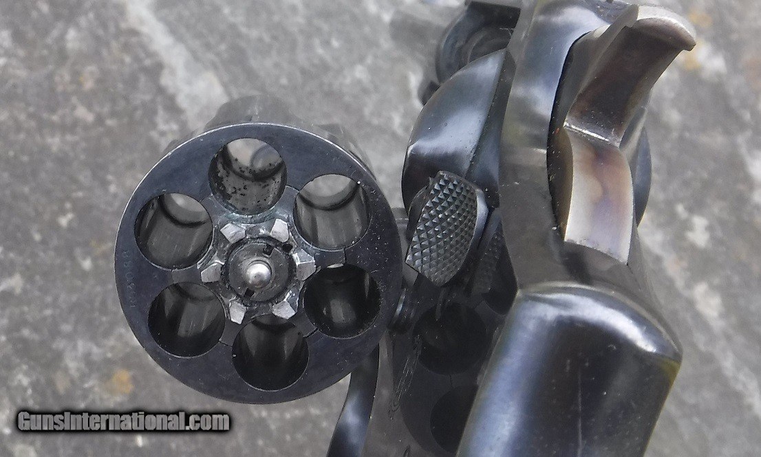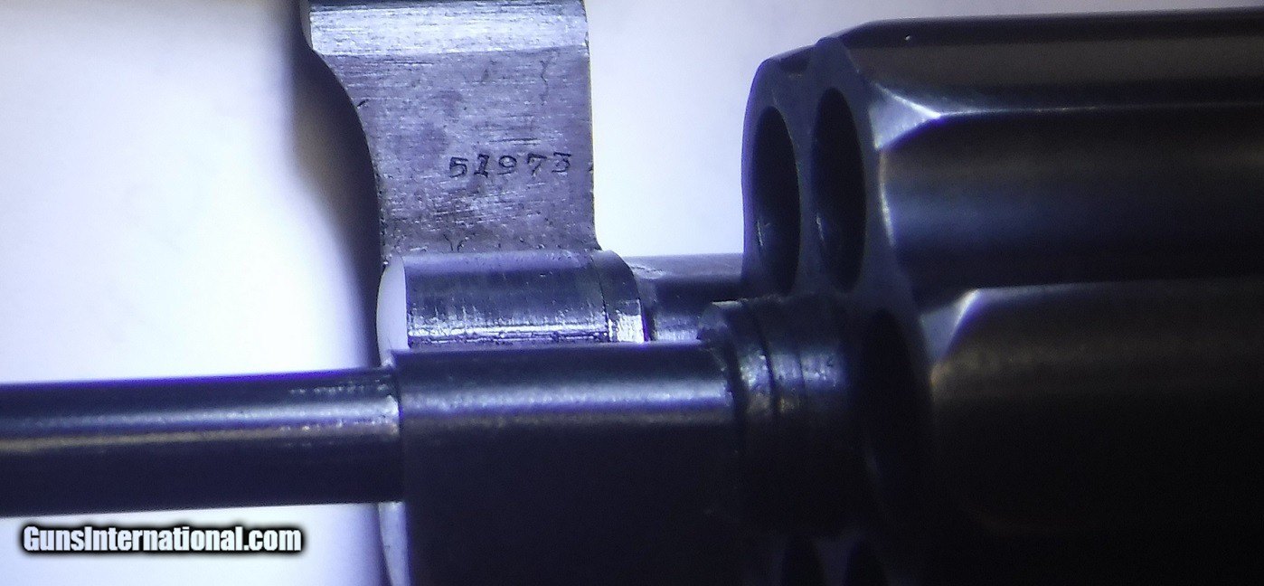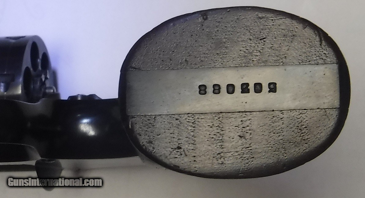 Description: SMITH & WESSON PRE MOD 10 -6 INCH BARREL - 38 SMITH & WESSON SPECIAL CTG. - SLIGHT CYLINDR DRAG MARK - LIGHT SCRATCH ON BARREL - 98% BLUE WITH SOME WEAR AT MUZZEL - VERY GOOD BORE - TIGHT LOCK UP -CASE COLORED HAMMER AND TRIGGER - WOOD GRIPS IN EXCELLENT CONDITON - NICE EARLY GUN Price: $750.00 Contact Seller |