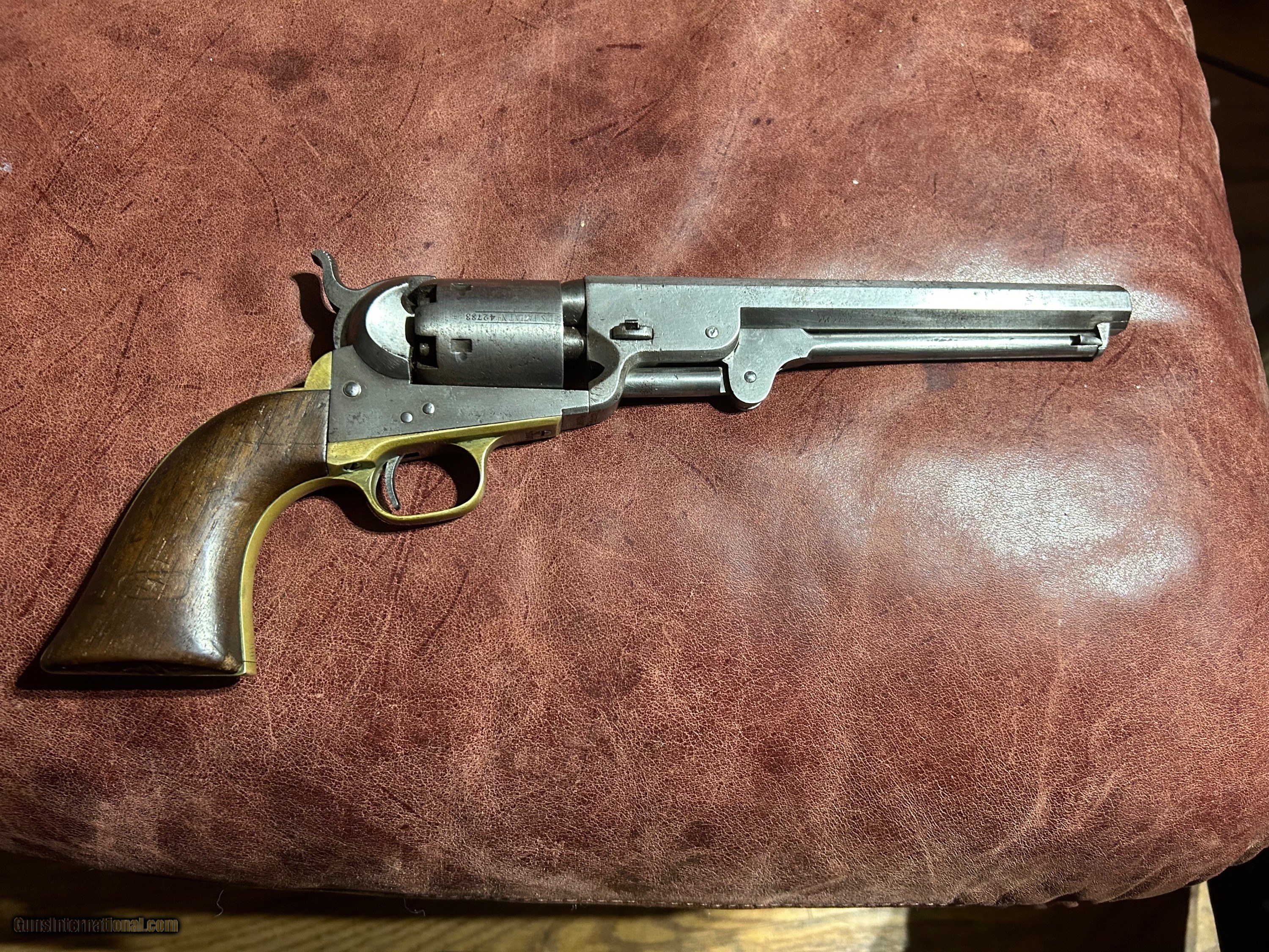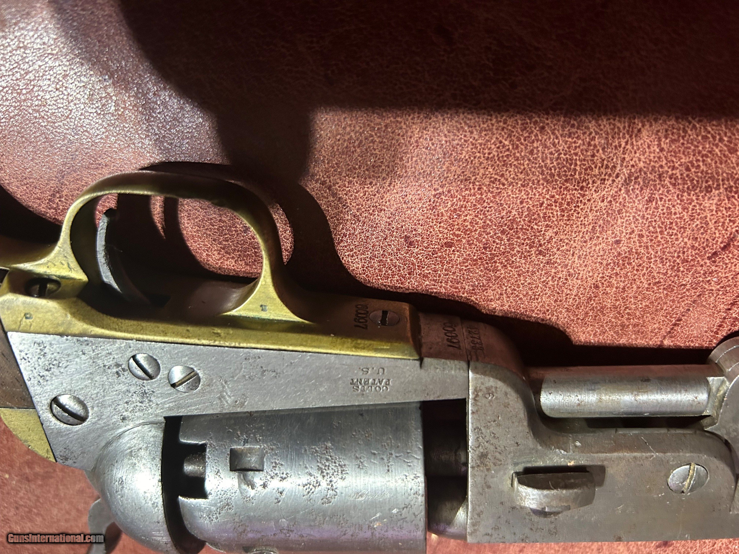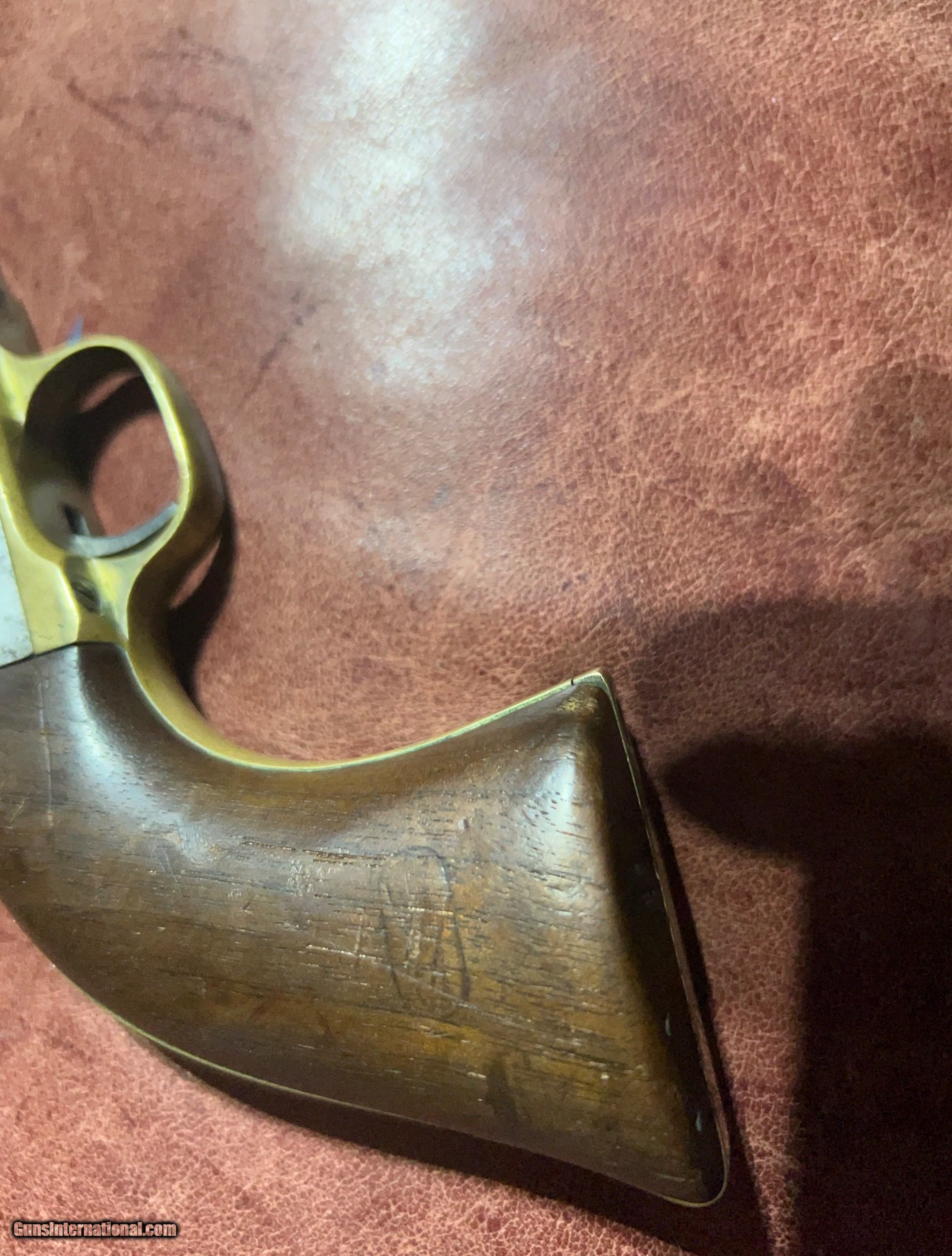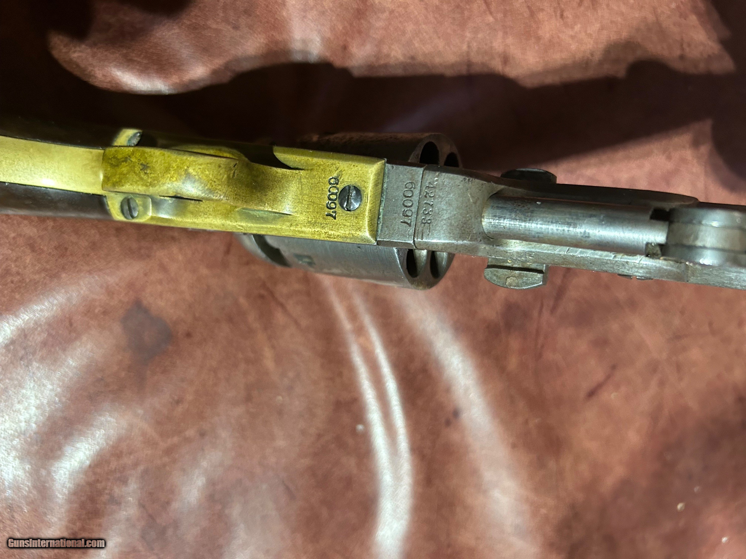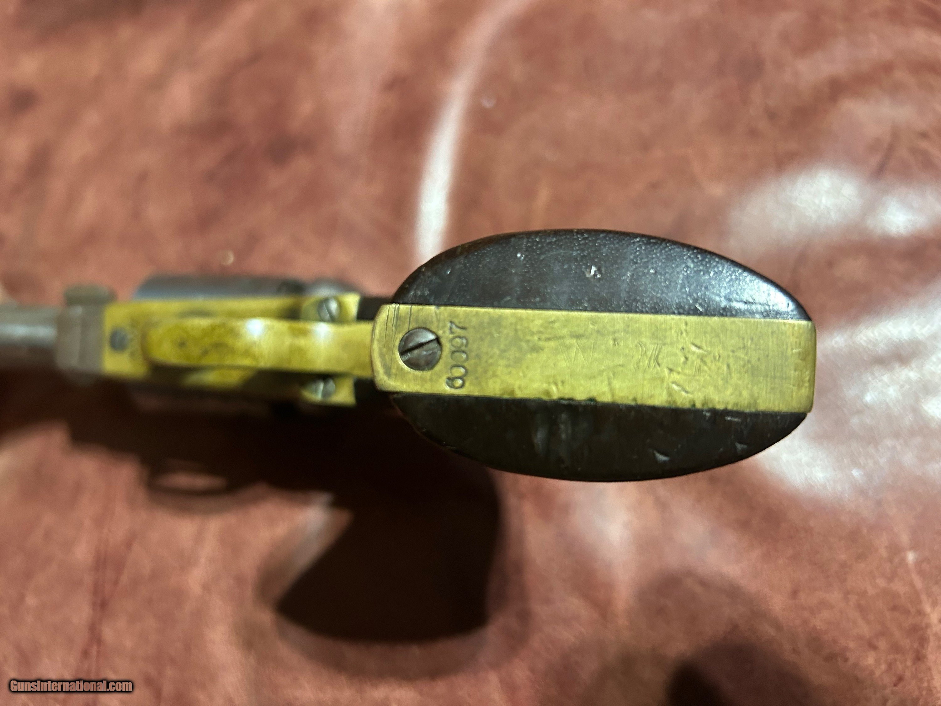 Description: S&W pre model 10. Mfg 1947. Factory 2" barrel. Revolver retains 97% orig factory blue. Checquered walnut grips are exc withh exxception of one small chip - riiight side bottom. Bore is exxcellent as are mechanics. Revolver would rate excellent using NRA grading standards. Serial # 948437S. As to factory 2" barrel, round front site address is on left side of barrel and is serial numbered to rest of gun. Case colors on hammer and trigger still show. SOLD Curio/Relic: Yes Handgun Caliber: .38 Special |