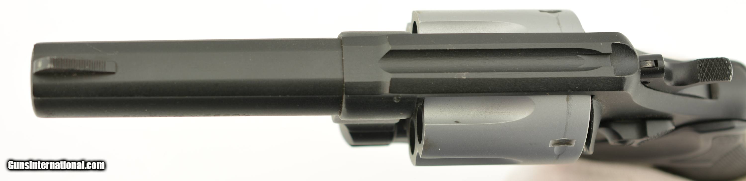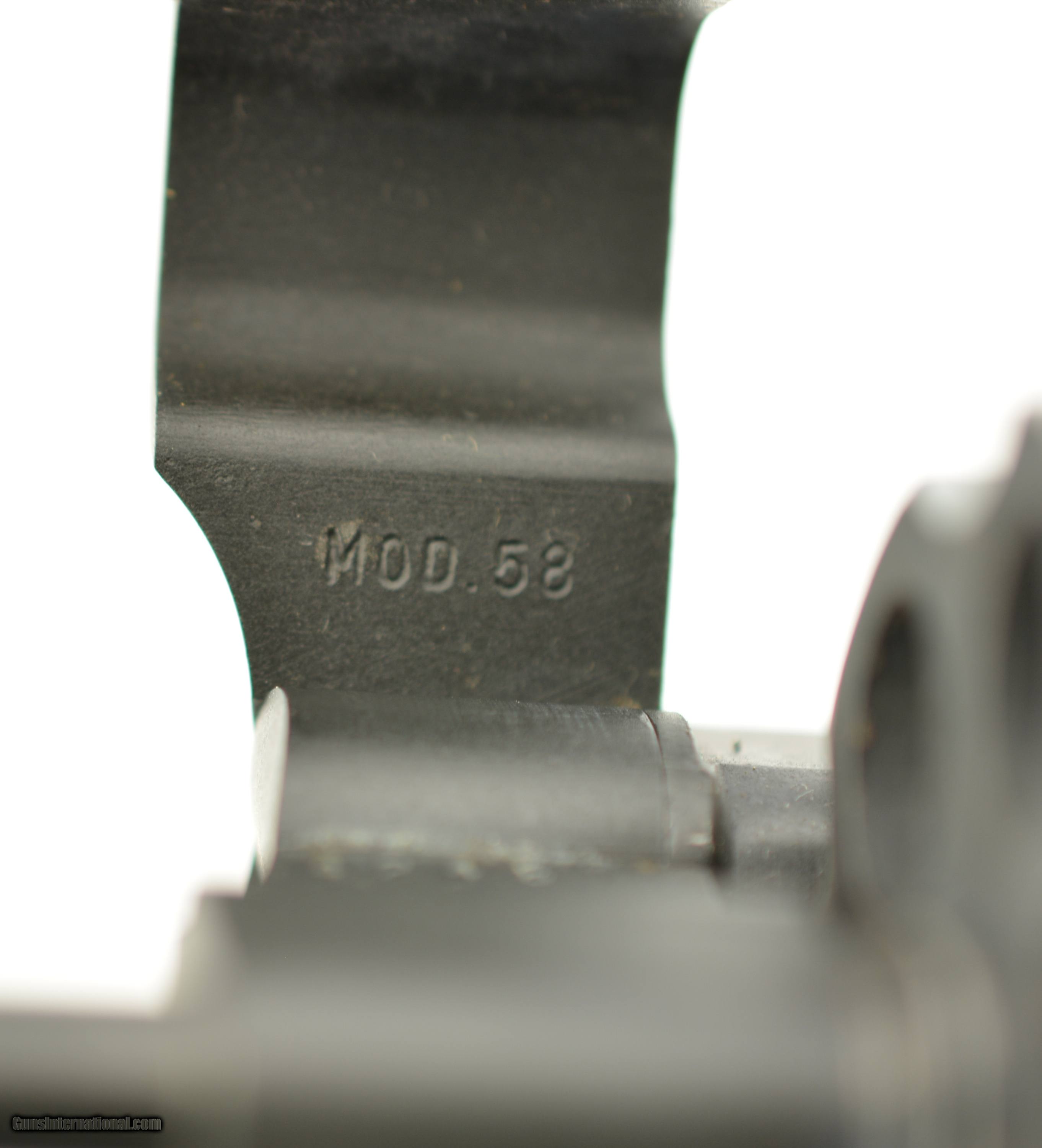 Description: Serial #S331159, .41 Magnum, 4 inch pinned heavy barrel with a bright, excellent bore. This is the Model 58 Military & Police revolver introduced in 1964 on a square butt, N service frame with 3 screws to provide a large bore, hard hitting magnum with manageable recoil. This example has had a custom refurbish and will turn heads at the range. In excellent condition the metal surfaces have been professionally refurbished and retain about 99% applied matte black finish and satin battleship gray finishes, likely “Black T" or a similar applied coating, showing a very small scratch on the triggerguard and slight drag line on the cylinder. The service trigger retains full hard chrome finish, and the service hammer retains full later applied black finish showing light operational wear. The rubber presentation Pachmayr grips rate excellent. This model is equipped with fixed sights, correctly times and locks up, and has a nice smooth action. Like the Model 10 the Model 58 is a simple rugged gun that is great for home defense with intermediate loads or for bear country with full power loads. FFL or C&R SOLD Curio/Relic: Yes Manufacturer: S&W Model: 58 Serial Number: S331159 Caliber Info: .41 Mag Gauge Info: .41 Mag |