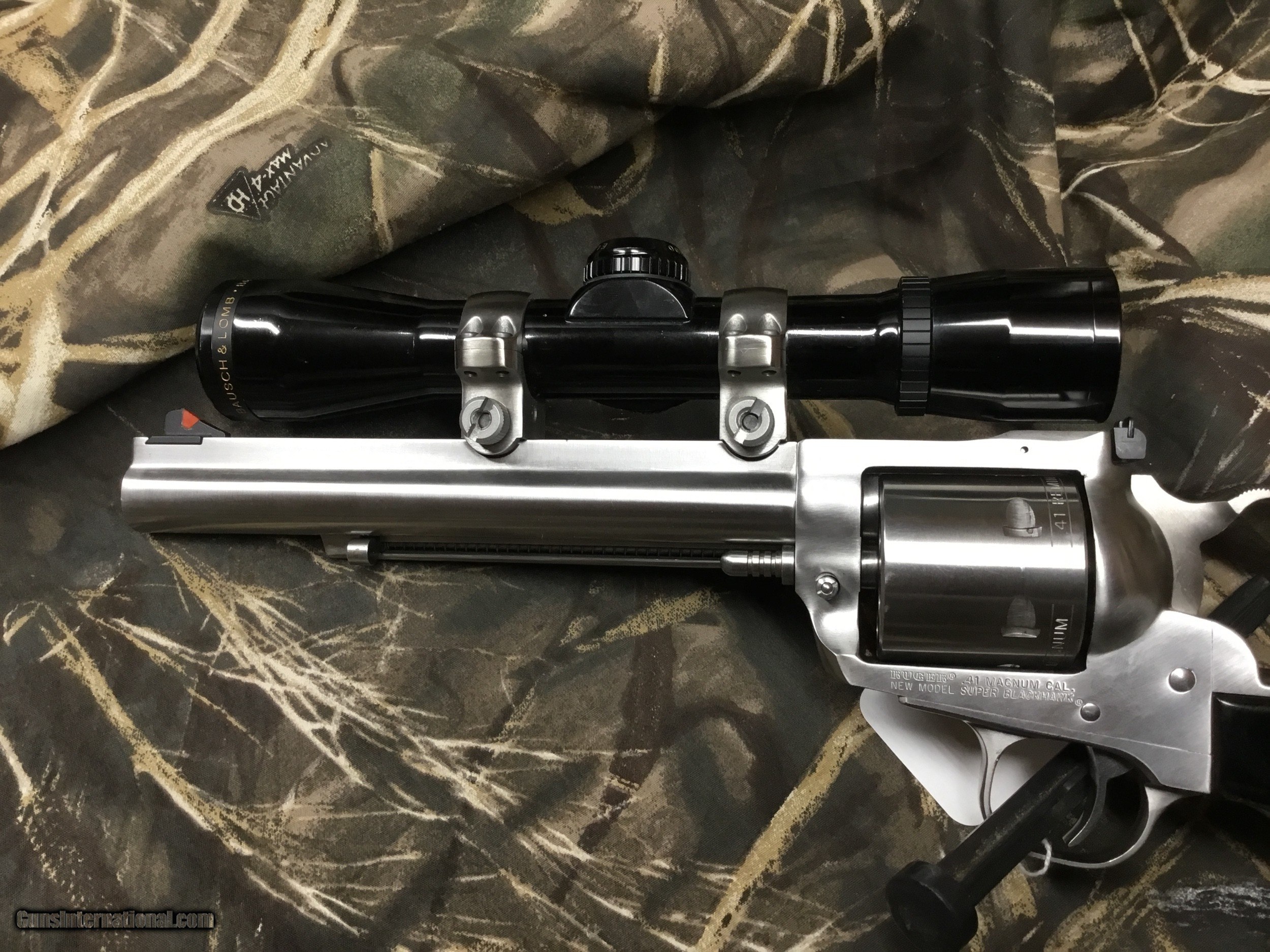Description: SOLD WAITING FUNDS FROM DON G.......................8--15--2022 SUPER CLEAN RUGER 41 MAG AND BAUSCH LOMB ELITE 3000 PISTOL SCOPE CAN BUY THIS REVOLVER WITH SCOPE OR WITHOUT SHE IS A BEAUT AS IT IS $1295.00 REVOLVER AND SCOPE..................OBO......OBO.......OBO $1195.00 REVOLVER ONLY $55.00 TO SHIP AND INSURE If you are WEST of the Mississippi shipping will be $10.00 extra Thank you for looking at our items. If it is listed on the site, we still have it in the shop. If you wish to buy, hit buy it now and call the shop to pay. We are open Monday thru Friday 10:00am-5:00pm EST ...........Ask for Bree....... (803) 874-1060. NO sales to California NO INTERNATIONAL SALES. SOLD |