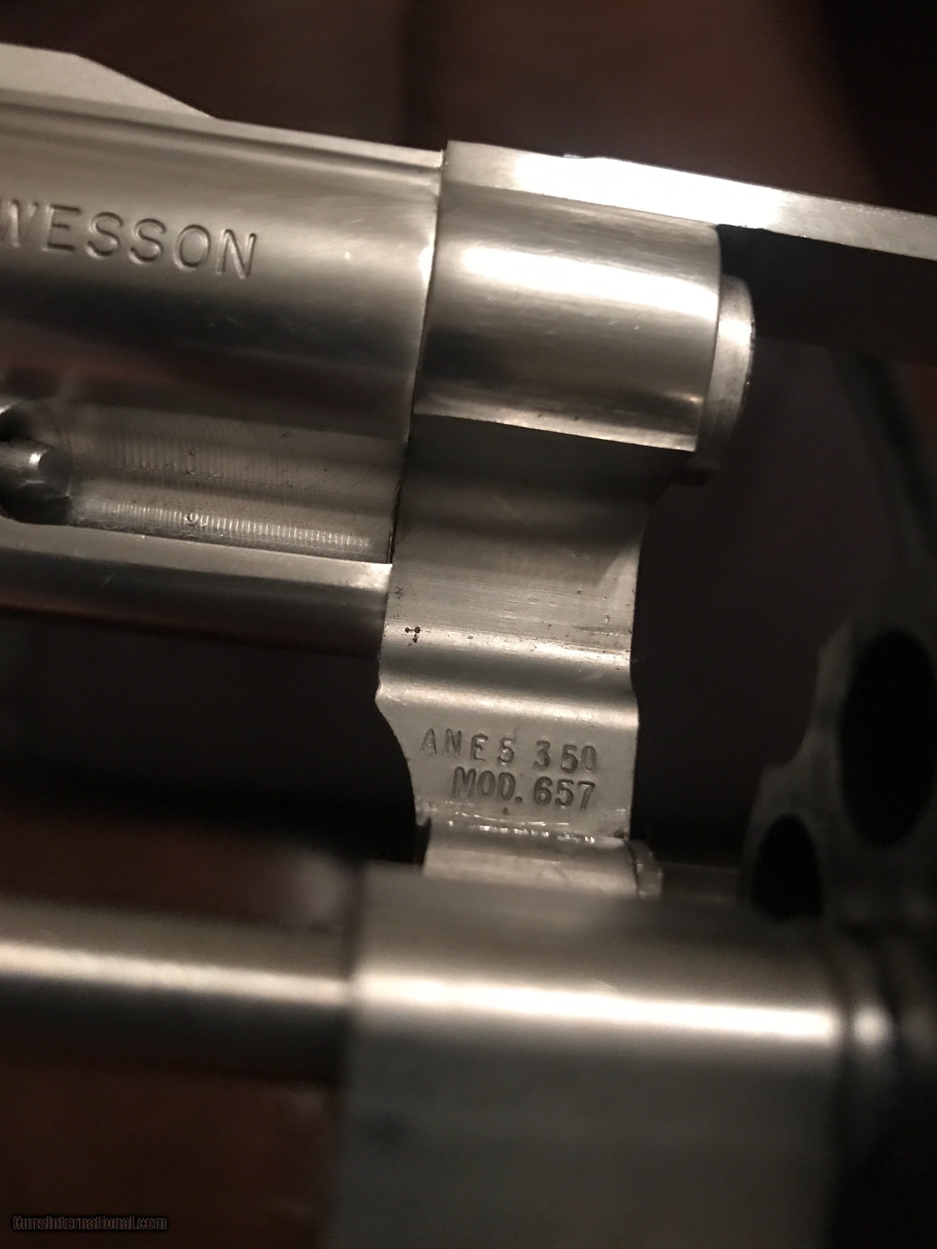 Description: This is one hard to find gun! The 657! 41 magnum, 3 inch barrel, stainless, combat finger groove grips, red ramp front sight, and white outline rear sight. Gun has been shot but in excellent condition. No box. Please email with questions. Shipping included SOLD Manufacturer: Smith and Wesson Model: 657 Caliber Info: .41 magnum Condition: Used Metal Condition: Excellent Wood Condition: Excellent Bore Condition: Excellent Action: Double Finish: Stainless Sights: Target Item Location: 37075 |
