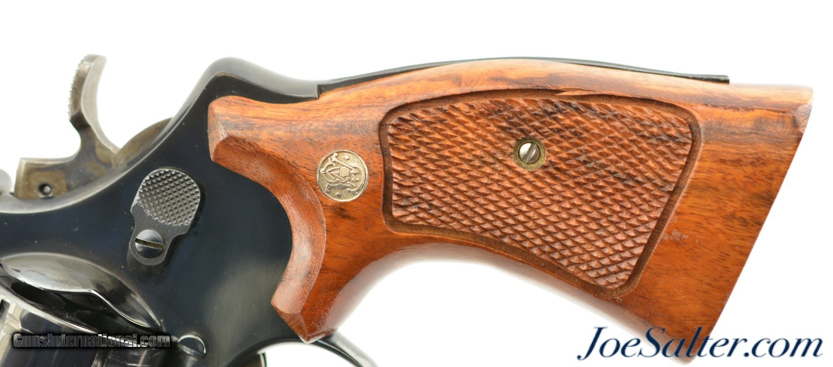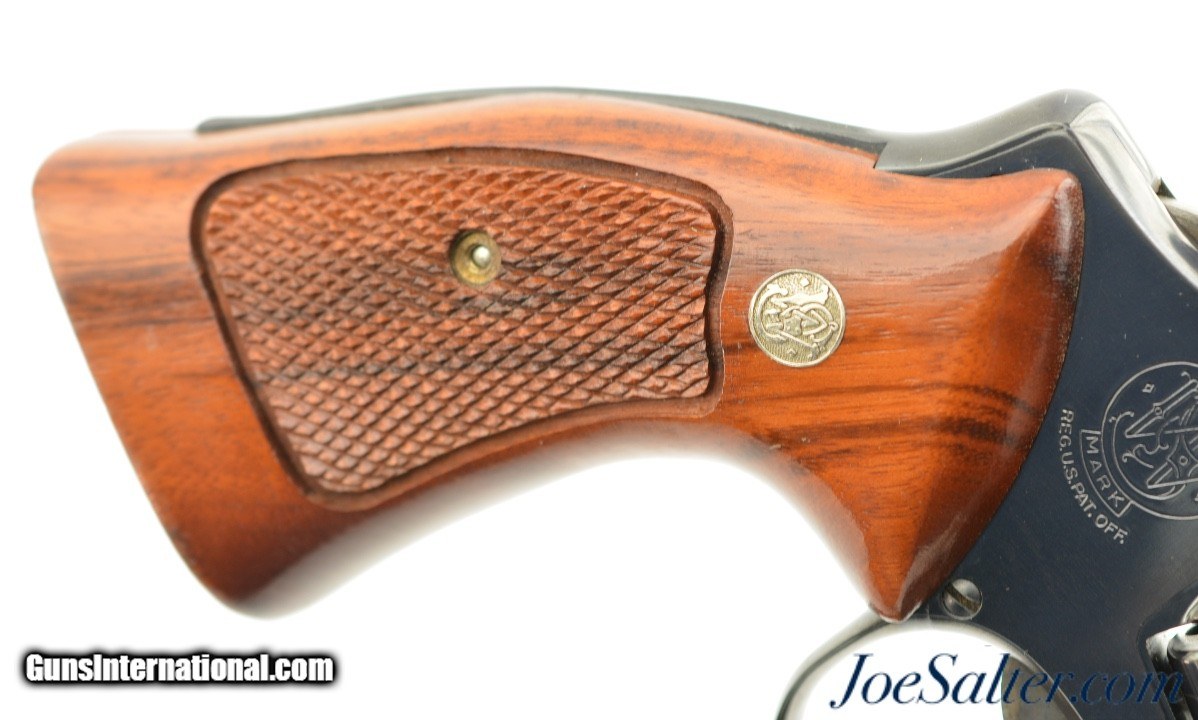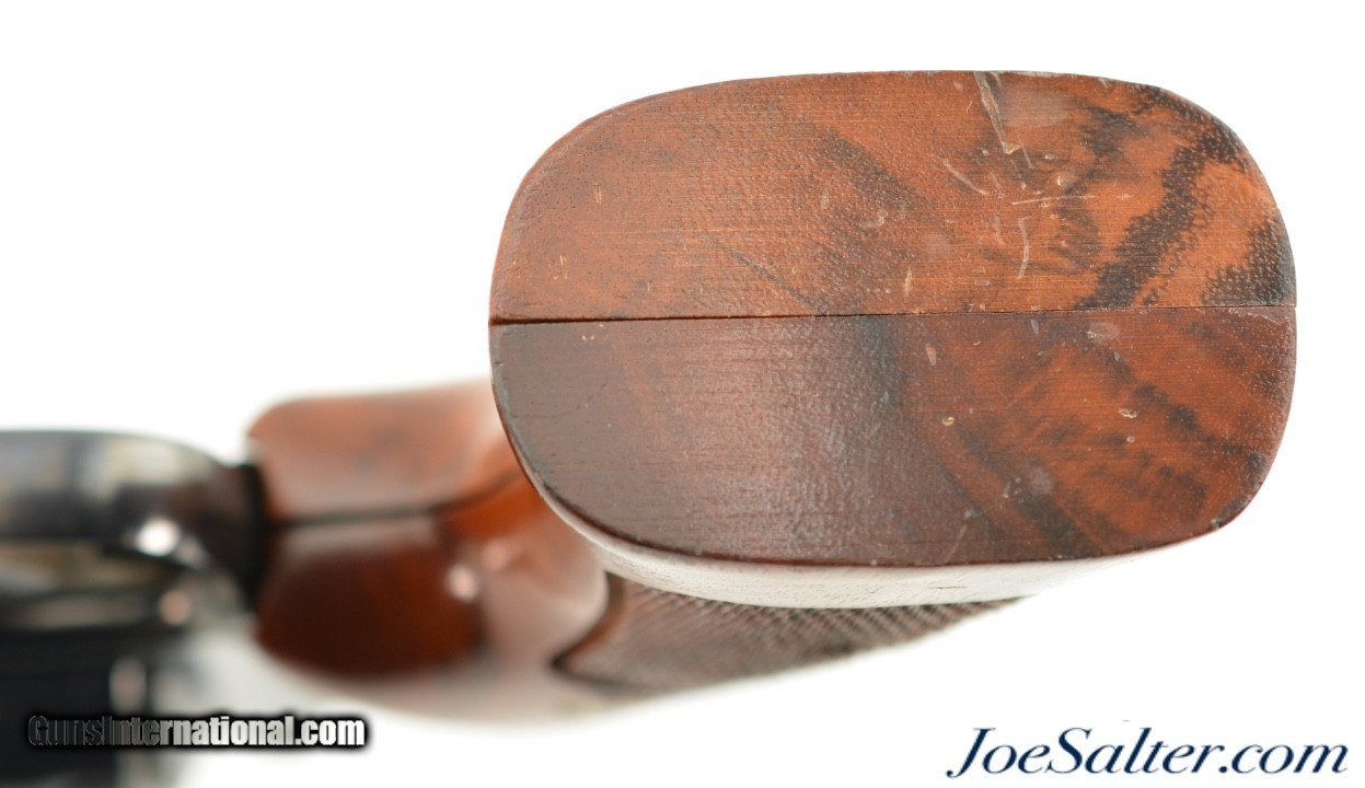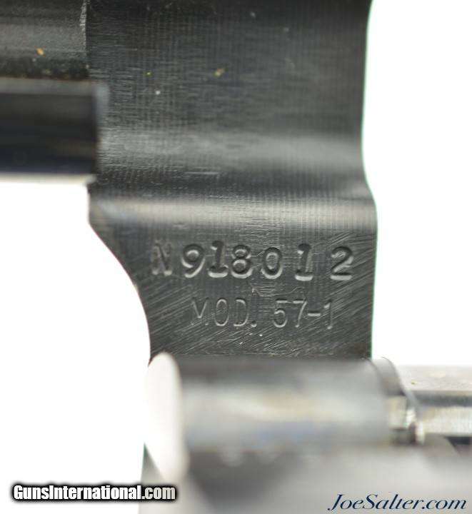 Description: Serial #N918012, .41 Magnum, 4 inch barrel with a bright, excellent bore. This is the Smith & Wesson Model 57-1 Magnum Target revolver manufactured circa 1982-88. In excellent condition the metal surfaces show about 97-98% of the original blue finish showing only a faint drag line on the cylinder. The .400" serrated trigger and .500 target hammer show vibrant case-colors. The oversize target Goncalo alves S&W medallion grips rate excellent and look to be replacements. The lock up is tight and it functions properly. FFL Price: $1,595.00 Contact Seller |
