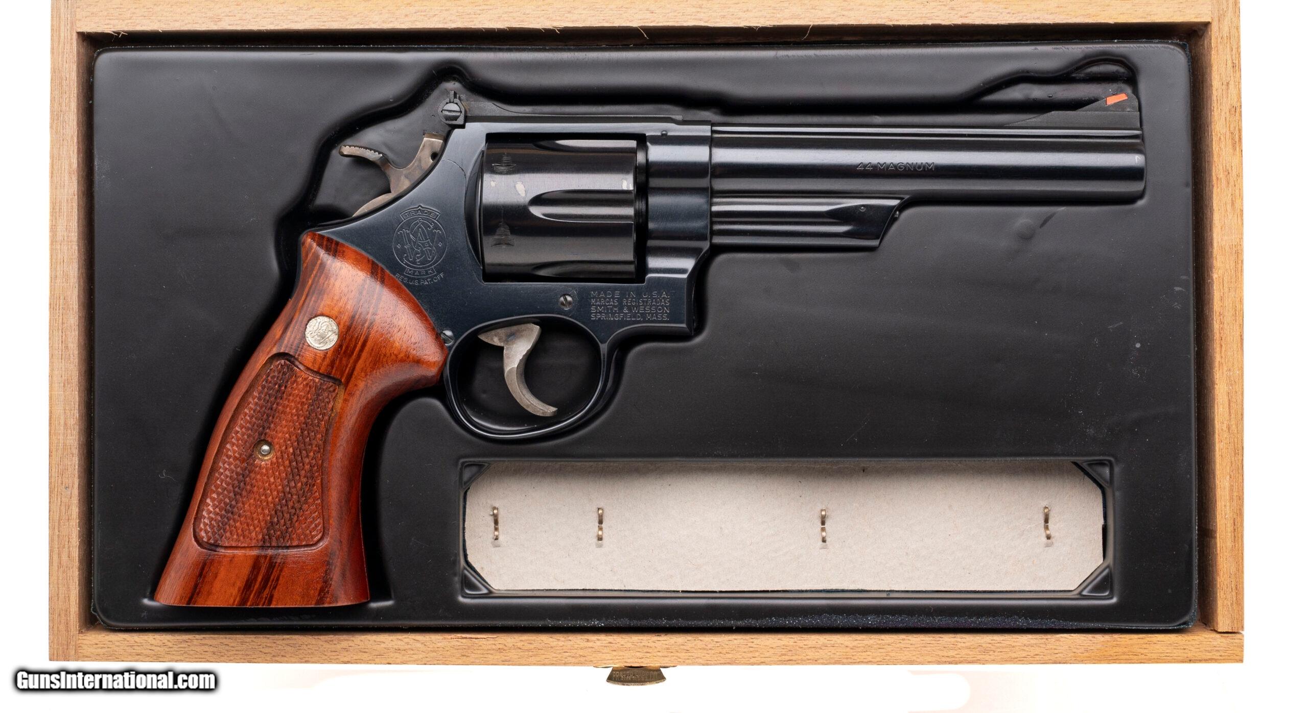 Description: "SN: N602188. Made in 1980, .44 Magnum with an 6"" barrel. Bore is bright with strong rifling. Scarce N-frame revolver, pinned & recessed with blued finish and checkered wood grips. Excellent condition. Comes with wooden presentation box w/plastic outliner. Price: $1,750.00 Contact Seller |