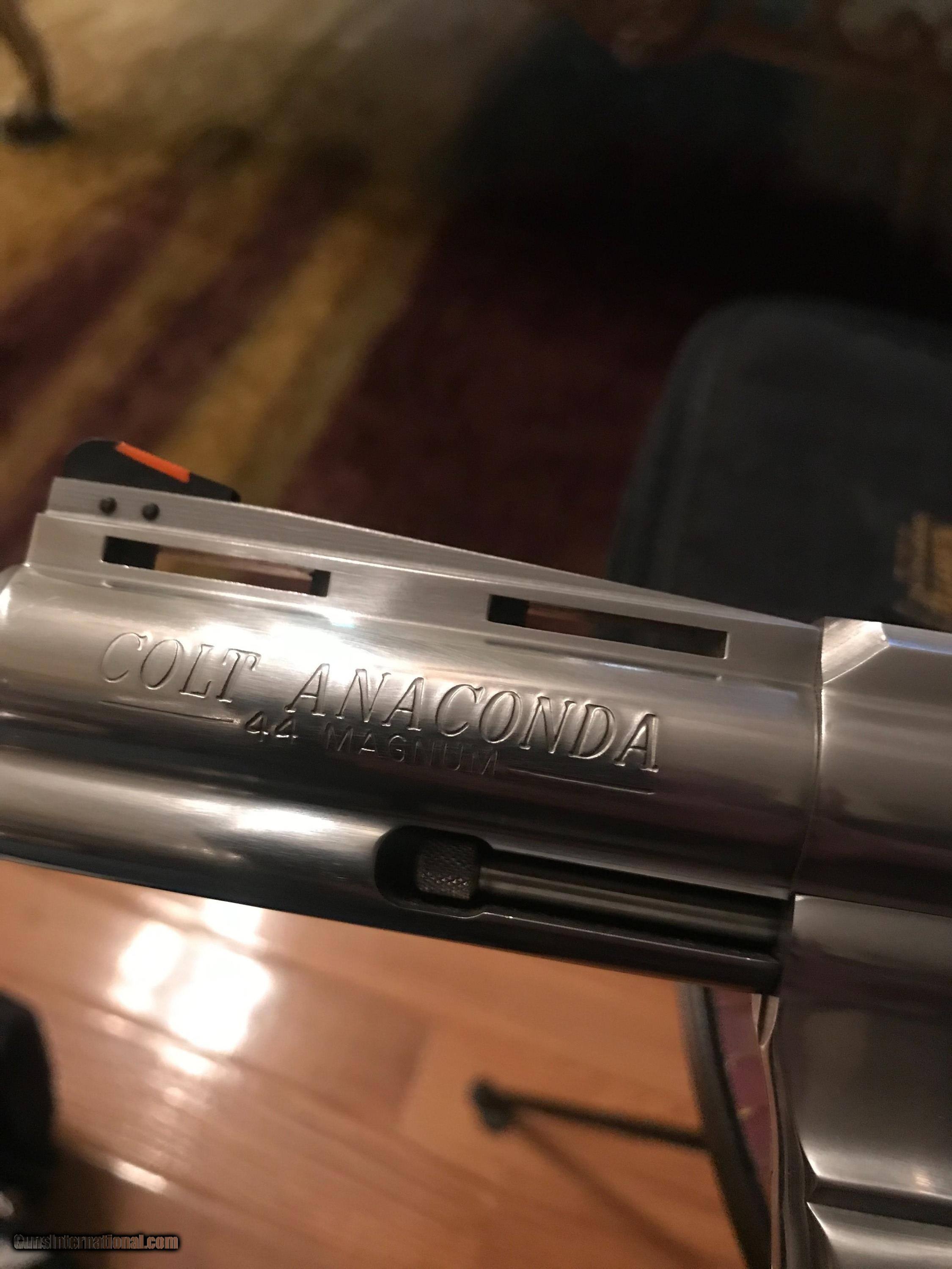 Description: This is the first 4 inch I've ever offered in the Anaconda. Beautiful gun. Stainless finish, rubber colt combat grips, white outline rear sight, and red ramp front sight. A treasure!! NO BOX. Please email with questions. Shipping included. Cards add 3% SOLD Manufacturer: Colt Model: Anaconda Barrel Length: 4 inch Bore: Excellent Condition: Used Metal Condition: Excellent Bore Condition: Excellent Action: Double Rib: Ventilated Finish: Stainless Sights: Target Item Location: 37075 |