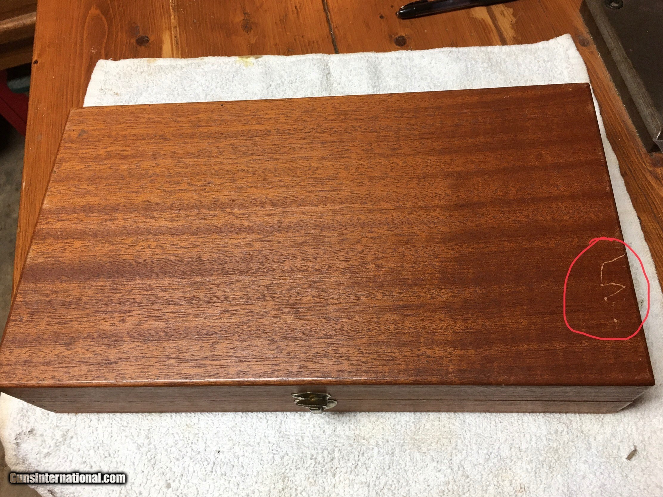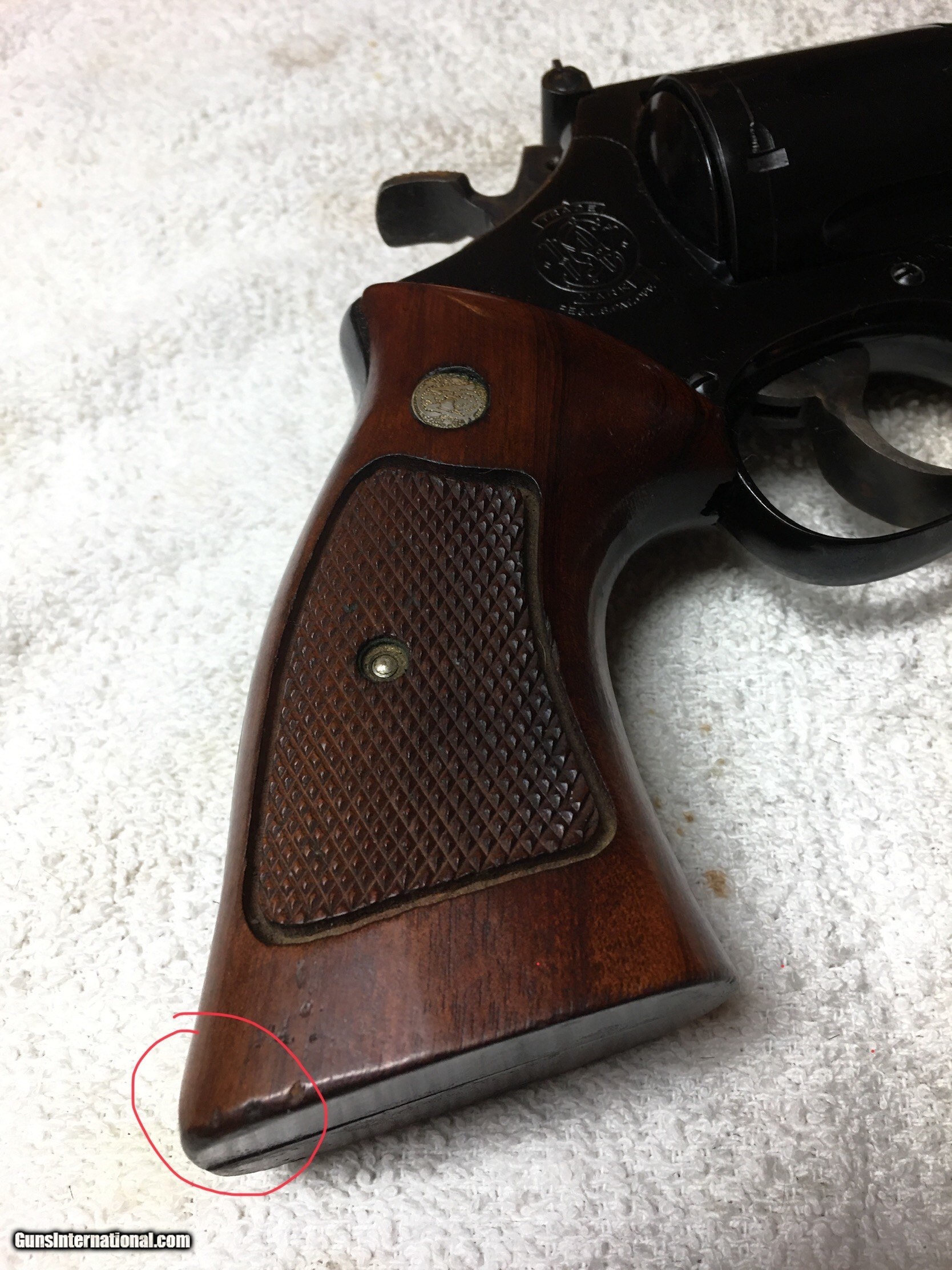 Description: We're listing some 44 magnums today. This was a brand new gun when Richard Nixon was trying to hang on to his Presidency. But if you were trying to buy this gun that year you had a long wait because suddenly everybody wanted to own the "44 Magnum, the most powerful handgun in the world". And if you found one you said "yeah, I feel lucky" as you squinted and plunked down $168 (maybe the full $196 if you wanted the Presentation case too). Smith and Wesson 29-2 s/n N130825 6-1/2" barrel (not 6") 3 Ts red ramp front, white outline rear Presentation case (redone interior) Pics tell the story. This is an affordable example from the peak period for these classics. What's right: This is an all original gun. It is tight and cleans up very nice. Proper vintage, desirable features and barrel length. Shoot it. Enjoy it. The real deal. Nothing to be ashamed of at all. What's wrong: light Holster wear at muzzle, scuffs on trigger guard, cartridge marks, back tip of grips has been "smoothed down" 1/8" to keep from stabbing you in the love handles, The presentation case has a nice little scratch on the top where one of Rick's kids put the mark of Zorro on it. And the interior flocking evaporated along the way and was replaced with highly desirable "Gun Collector Red Felt". **********Blue Star Hobbies is a group of friends in Central Illinois working together to ocassionally offer up items from our personal collections. From time to time we may list a rifle or shotgun but our focus is mostly S&W, Colt, & Ruger handguns built between 1946-1980. Our guns are better than our photography. We try to highlight flaws with red circles and everything else is usually glare or blanket fuzz. If you have a question about a photo please ask. We follow all Federal and State laws and GI policies. Please add $20 for standard shipping. Our FFL will ship to your FFL on Mondays, Tuesdays and Wednesdays to minimize in-transit risks. ********** SOLD Manufacturer: Smith and Wesson Model: 29-2 Serial Number: N130825 Caliber Info: 44magnum Bore: VG Manufacture Date: 1973 |