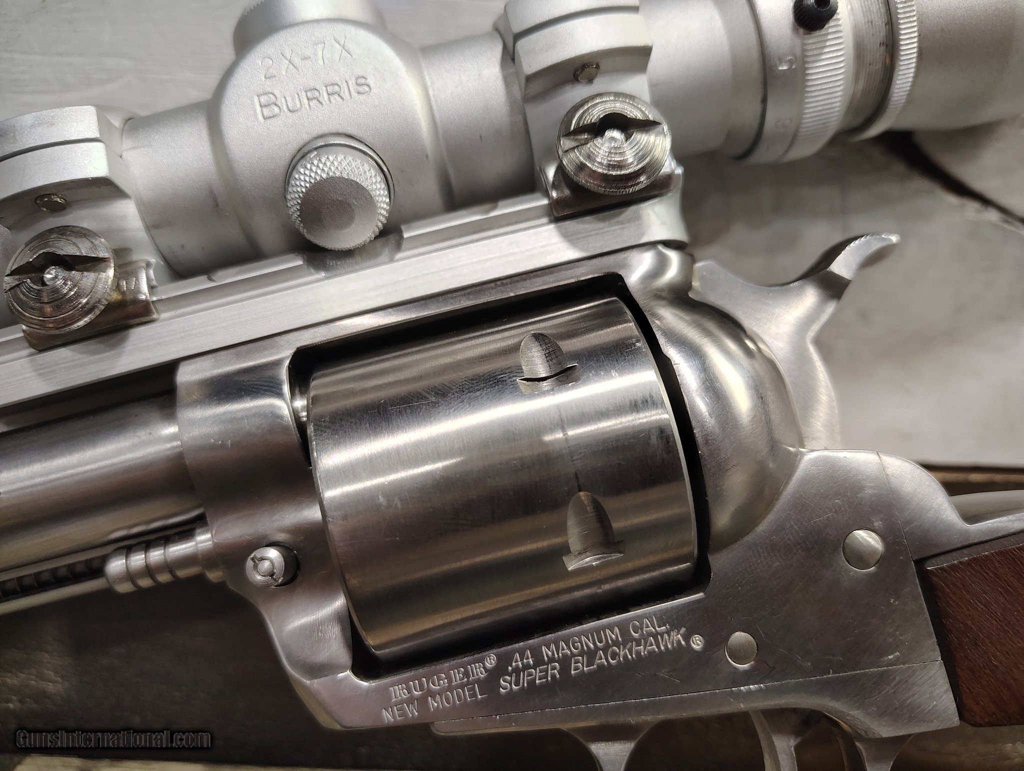 Description: Guns Listing ID: 582083 Comes with Burris \"2X-7X\ Manufacturer: RUGER Model: SUPER BLACKHAWK Caliber Info: .44 MAGNUM Condition: Used - Non-Certified Barrels: 10.5" BARREL Action: REVOLVER Finish: stainless Price: $872.99 Contact Seller |