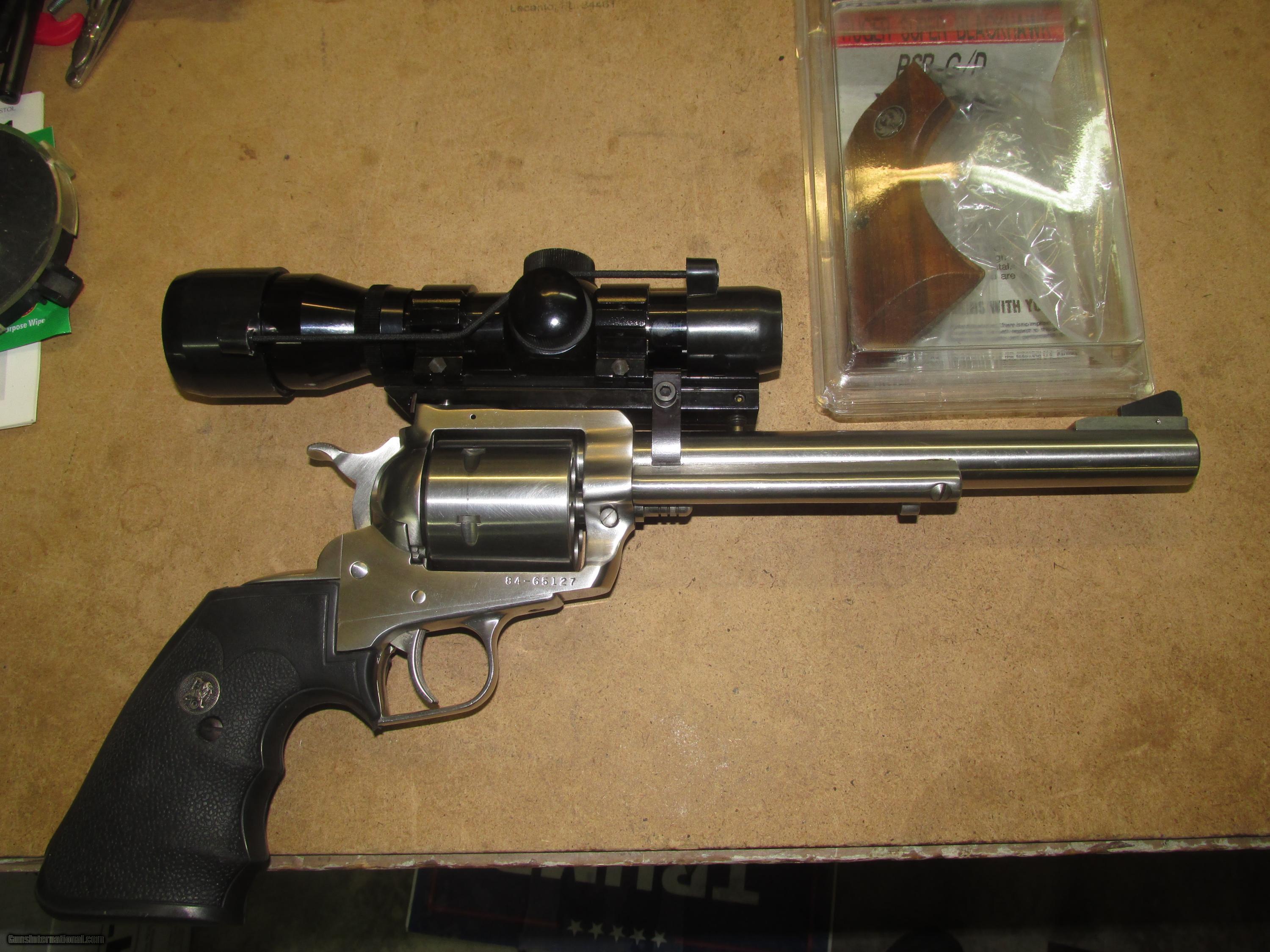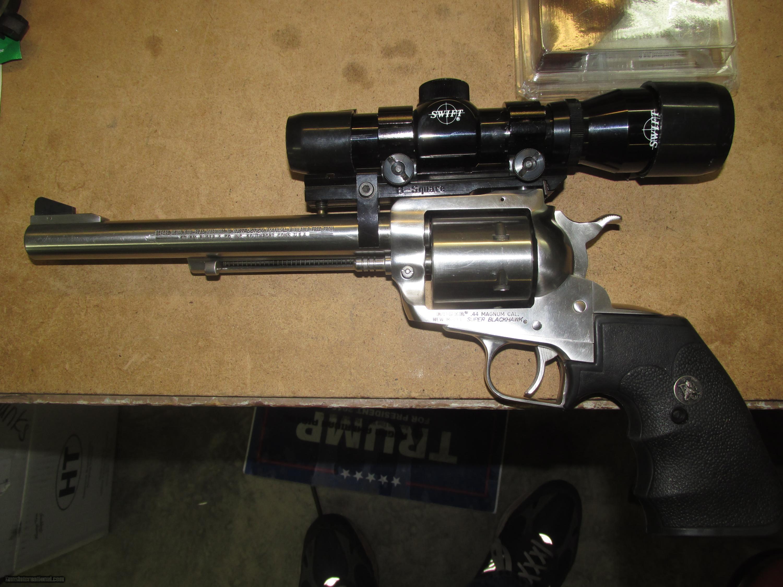 Description: this is a ruger super blackhawk in stainless steel.this has a swift pistol scope installed.this also comes with the wood grips and the rear sight assembly.this revolver is in excellent condition.shipping will be 18.00.thankyou SOLD |