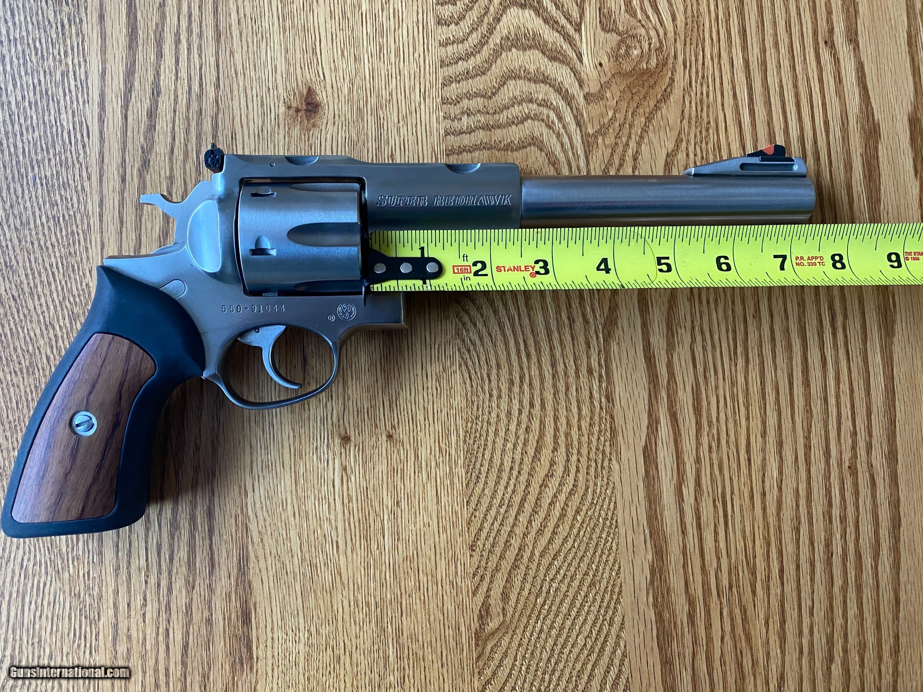 Description: RUGER, Super Redhawk, .44 Magnum, Stainless Steel, Satin Finish, Adjustable Rear & Ramp Front Sight, 6 Rounds, 7-1/2" barrel, comes with scope rings and leather holster. Manufactured in 1994, Excellent condition! Handgun Caliber: .44 Remington Magnum Manufacturer: Ruger Model: Super Redhawk Serial Number: 550-91044 Barrel Length: 7-1/2 Condition: Excellent Metal Condition: Excellent Wood Condition: Excellent Bore Condition: Excellent Sights: Adjustable Manufacture Date: 1994 Price: $950.00 Buy Now Contact Seller |