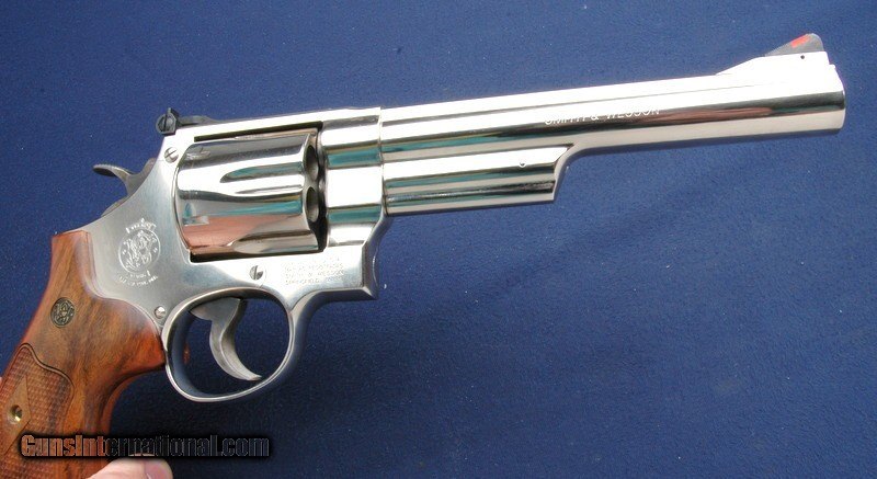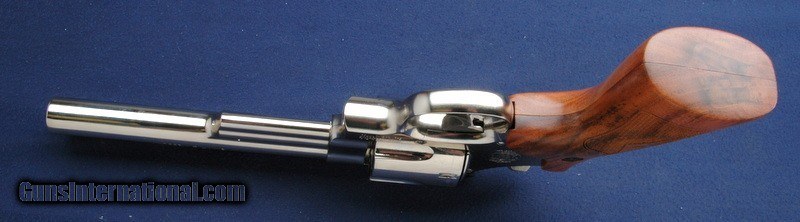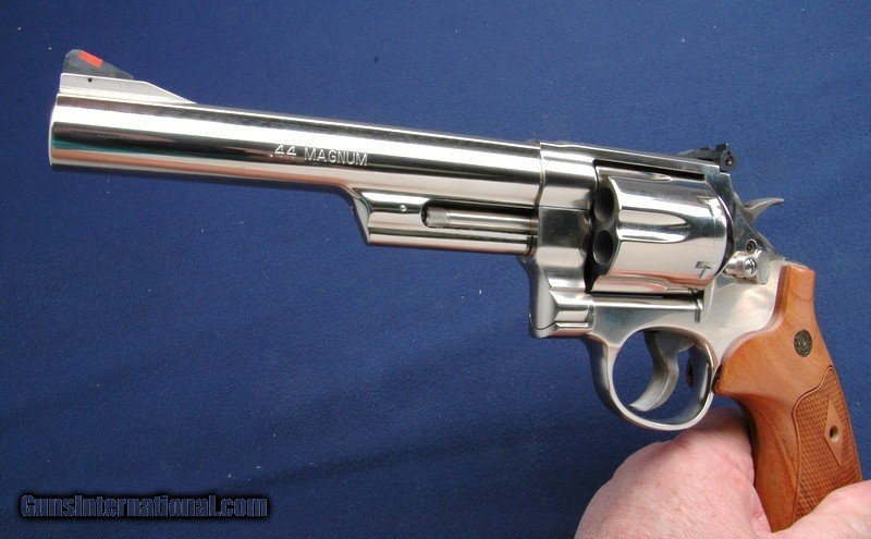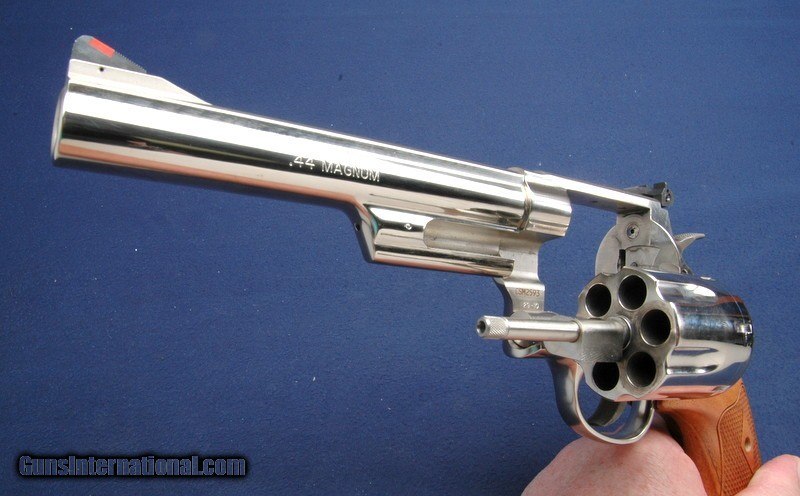 Description: Lovely S&W 29-10 .44 Magnum revolver in nickel with a 6.5" barrel. Mint bore, handling marks only. If you look at the picture with the face of the cylinder, you can see only 2 cylinders fired. These were the test rounds fired at the factory. The factory box and papers are not with the gun, just the Presentation case. The gun also comes with an original "Dirty Harry" shoulder holster, made by Lawman Leather Goods. Very limited production on these Dirty Harry holsters. It doesn't look like it has ever been worn. If the gun is purchased in the store- we will include a 50round box of American Eagle 240 gr JHP that came in with the gun. If we're shipping the gun, the ammo will not come with it. This is a great package and should be a fun shooter at a killer price!!! $60 shipping to the lower 48, 3% surcharge for using a CC. If you choose to pay with a personal check, we will hold the item for up to 10 days to make sure that it clears. Please expedite such pymts as we will hold an item on your word for 5 days. SOLD |