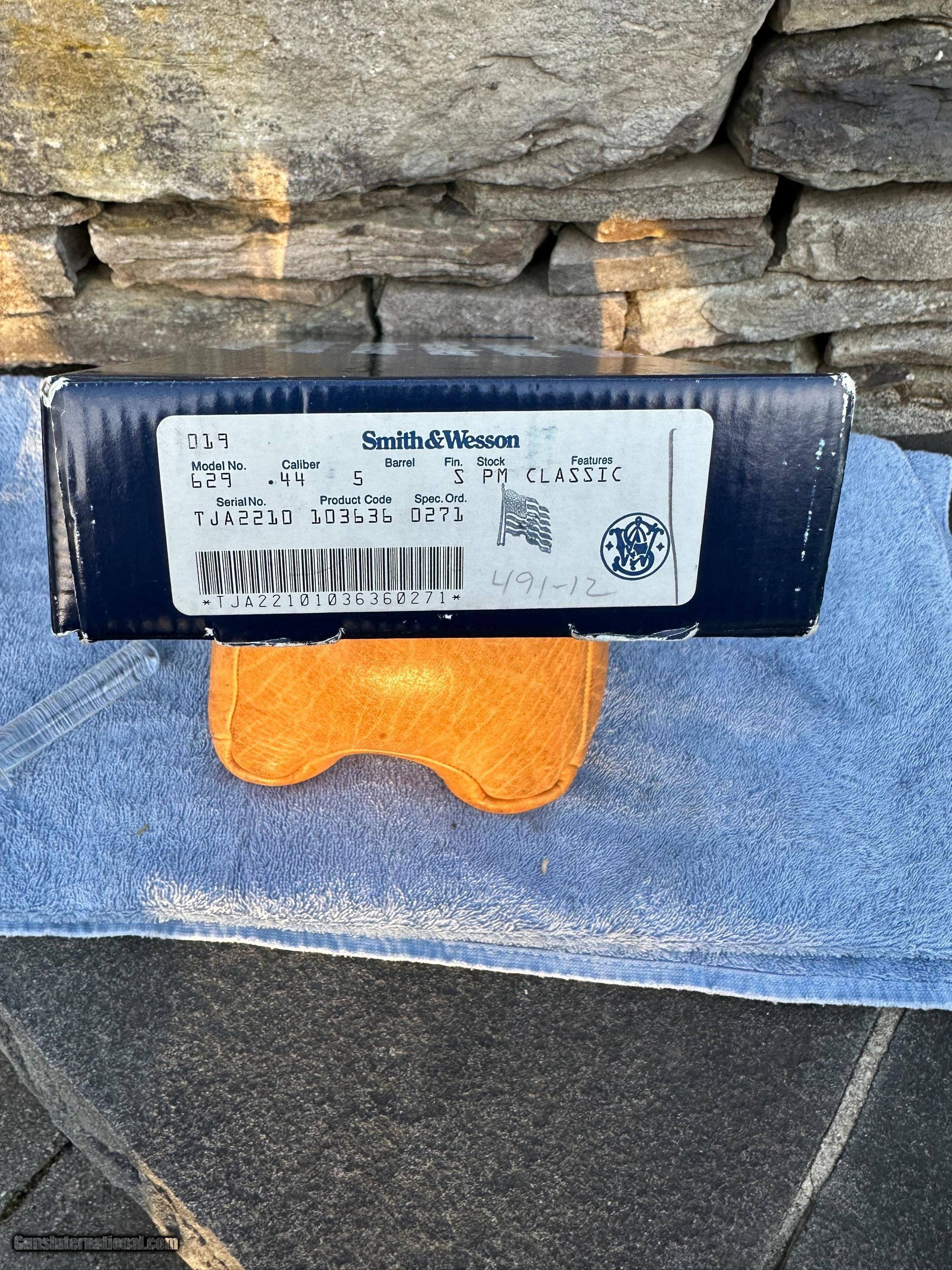 Description: Up for sale is the above in overall excellent condition age considered with correct numbered box only. I have it about ten years sitting in the safe not fired by me but it has been shot. $1200.00 shipped and insured CONUS. Steve 631 793 4458 SOLD Handgun Caliber: .44 Remington Magnum Manufacturer: S&W Model: 629-3 Classic Barrel Length: 5 Condition: Excellent Metal Condition: Excellent Bore Condition: Excellent |