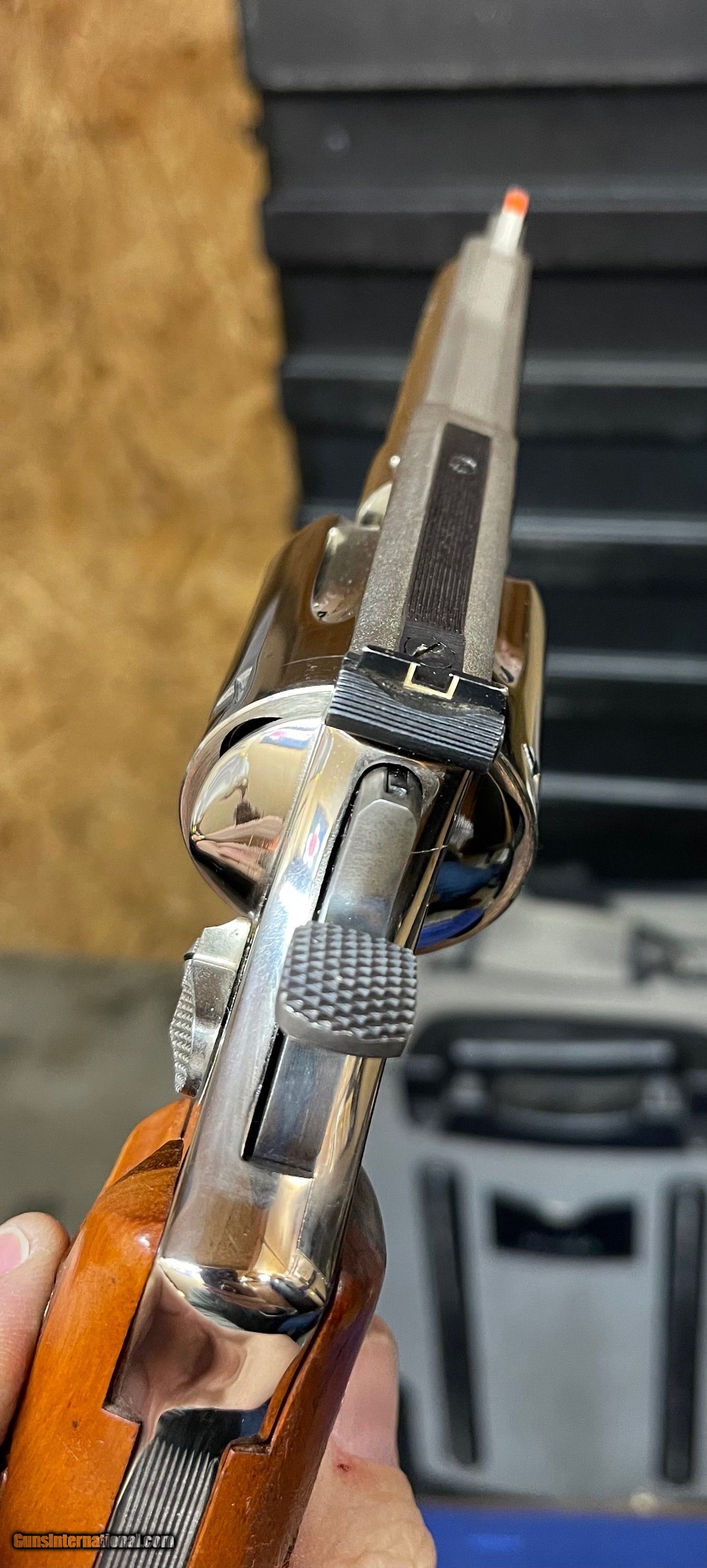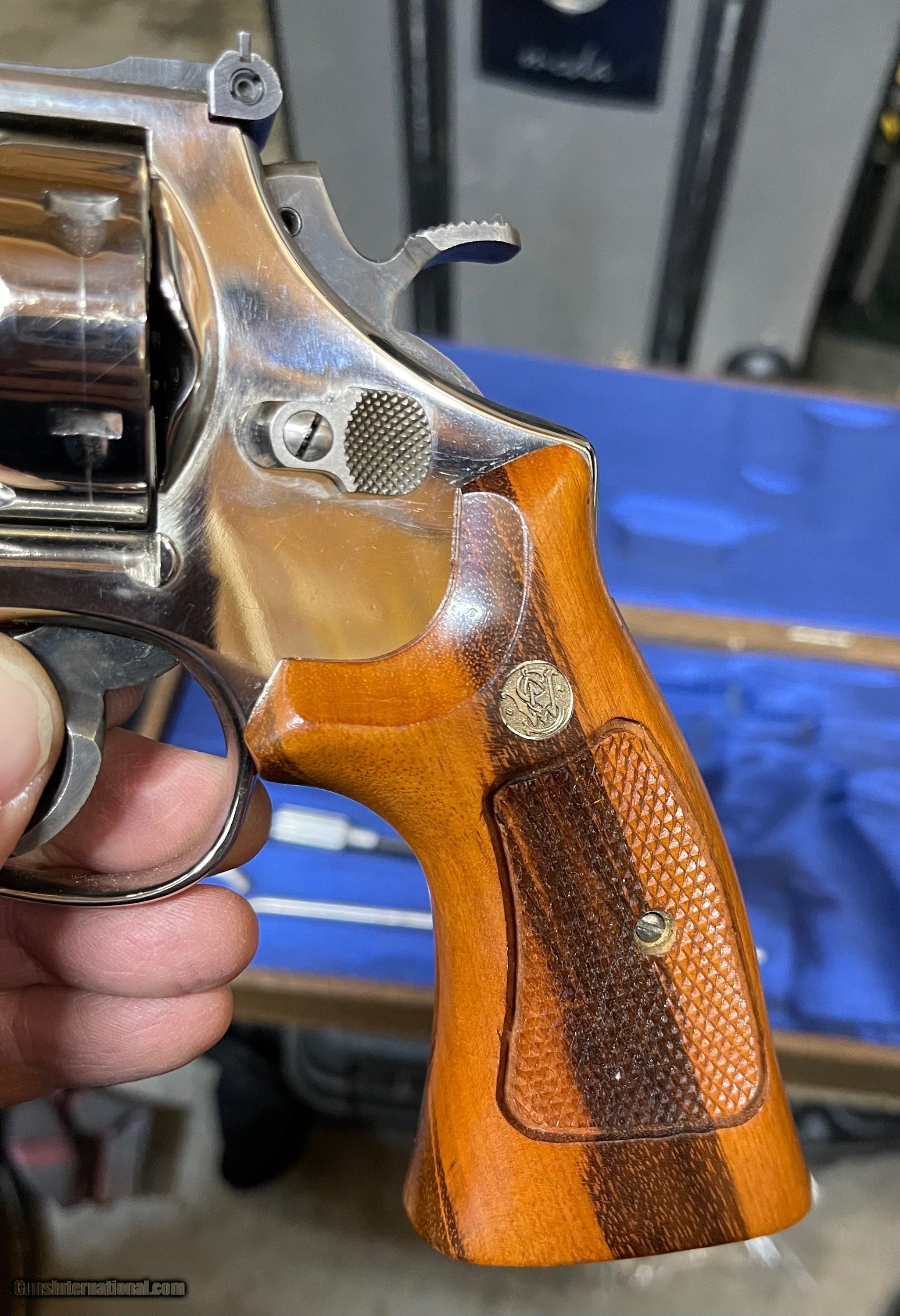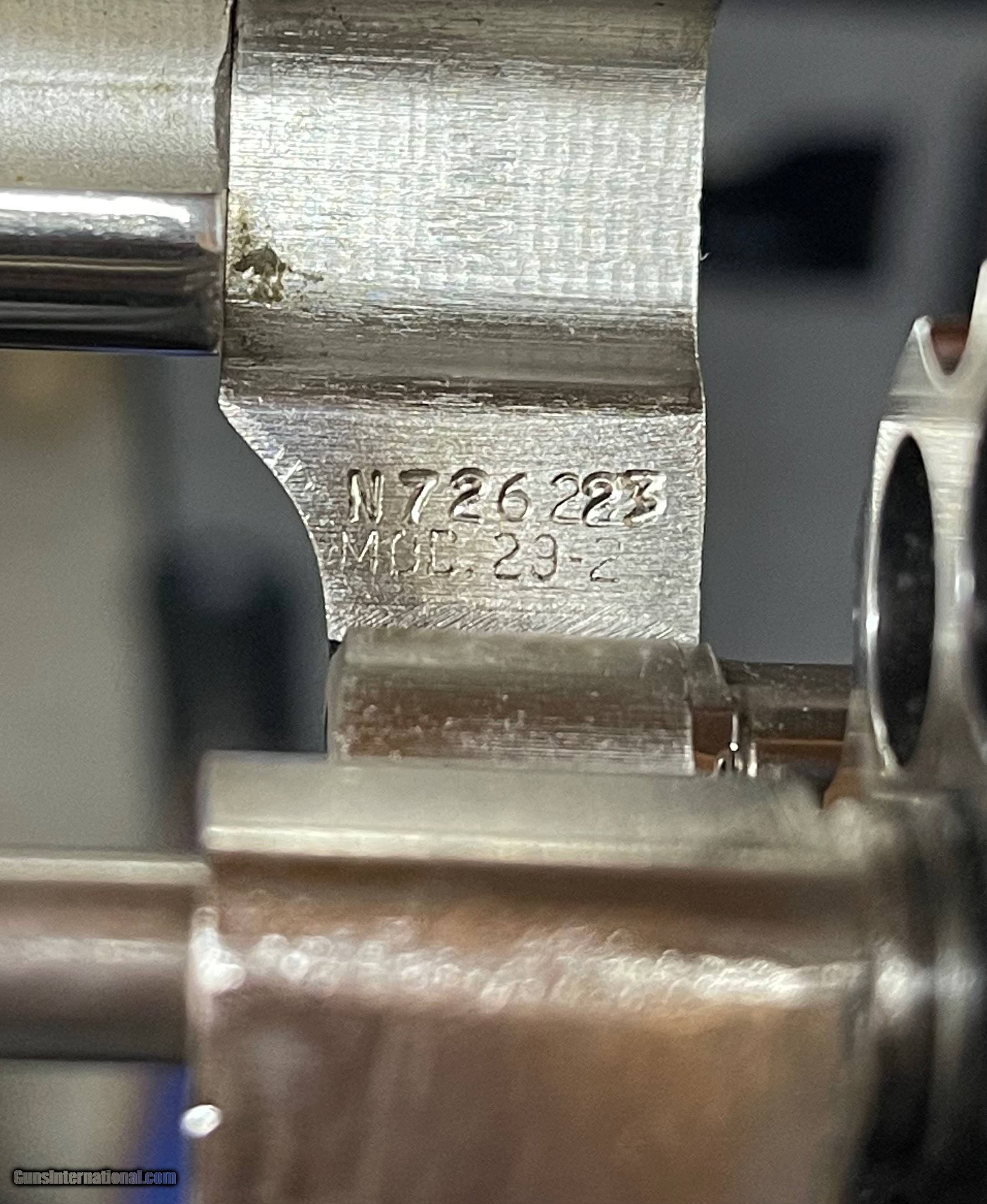 Description: This is one beautiful 29! Gorgeous nickel finish, 4 inch pinned barrel, recessed cylinder, target grips, sights, hammer, and trigger. Has a non original box with tools, but the box has been covered with some sort of wrap. Rare piece for sure! Please email with questions. Shipping and insurance included (west coast add $75). Venmo and cash app accepted. SOLD Manufacturer: Smith and Wesson Model: 29-2 Barrel Length: 4 inch Condition: Used Metal Condition: Excellent Wood Condition: Excellent Bore Condition: Excellent Action: Da, sa Finish: Nickel Sights: Adjustable Case: Yes Item Location: 37075 |