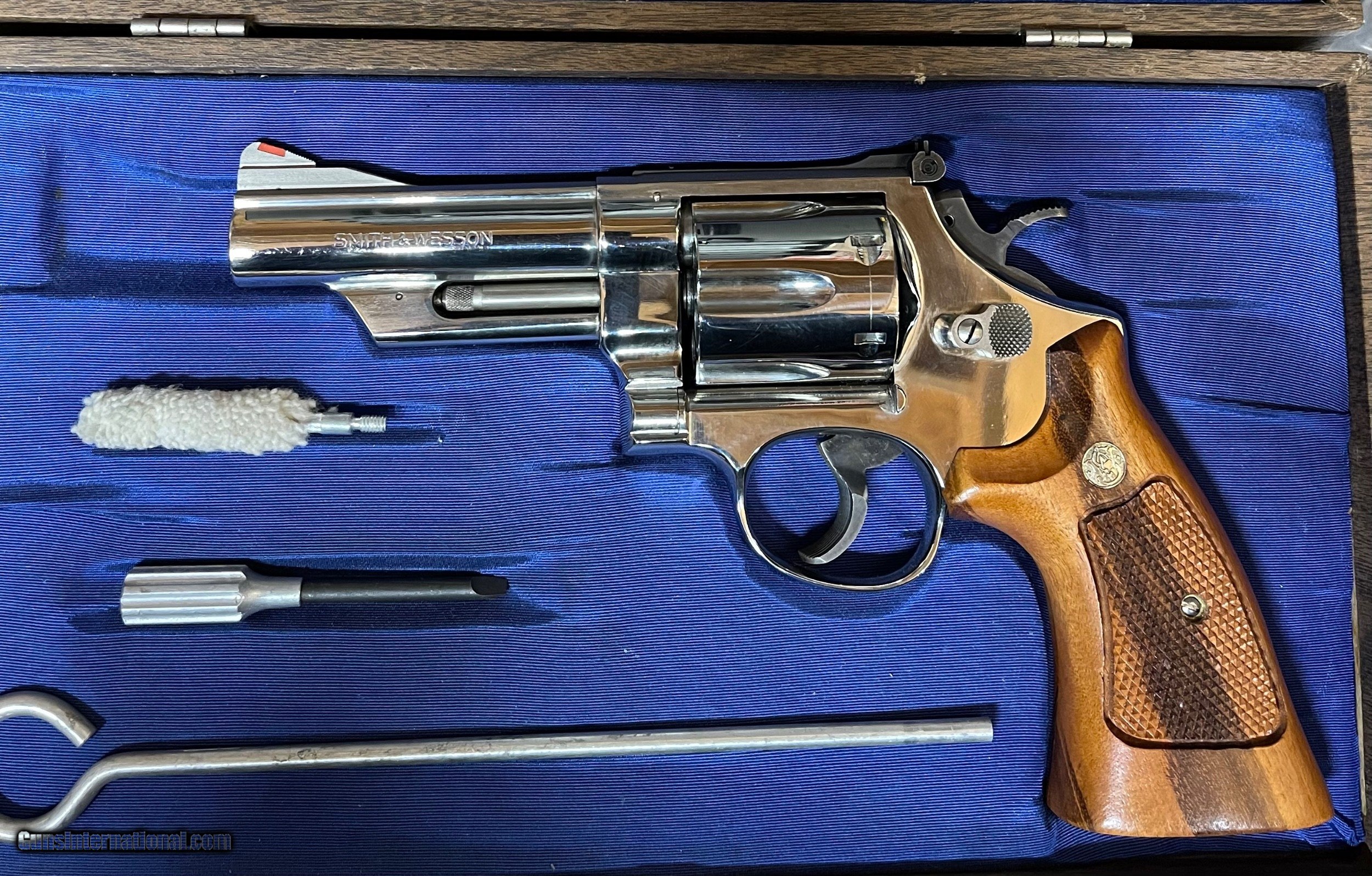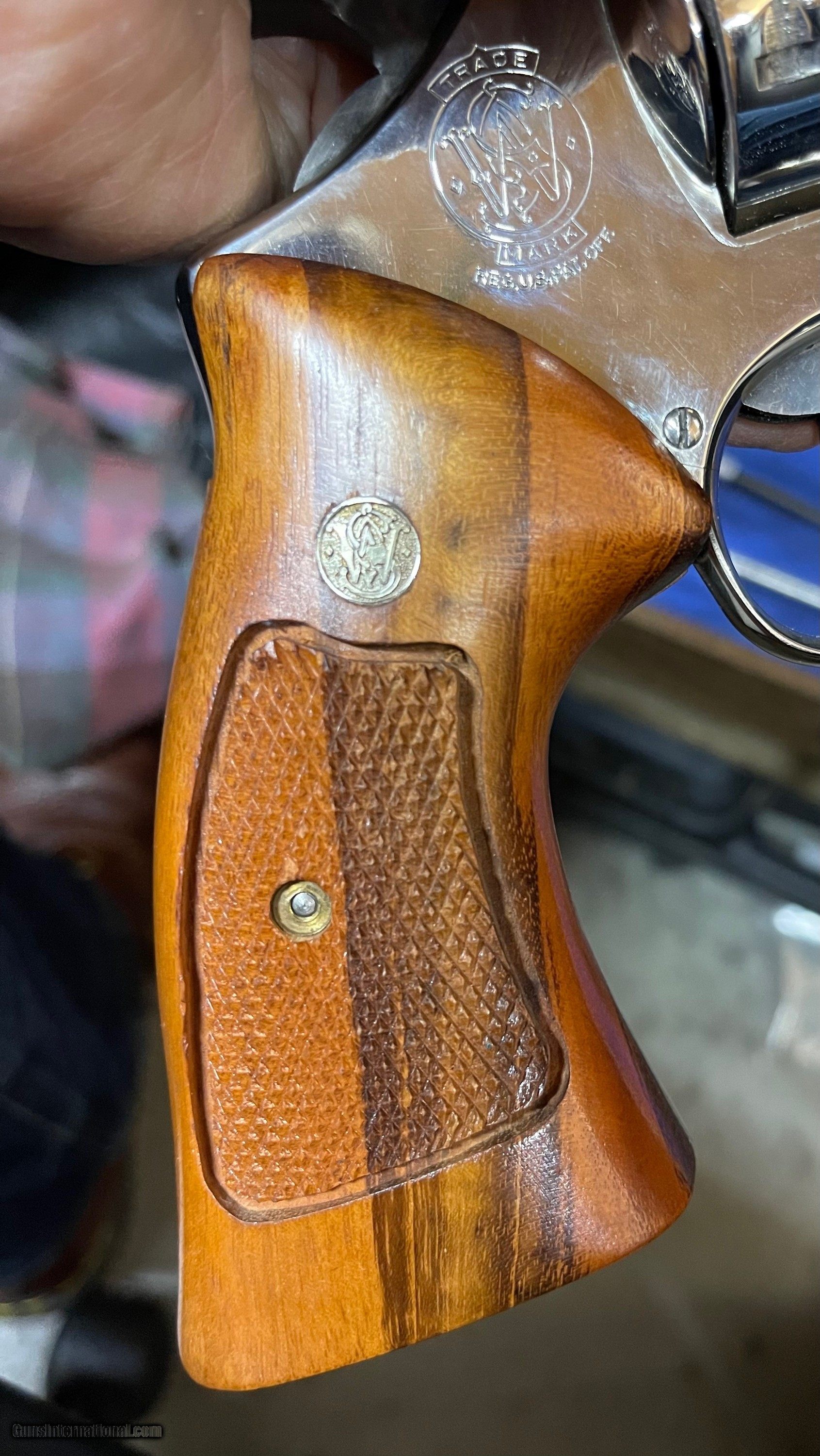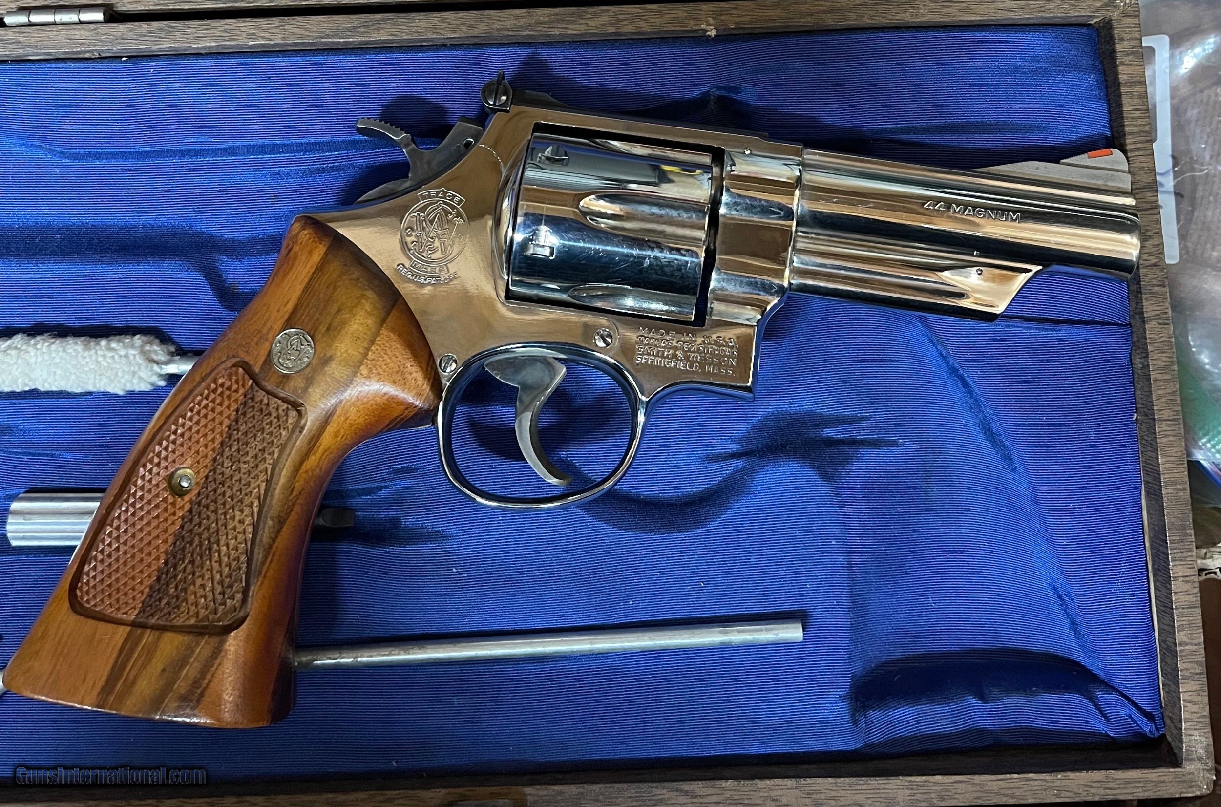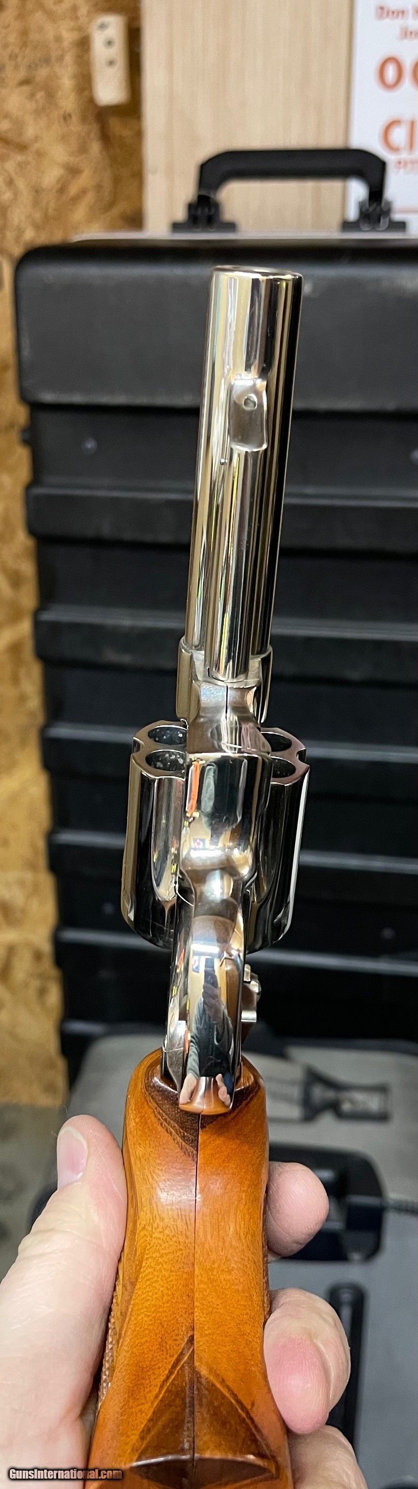 Description: This is one beautiful 29! Gorgeous nickel finish, 4 inch pinned barrel, recessed cylinder, target grips, sights, hammer, and trigger. Has a non original box with tools, but the box has been covered with some sort of wrap. Rare piece for sure! Please email with questions. Shipping and insurance included (west coast add $75). Venmo and cash app accepted. SOLD Manufacturer: Smith and Wesson Model: 29-2 Barrel Length: 4 inch Condition: Used Metal Condition: Excellent Wood Condition: Excellent Bore Condition: Excellent Action: Da, sa Finish: Nickel Sights: Adjustable Case: Yes Item Location: 37075 |