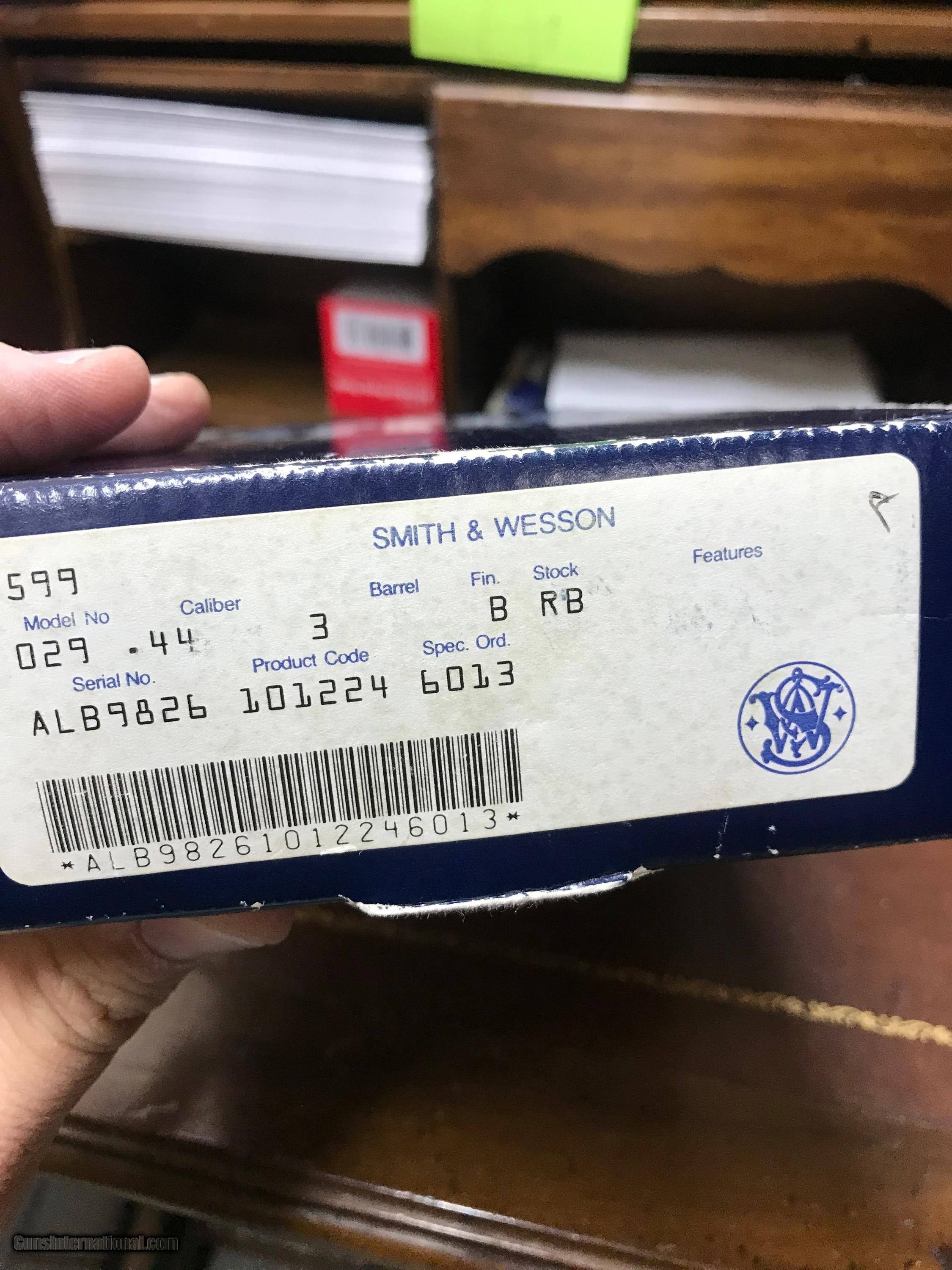 Description: How exciting to bring to you this fine 29-3! 3 inch barrel, blue finish, target sights, combat grips, original numbered box, paper, and tools!! You won't find a nicer 3 inch 29! Please email with questions. Buyer pays shipping and insurance. Cards add 3%. SOLD Manufacturer: Smith and Wesson Model: 29-3 Barrel Length: 3 inch Condition: Used Metal Condition: Excellent Wood Condition: Excellent Bore Condition: Excellent Action: Double Finish: Blue Sights: Target Item Location: 37075 |