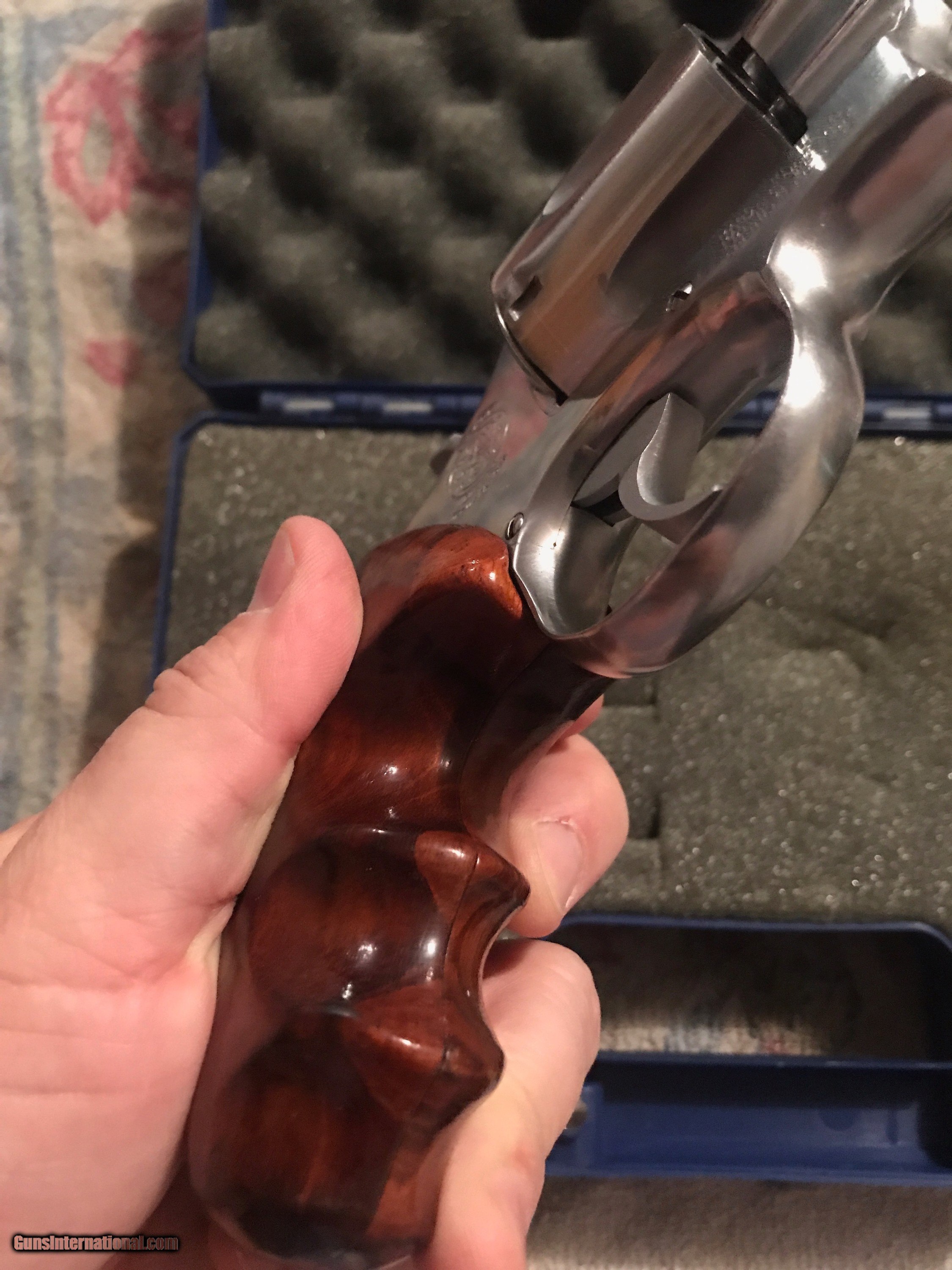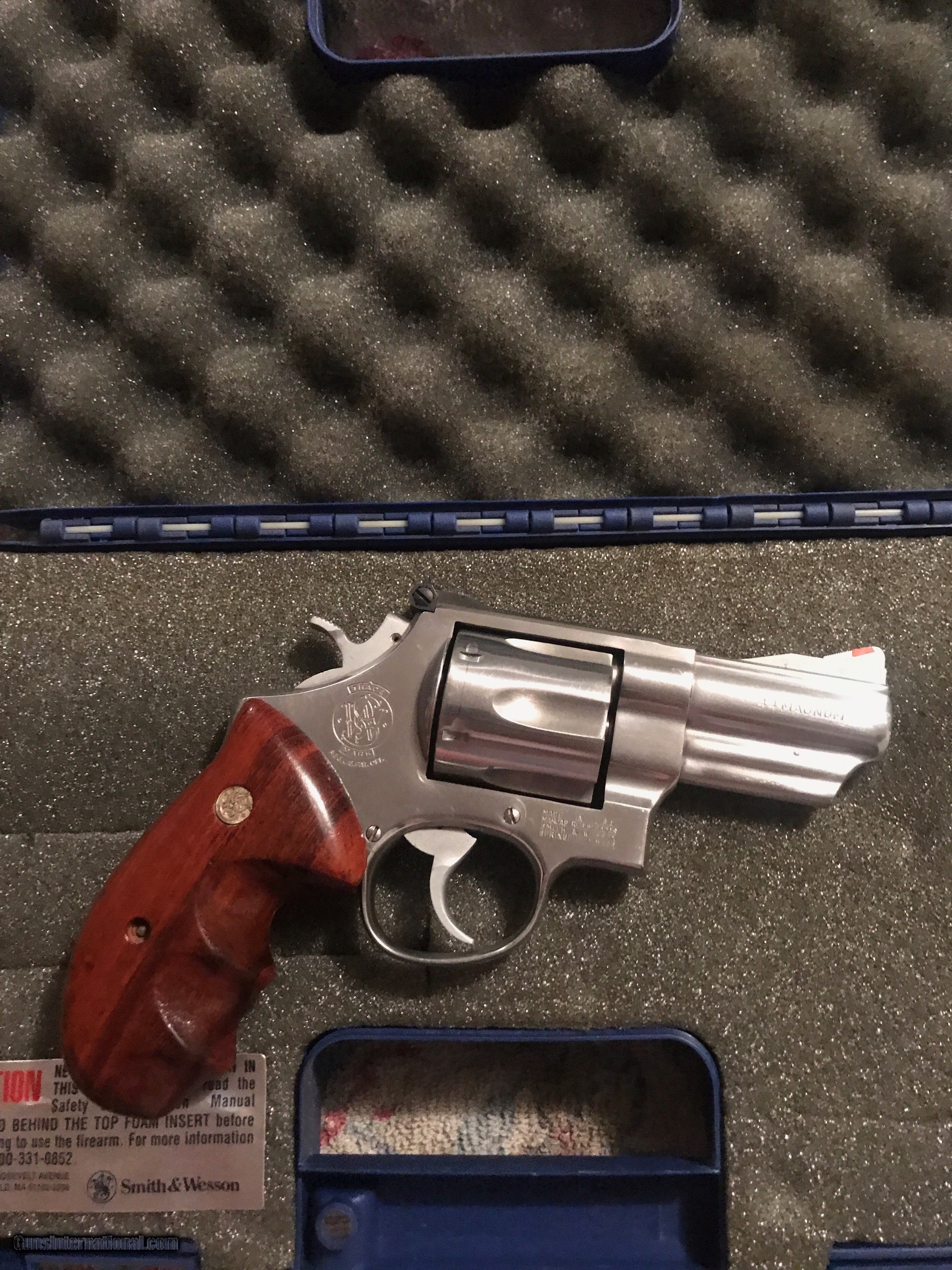 Description: Another fine 3 inch Smith. This 629-1 has finger groove combats, target sights, and stainless finish. .44 magnum caliber. Gun comes with S and W plastic box that is NOT original. Please email with questions. Shipping included SOLD Manufacturer: Smith and Wesson Model: 629-1 Caliber Info: .44 magnum Condition: used Metal Condition: excellent Wood Condition: excellent Bore Condition: excellent Action: double Finish: stainless Sights: target Item Location: 37075 |