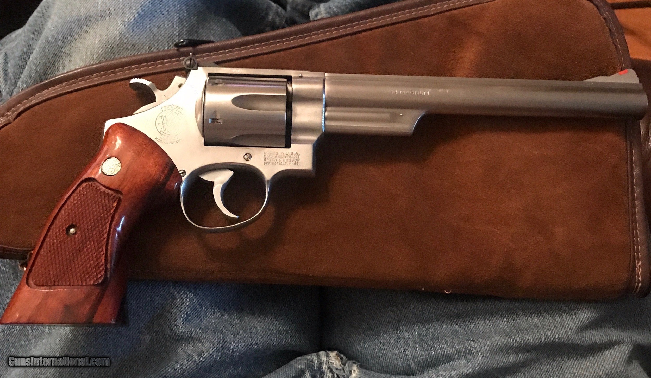 Description: The 629 is one fine revolver. The pinned and recessed 629 is rare and collectable! This one is in beautiful condition. Nearly no turn line. Target grips and sights. Wide trigger and hammer. Purchased from the original owner. NO BOX. These are rare. Here's your chance to own a nice one. Please email with questions. Shipping included. SOLD Manufacturer: Smith and Wesson Model: 629 Caliber Info: .44 magnum Condition: used Metal Condition: excellent Wood Condition: excellent Bore Condition: excellent Action: double Finish: stainless Sights: target Item Location: 37075 |