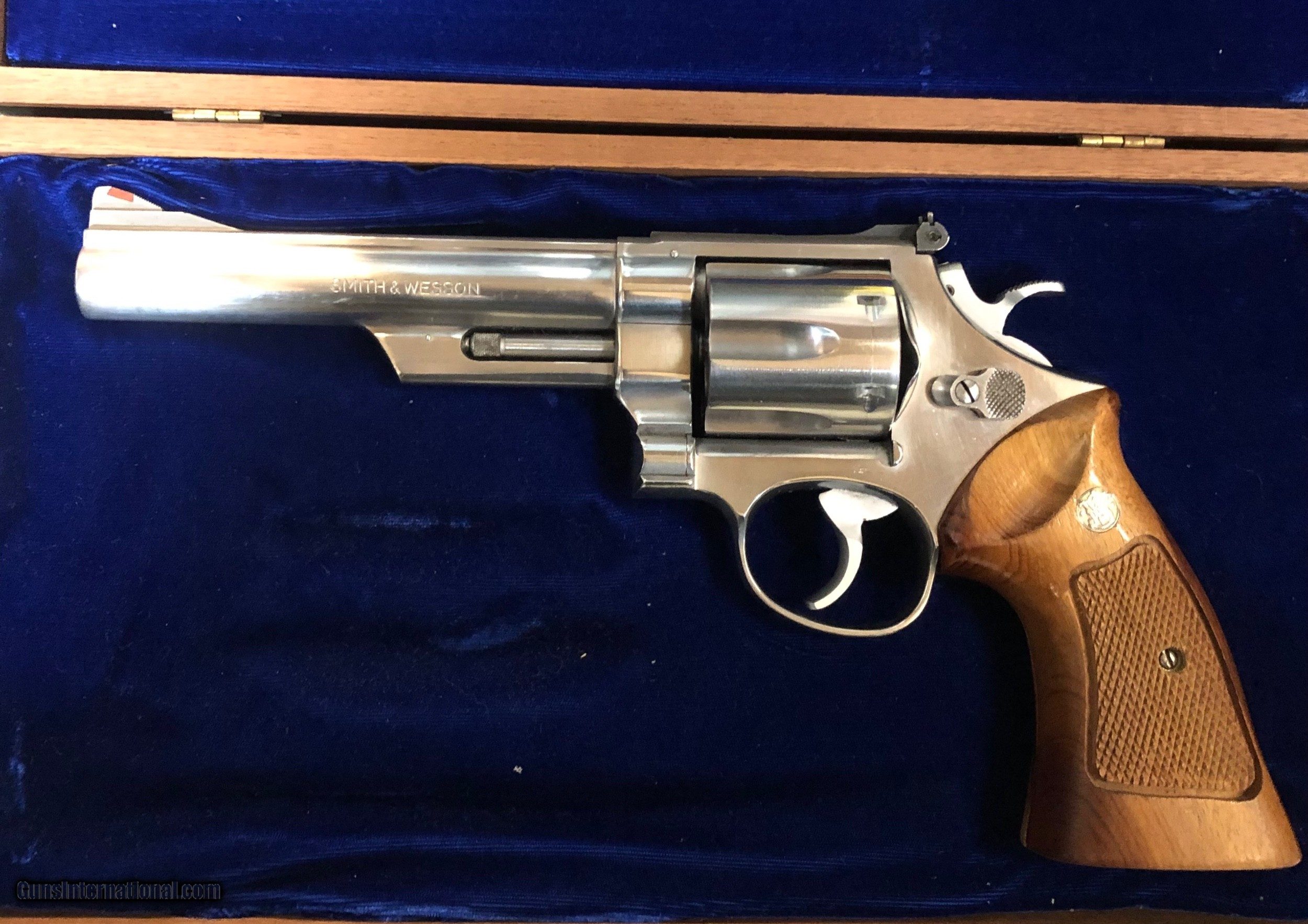 Description: Another nice pinned and recessed 629. Stainless, full target, beautiful wood grips, and nice presentation box. Gun has been shined on a little, but still nice. Please email with questions. Shipping included (west coast add $75). Venmo and cash app accepted. SOLD Manufacturer: Smith and Wesson Model: 629 Barrel Length: 6 in Bore: Excellent Condition: Used Metal Condition: Very good Wood Condition: Excellent Bore Condition: Excellent Action: Da, sa Finish: Stainless Sights: Target Case: Yes Item Location: 37075 |