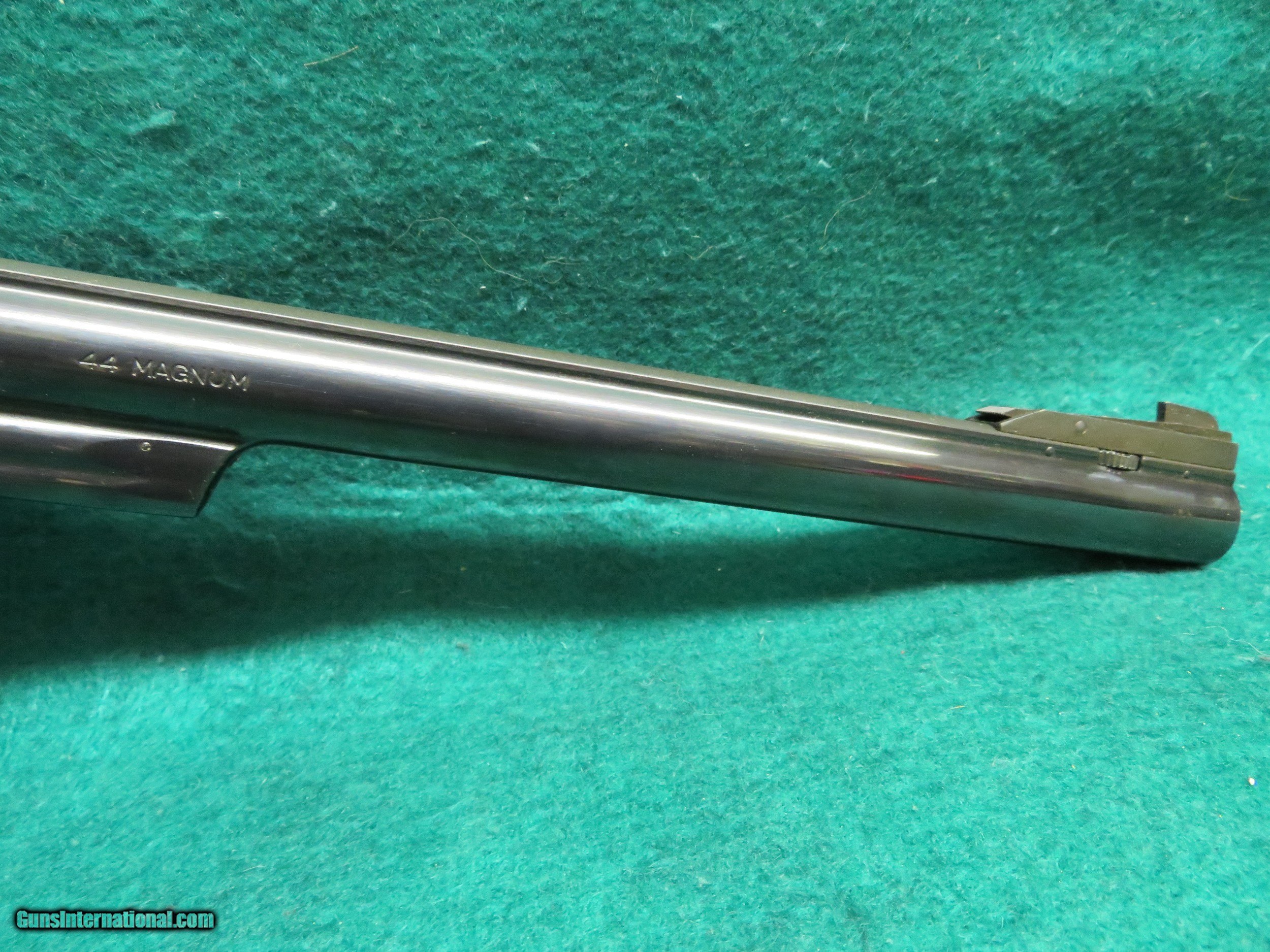 Description: SMITH AND WESSON MODEL 29-3 SILOHETTE .44 MAGNUM REVOLVER WITH 10.5" BARREL. THIS REVOLVER IS IN GREAT SHAPE OTHER THAN SOME PITTING ONE SIDE OF THE THE CYLINDER (PROBLY WAS STORED IN A HARD CASE AND GOT SOME MOISTURE IN IT). THE BLUEING IS BRITE AND THE BORE IS SHINY! IT HAS A ADJUSTABLE FRONT SIGHT FOR SILOHETTE SHOOTING. IT HAS A TARGET HAMMER, TRIGGER, AND GRIPS. THE ACTION IS SMOOTH AND THE TRIGGER IS CRISP. SOLD Handgun Caliber: .44 Remington Magnum Manufacturer: SMITH & WESSON Model: 29-3 Serial Number: ADB9018 Barrel Length: 10.5 Condition: GREAT |