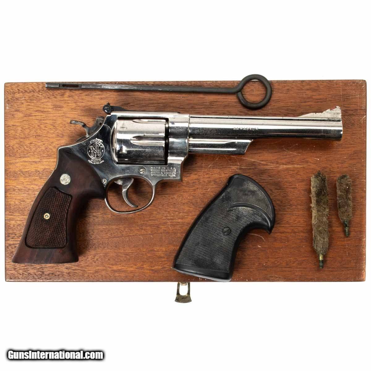 Description: Guns Listing ID: 614461 This Smith & Wesson revolver comes with a wooden case, owner‚s manual, a Pachmayr presentation grip and the original wooden grip is included. Blemishes throughout almost the entirety of the gun. The nickel finish isn‚t pealing, however it is cloudy and in some places pitted. Please see photos for details. SN: N127264 Manufacturer: SMITH & WESSON Model: 29-2 Caliber Info: .44 MAGNUM Condition: Used - Non-Certified Barrels: 6.50" BARREL Action: REVOLVER Finish: nickel Weight: 3 Price: $1,399.99 Contact Seller |