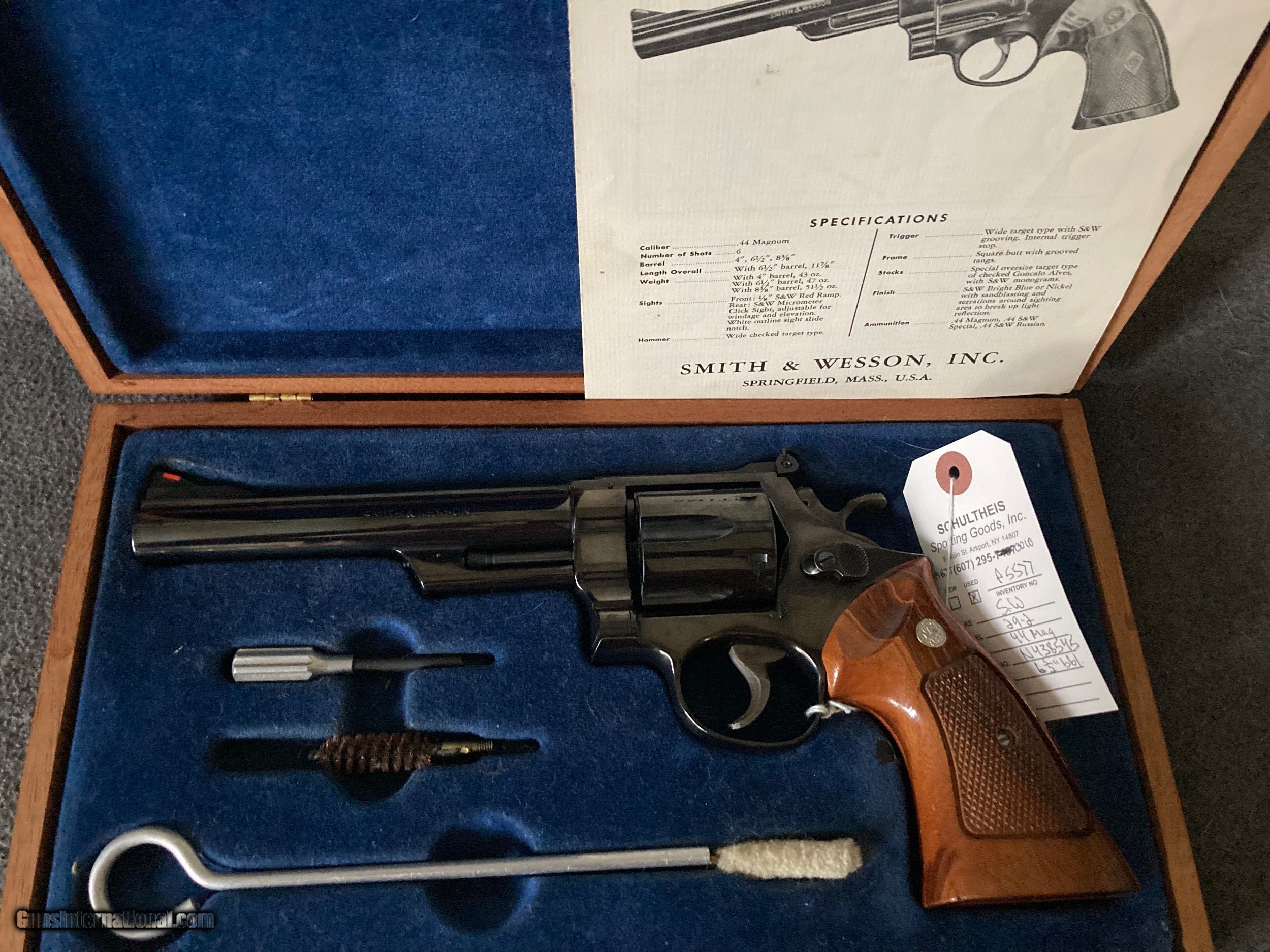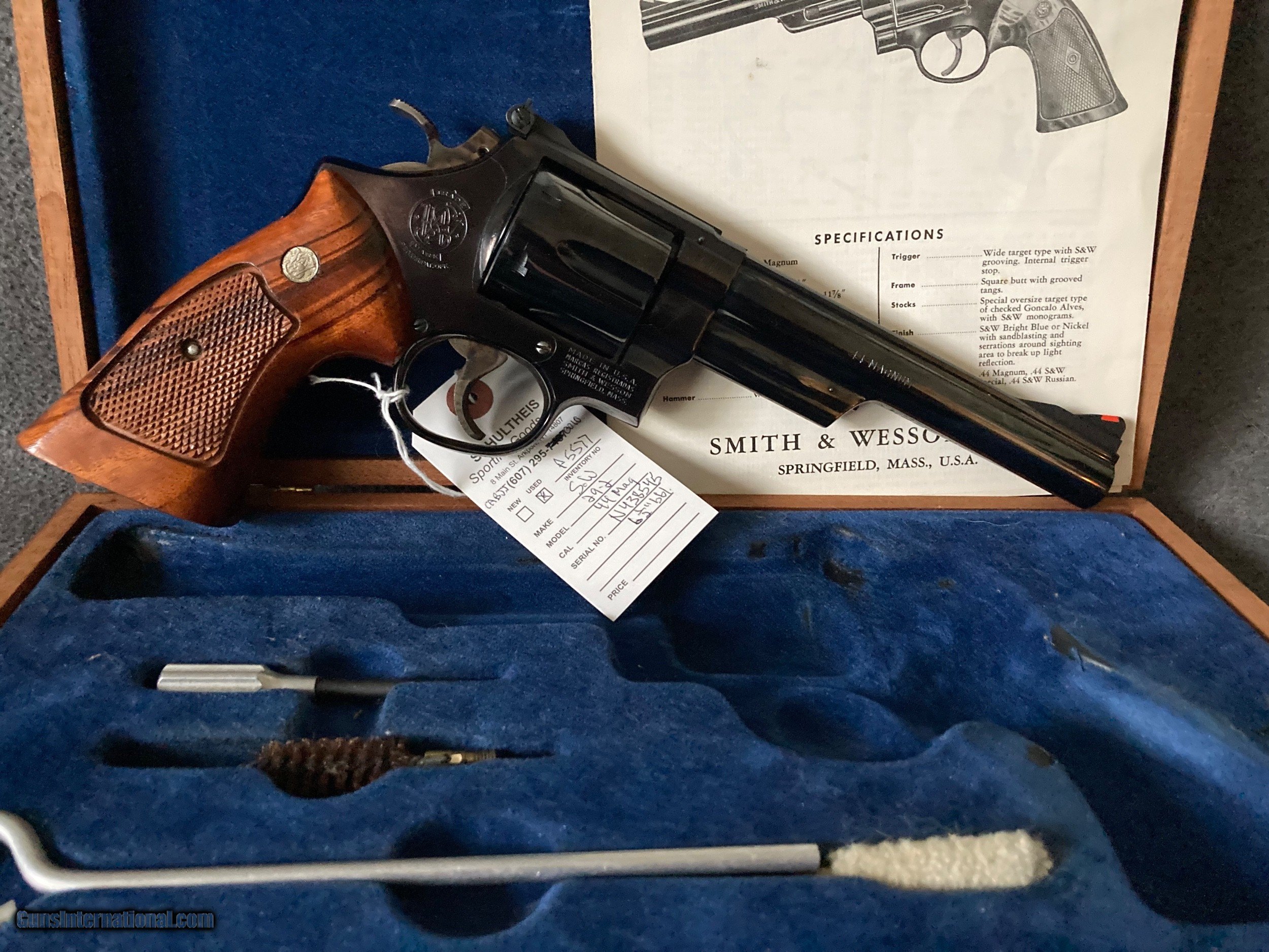 Description: S&W Model 29-2, 44 mag, 6 1/2" barrel, serial number N438XXX, target hammer, target trigger, target grips, 99 1/2% blue, near mint, received from original owner, in original presentation box with cleaning rod, screwdriver and owners manual. ($75.00 shipping) SOLD |