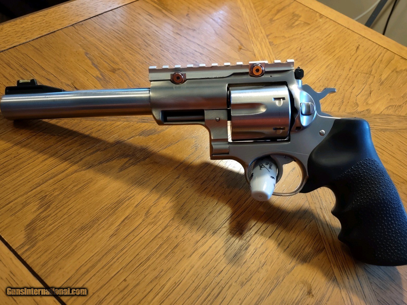 Description: 44 mag 7 1/2 inch barrel, green fiber optic sight,picatiny optics mount . Gun is in excellent condition $650.00 +40.00 shipping SOLD |