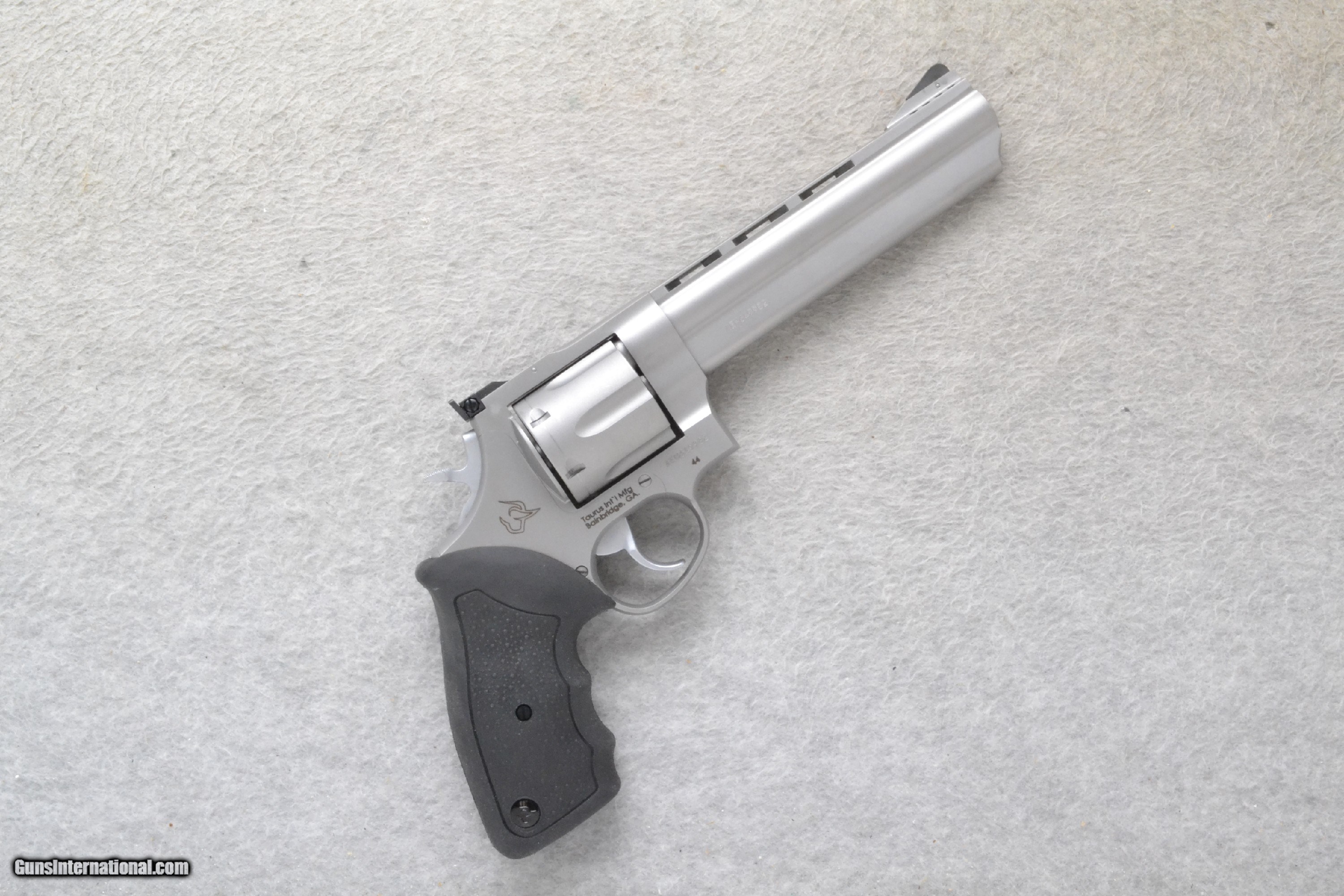 Description: This Taurus 44 is a right-hand double action revolver in .44 Magnum Cal. The barrel is 6.5 inches long, vented. It has a fixed blade with Hi Vis orange strip front sight, and an adjustable notch rear sight. The pistol grip is textured rubber with finger rests. It includes a box. .44 Magnum Chambers: 6 rounds Bore Condition: Very good Barrels: "6.5"", vent rib Weight: 3 lbs Sights: "Fixed blade with Hi Vis orange strip front, adjustable notch rear Item Location: Richfield, WI Price: $599.99 Contact Seller |