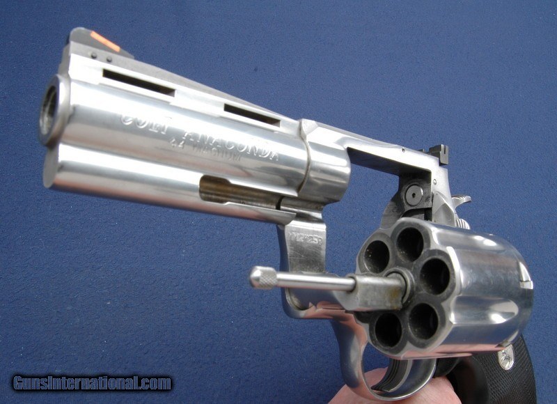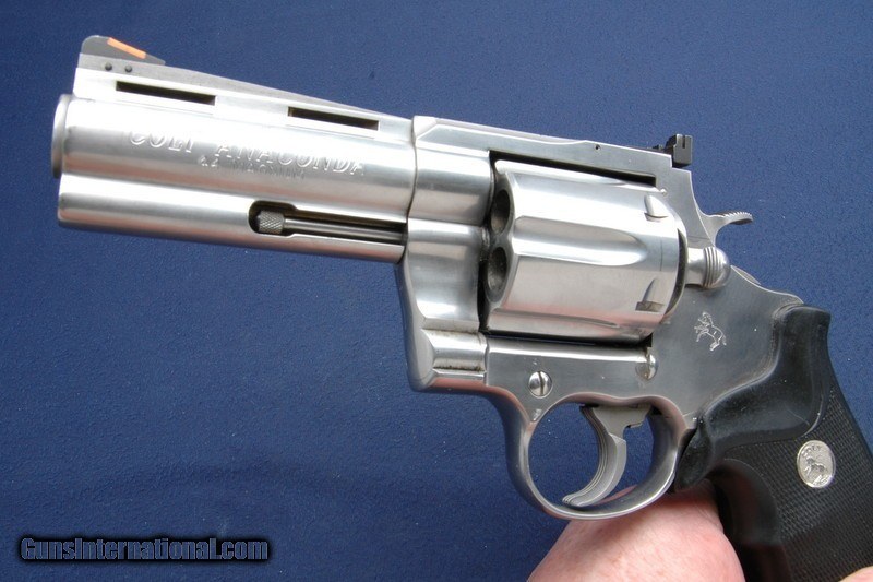 Description: Here is a good, solid Colt Anaconda chambered in .44 Magnum. 4" barrel, all stainless steel, excellent bore. Locks up tight. Sorry, no box or papers. $35 shipping to the lower 48, 3% surcharge for using a CC. If you choose to pay with a personal check, we will hold the item for up to 10 days to make sure that it clears. Please expedite such pymts as we will hold an item on your word for 5 days. SOLD Handgun Caliber: .44 Remington Magnum |