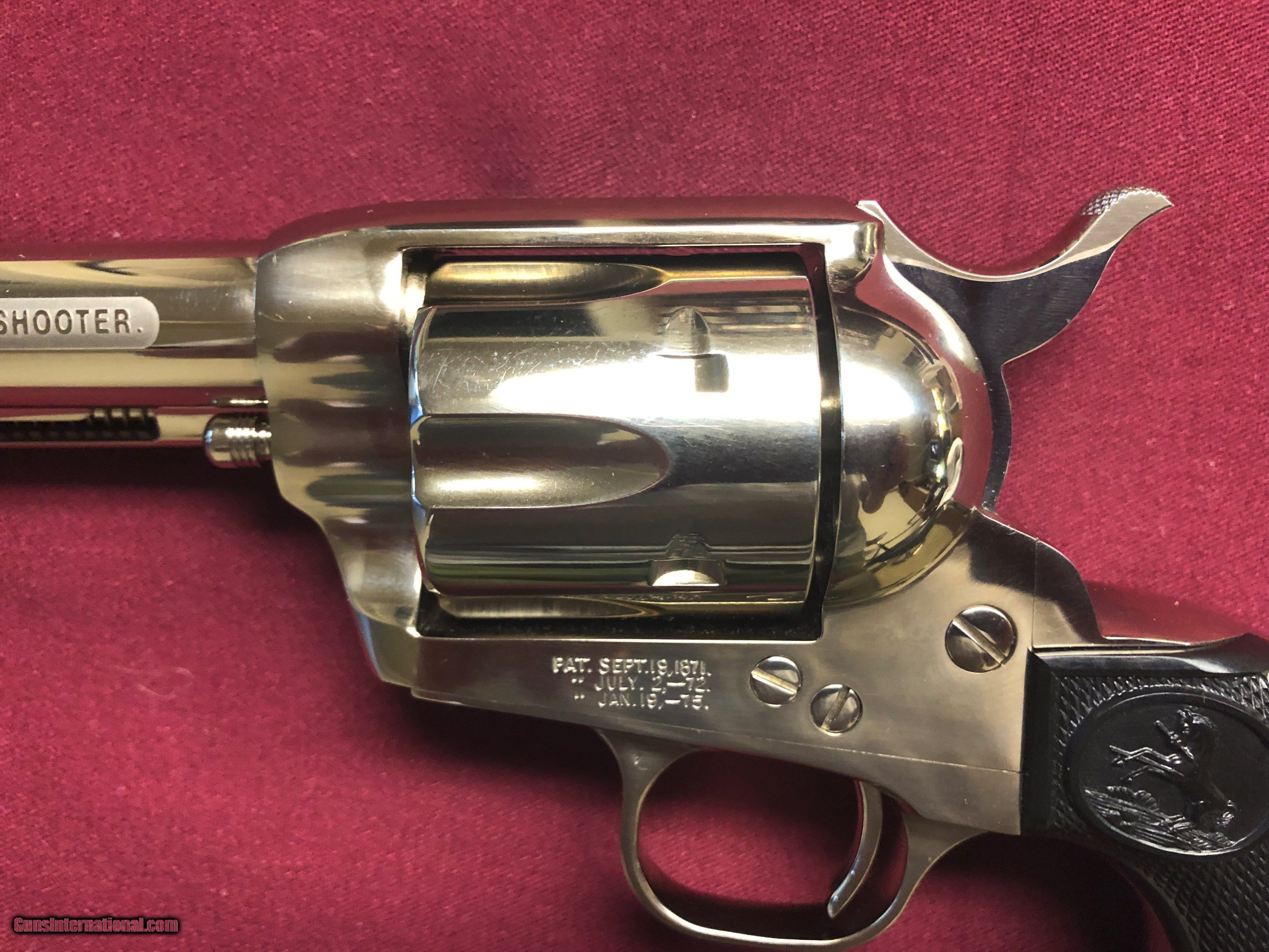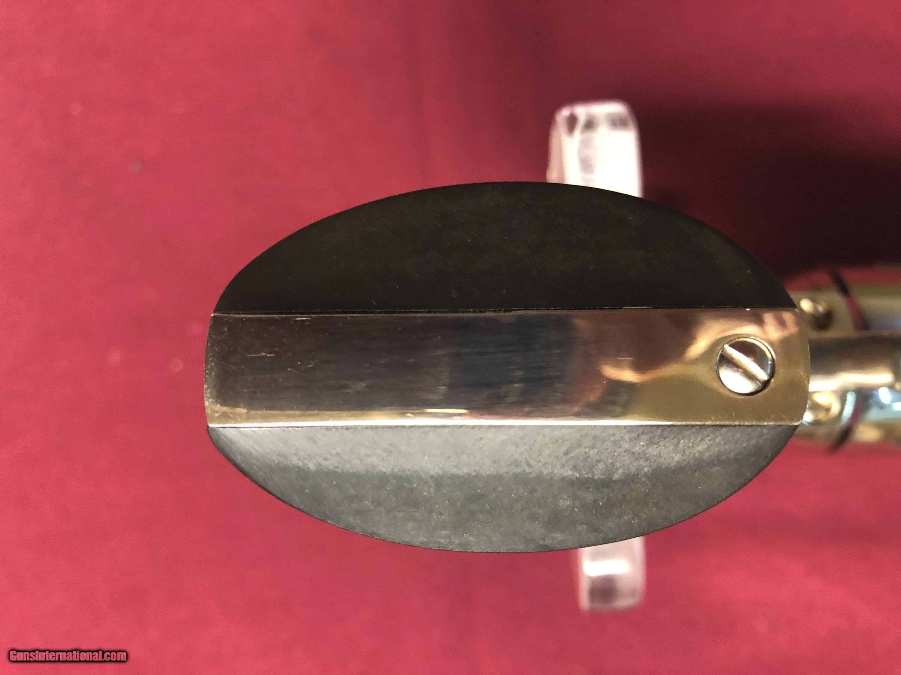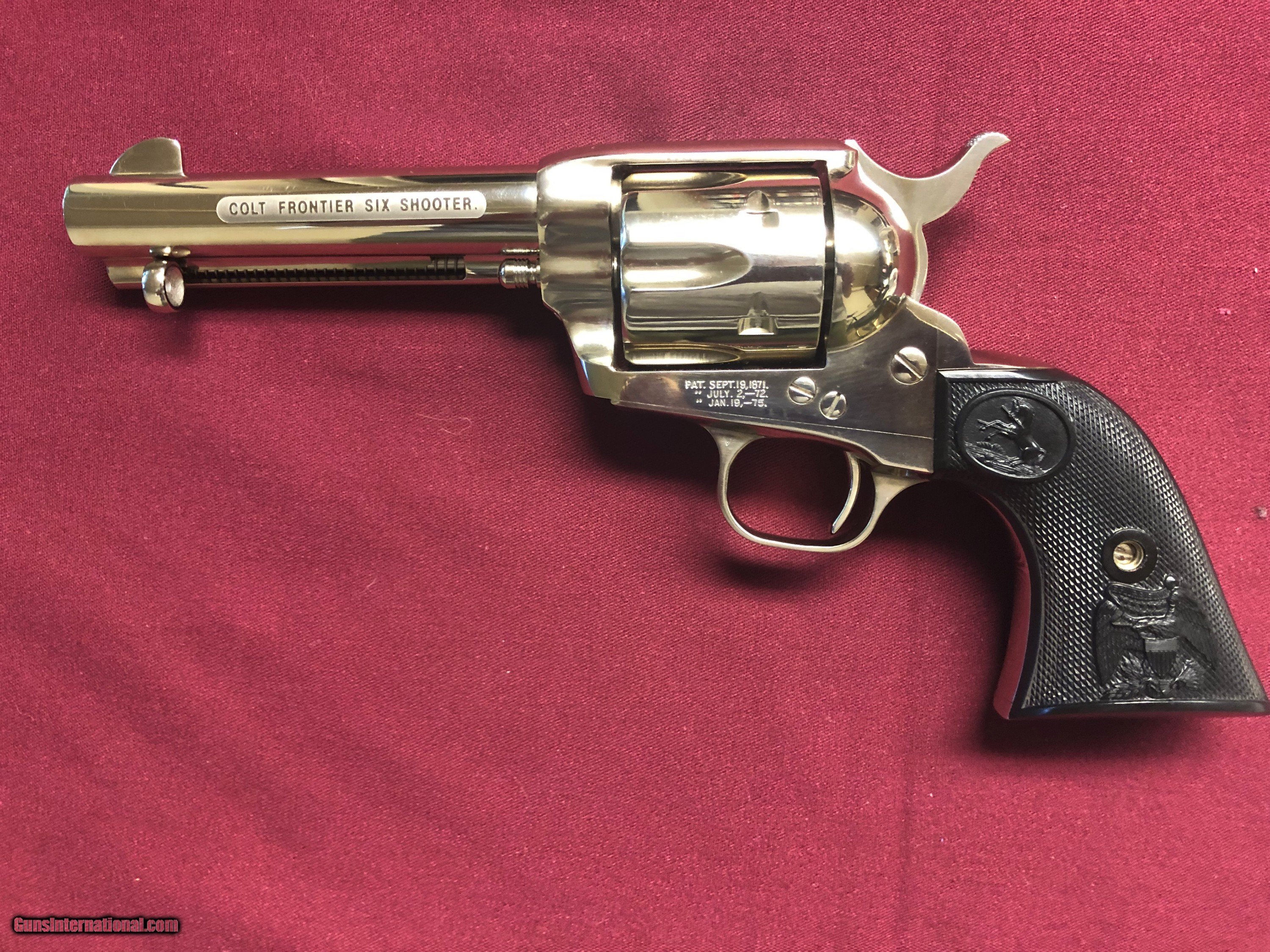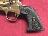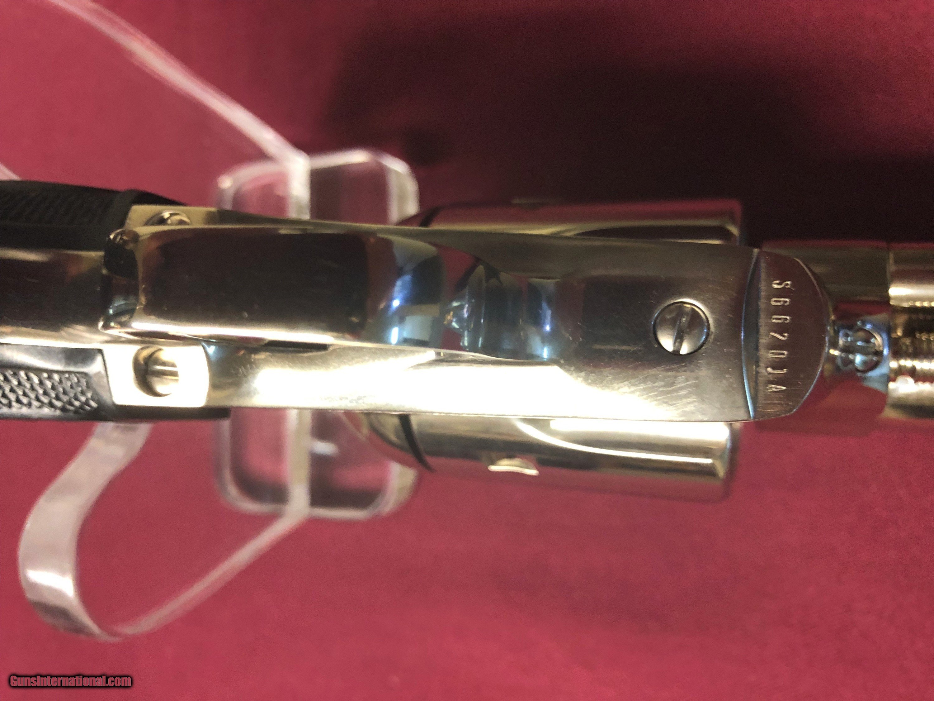 Description: These Etched Panel guns were made about 1993 and again in 2011, This one was made in 2011. Probably Colts most sought after SAA new and old (1st generation). Black Powder frame in full Nickel, with black eagle grips, bulls eye ejector rod and base pin retained by screw in front of frame. This example is NIB (New in box), not even a faint turn line, comes with all paper work and white sleeve.These are very hard to find and a must for serious collectors. Shipping $50.00 lower 48 no CA Cashiers Check. Call or e-mail with any questions and check out my odther listings. SOLD |
