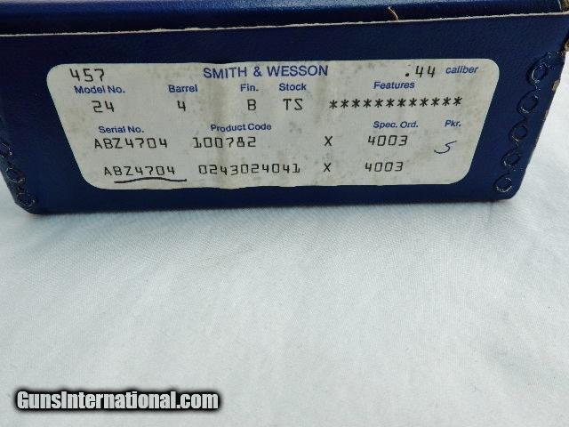 Description: This is a Smith Wesson 24 44 special with a 4 inch barrel. This gun is 100% new in the box. Serial # is ABZ47xx. Buyer pays 35.00 shipping. Thank you. 39-5-14 SOLD |