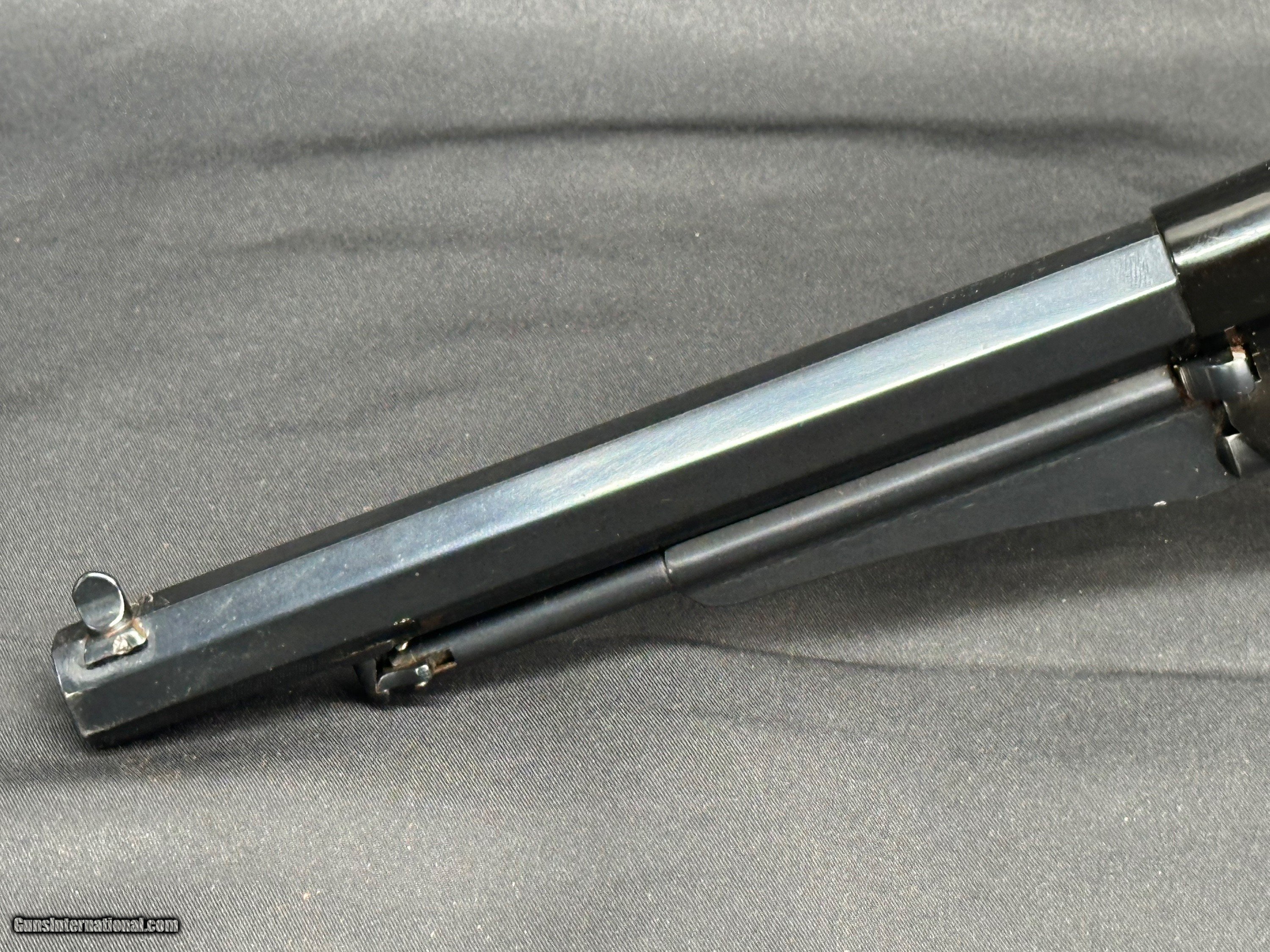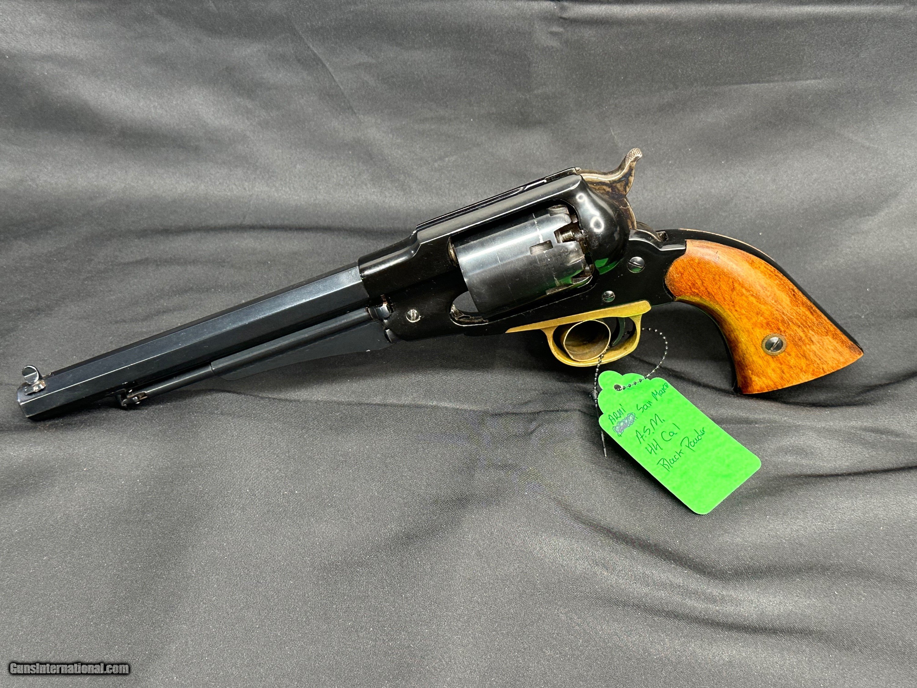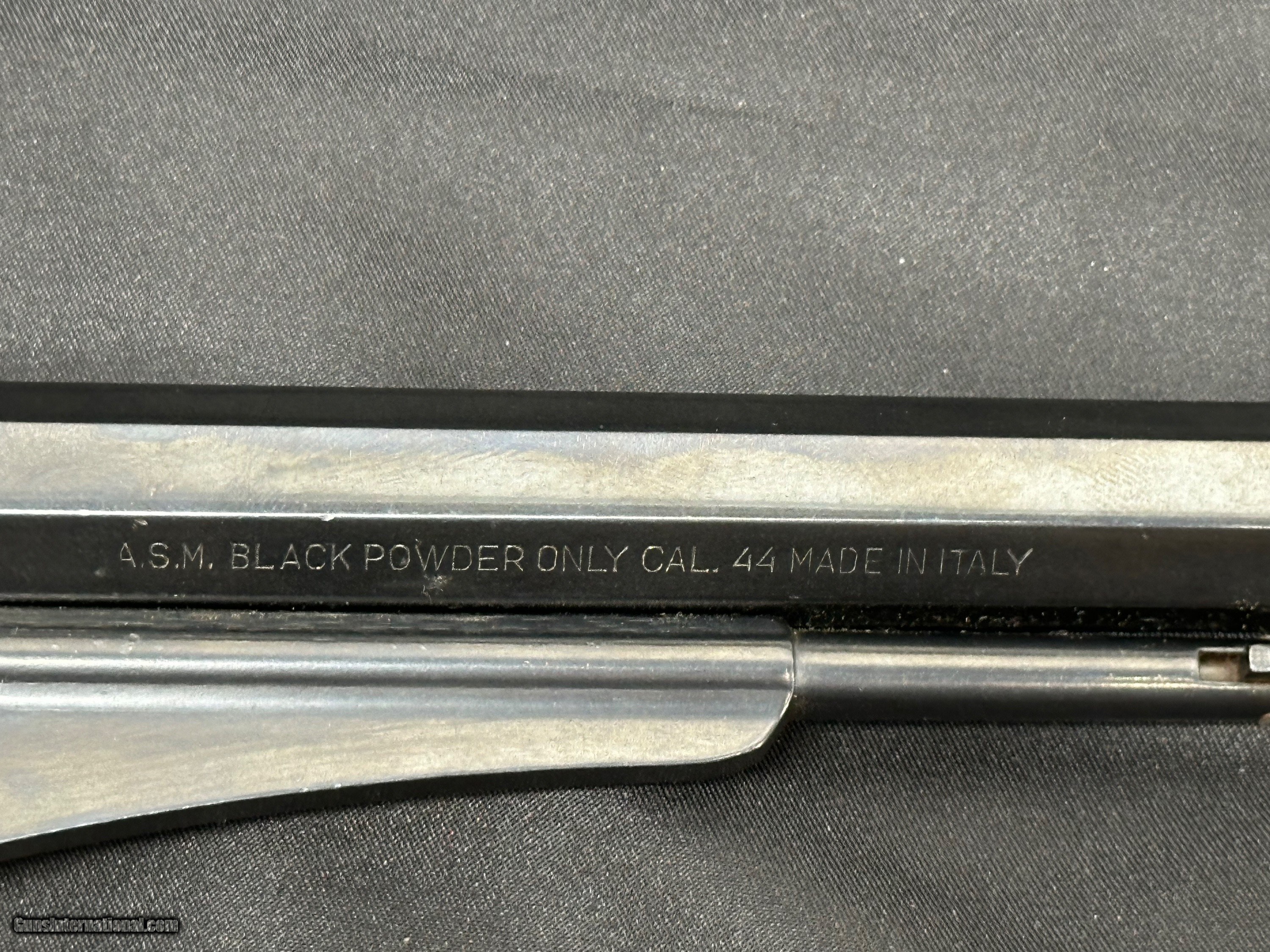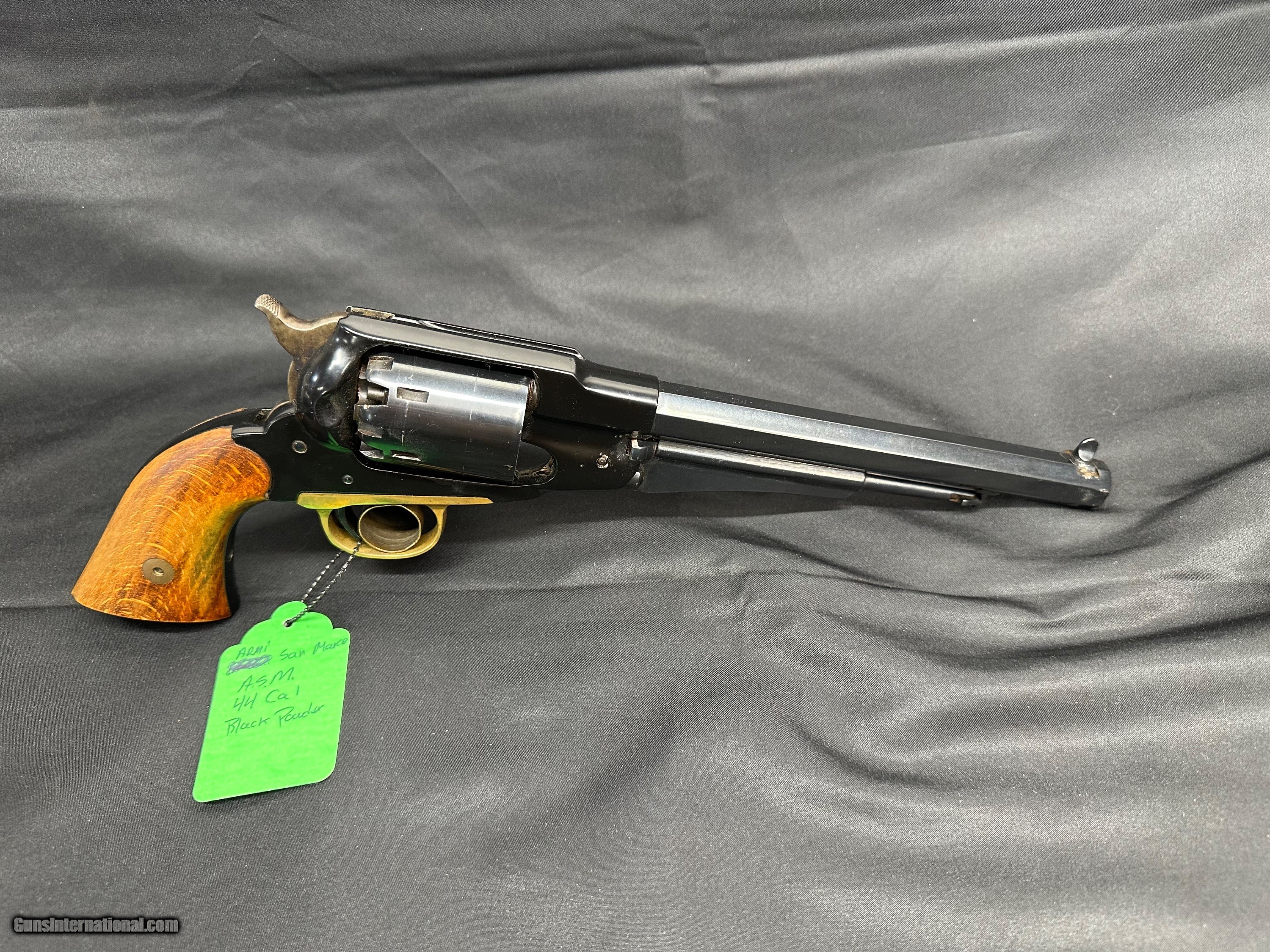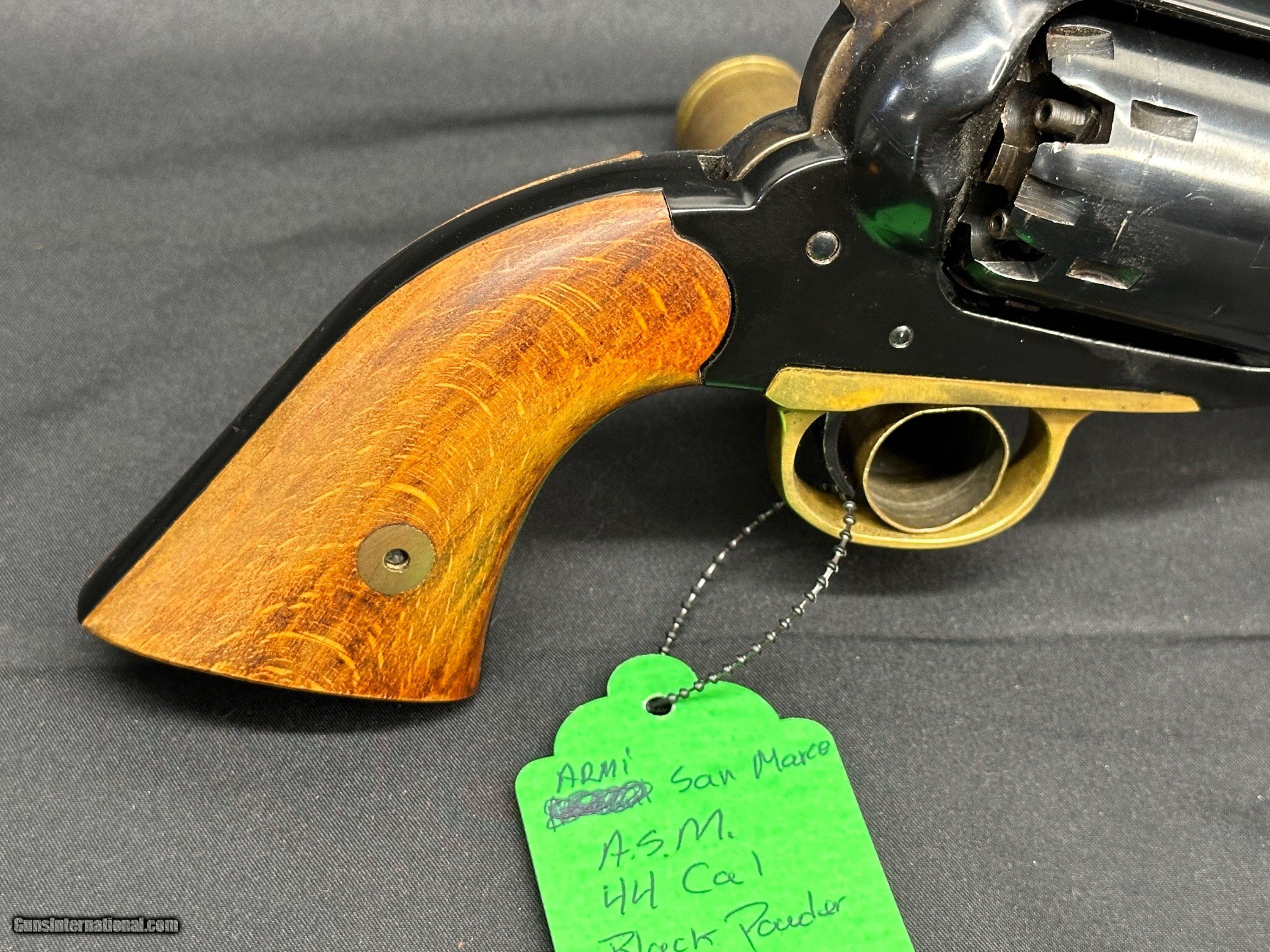 Description: This is a Armi San Marco 44 cal black powder revolver. In very good condition. Nice clean bore. uses # 11 percussion caps. FLat 25.00 shipping Price reflects a 3% cash discount Maine residents must add 5.5% sales tax SOLD Handgun Caliber: .44 Manufacturer: Armi San Marco Model: 44 Cal percussion revolver Serial Number: NSN Barrel Length: 8 Condition: Very Good Metal Condition: Very Good Wood Condition: Very Good Bore Condition: Very Good Action: Revolver Single action Item Location: Buxton Maine |