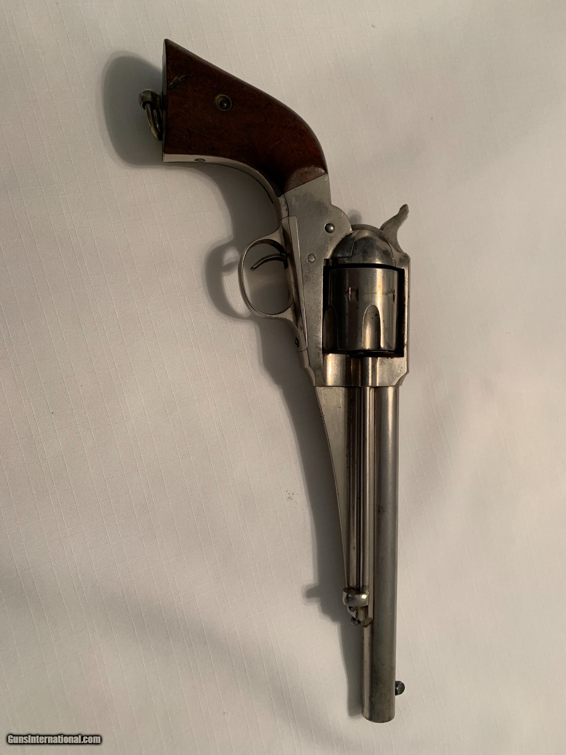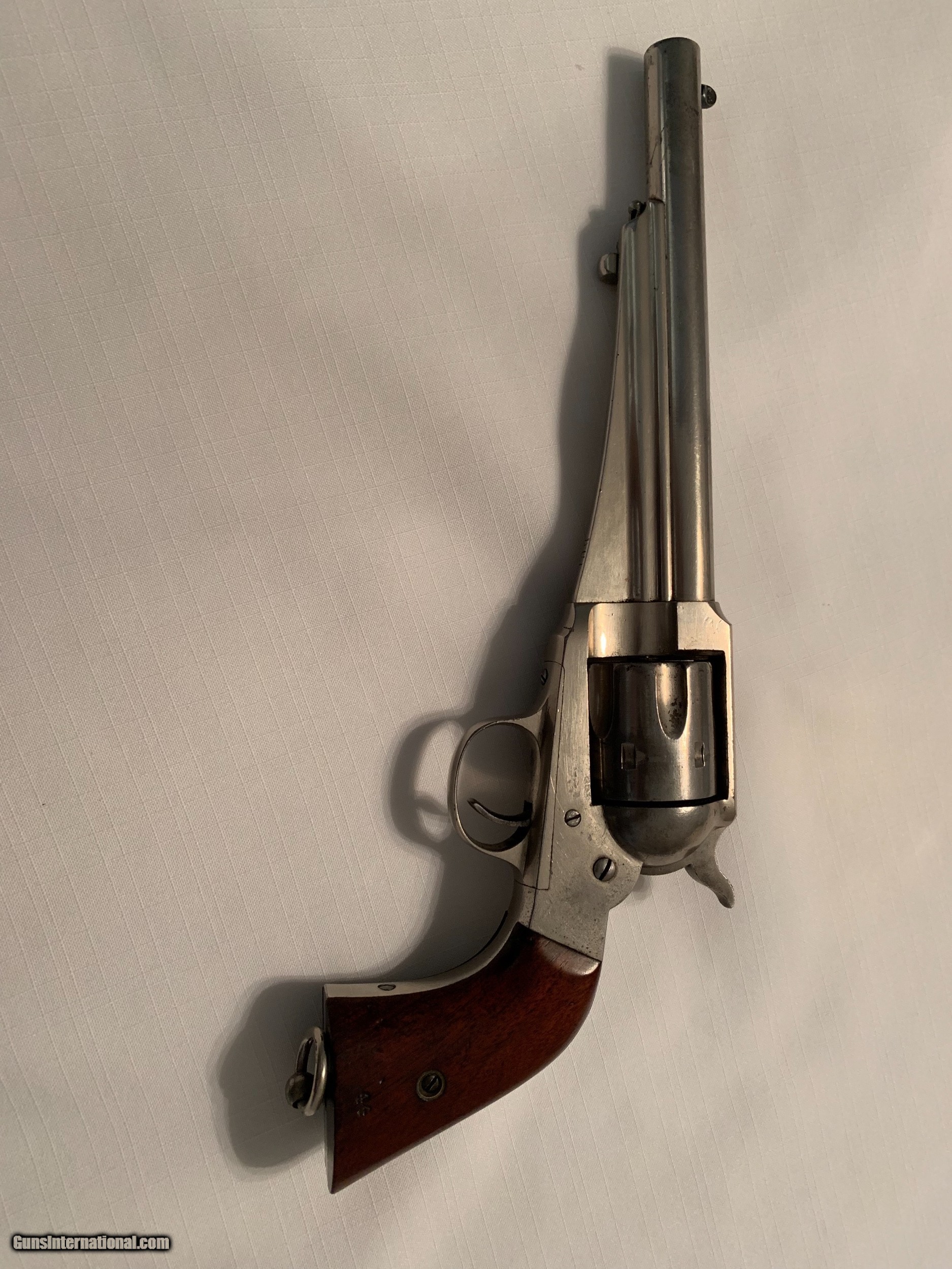 Description: Remington 1875 cal.44 with a 7 1/2 inch barrel, 98% nickle finish 98% grips finish. Gun is in great condition and is getting hard to find SOLD Manufacturer: Remington Serial Number: 27 Caliber Info: 44 Condition: Excellent Wood Condition: Excellent Action: Single |