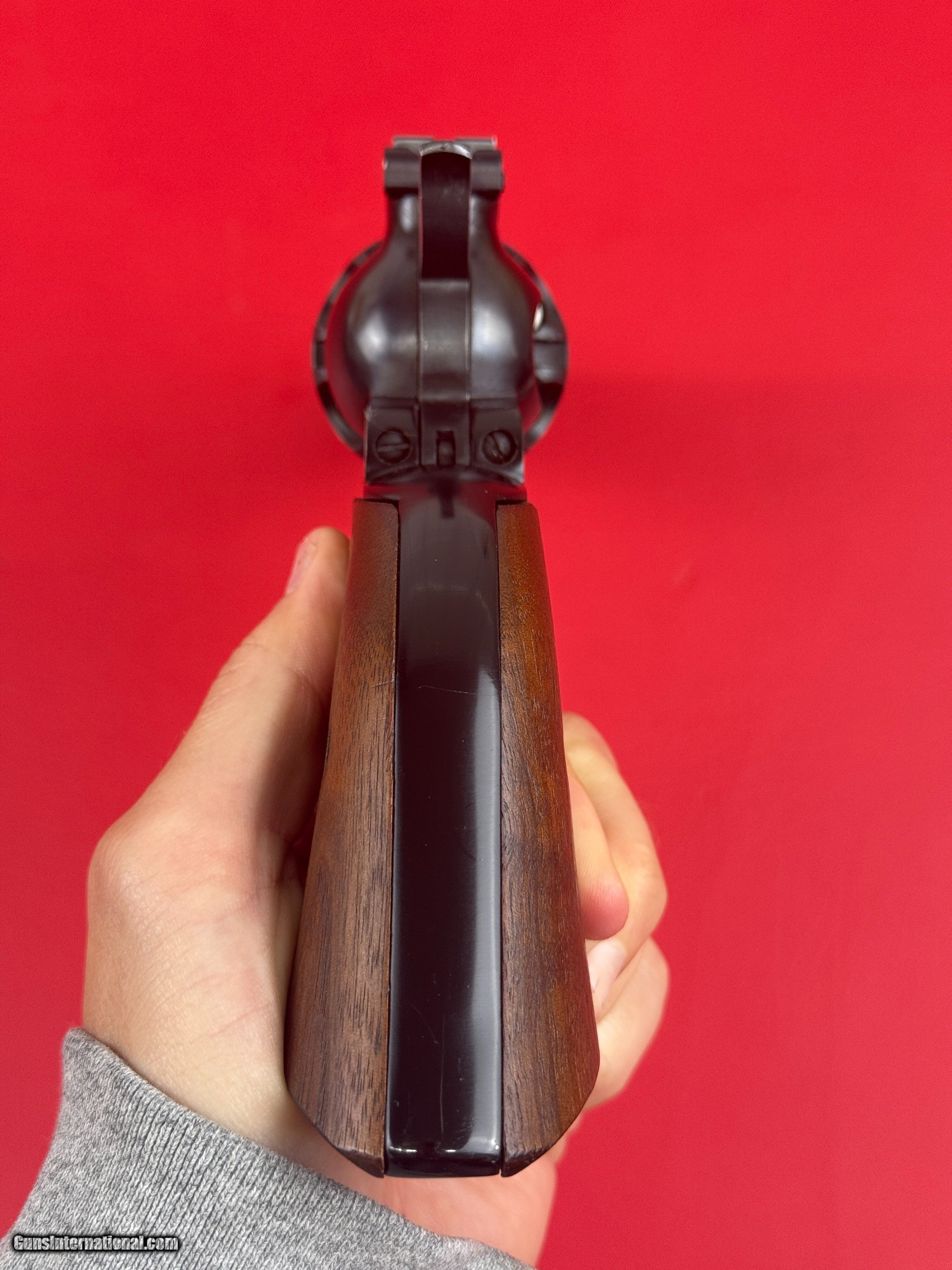 Description: This Ruger Old Army .44 black-powder percussion revolver, manufactured in 1978, is in near-excellent condition. The original bluing presents very well with only minimal wear, and the walnut (or simulated) grips are in very good condition with no handling marks. Mechanically the revolver is smooth and functions correctly — the action is crisp and there are no issues to report. The bore is strong and clean. Overall a well-kept example for the collector or shooter who wants a ready-to-use percussion revolver with attractive finish and excellent mechanical condition. SPECS: