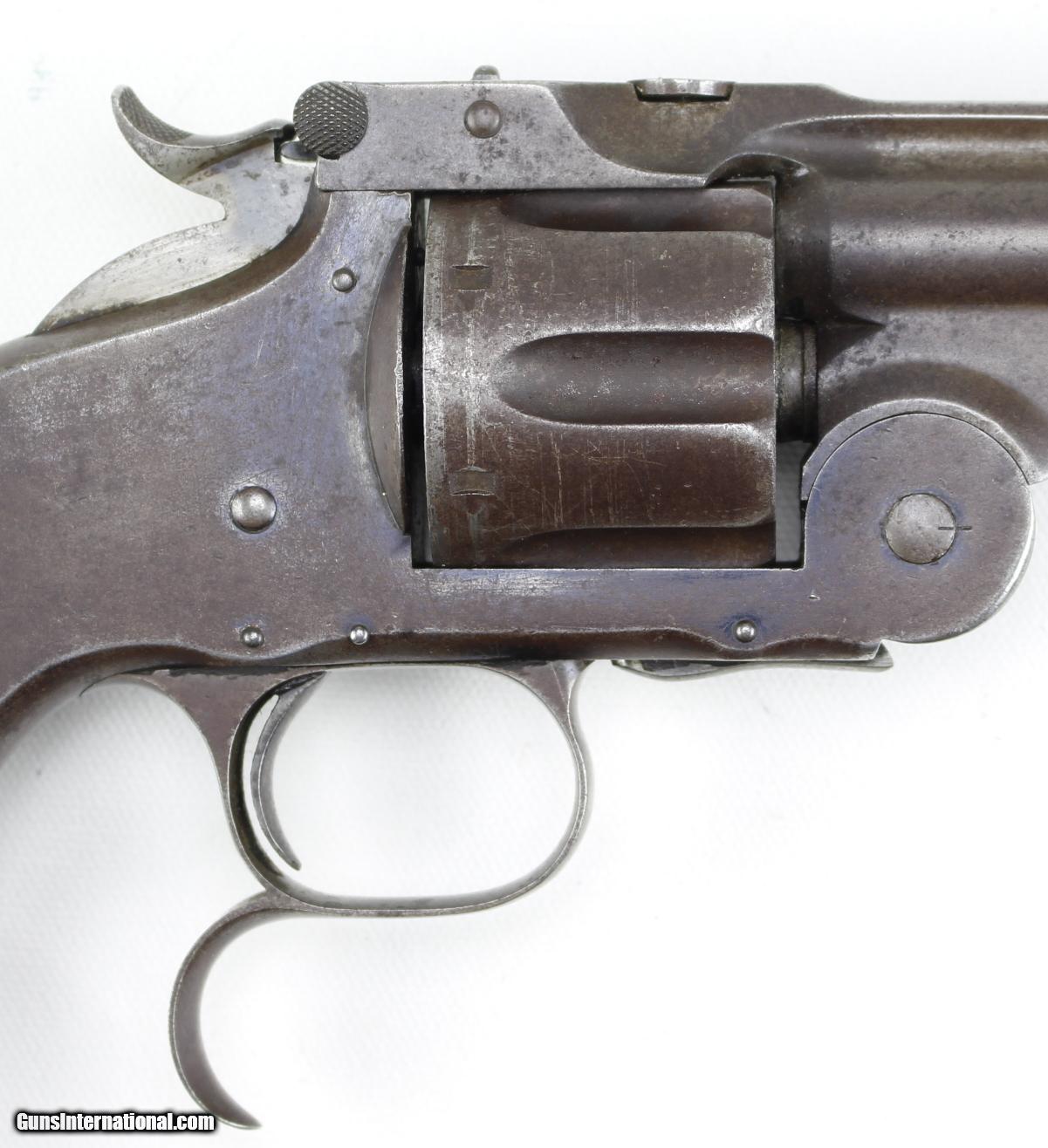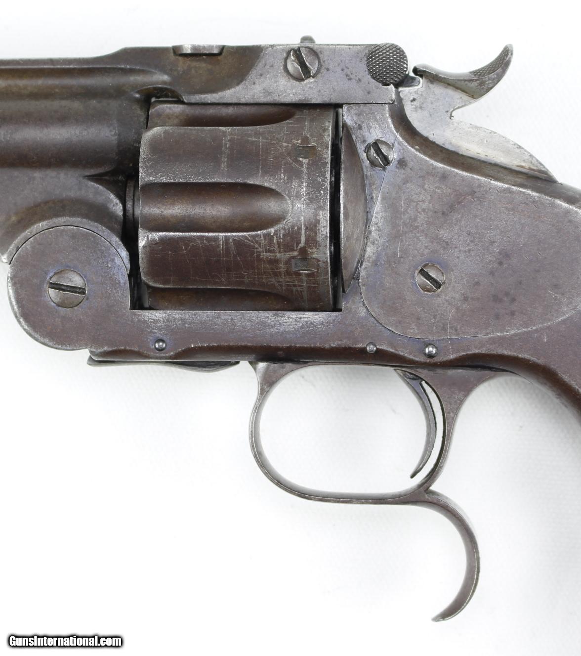 Description: This is a SMITH & WESSON,New Model #3, or Referred to as a, "NEW MODEL RUSSIAN, with a 6 1/2" Barrel, Excellent Bore, Nice Original Grips, Lanyard Ring, all Proper Markings, Mechanically Very Good, with a Weak Ejector Spring. Almost No Pitting and Retains a A Good amount of Original Blue. SN# 59716 of the 60,600 Made. This gun has the Forge Barrel with the Sight, Not the Pinned Sight, the Trademark of the New Model Russian. Price reduced from $1949.00, New Price $1749.00 SOLD Antique: Yes |