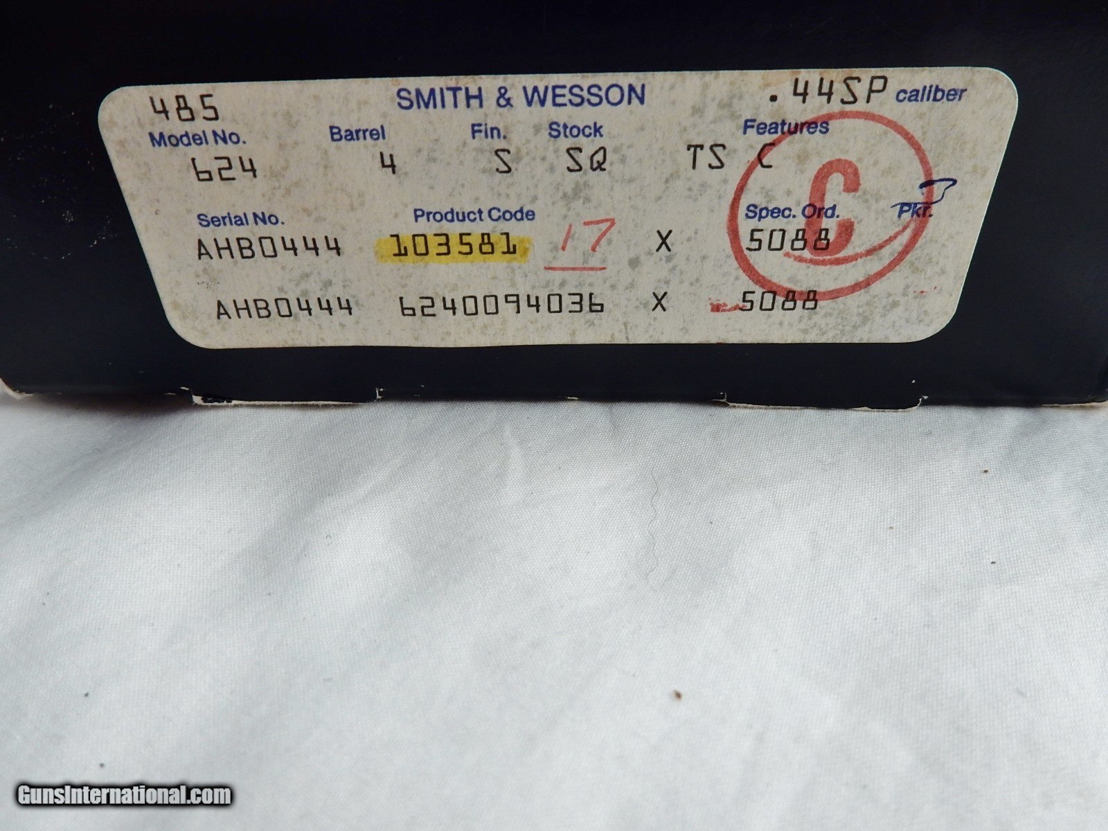 Description: This is a Smith Wesson 624 44 with a 4 inch barrel. This gun is 99% in the box. Serial # is AHB04xx, Buyer pays 35.00 shipping. Thank you. 45-18-14 SOLD |