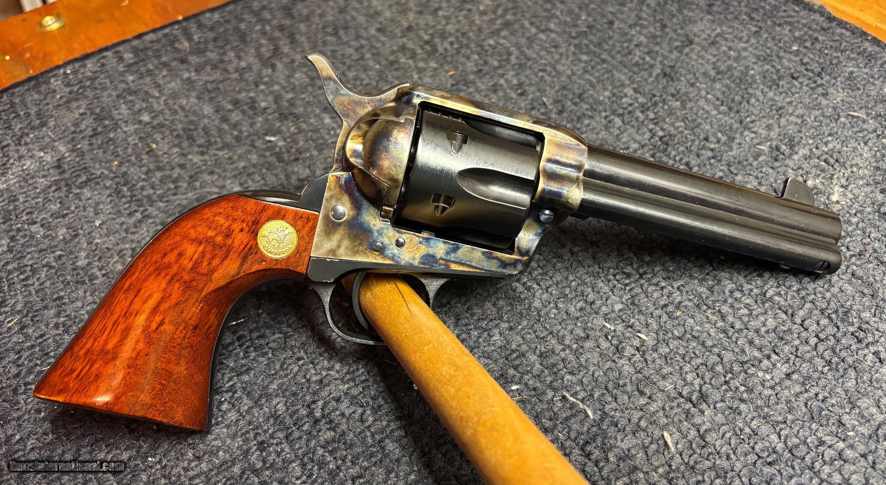 Description: Cimarron model P 4 3/4" barrel .44 special. Excellent condition. Front sight regulated for windage. Handgun Caliber: .44 Special Manufacturer: Cimarron Model: P Serial Number: P56861 Barrel Length: 4.75 Condition: Excellent Metal Condition: Excellent Wood Condition: Excellent Bore Condition: Excellent Weight: 37 oz. Grips: Wood w/medallions Price: $450.00 Shipping: $50.00 Contact Seller |