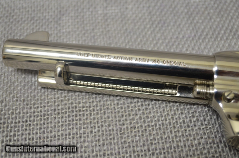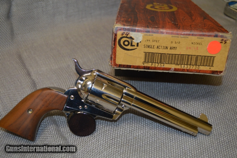 Description: -Colt Single Action Army -.44Spl -Nickel -5.5" -PRICE IS NEGOTIABLE!! and Shoot Straight is not responsible for different state laws and regulations on firearms, buyer assumes all responsibility for individual state requirements!! -PLEASE CALL OR EMAIL WITH QUESTIONS!!!! SOLD |