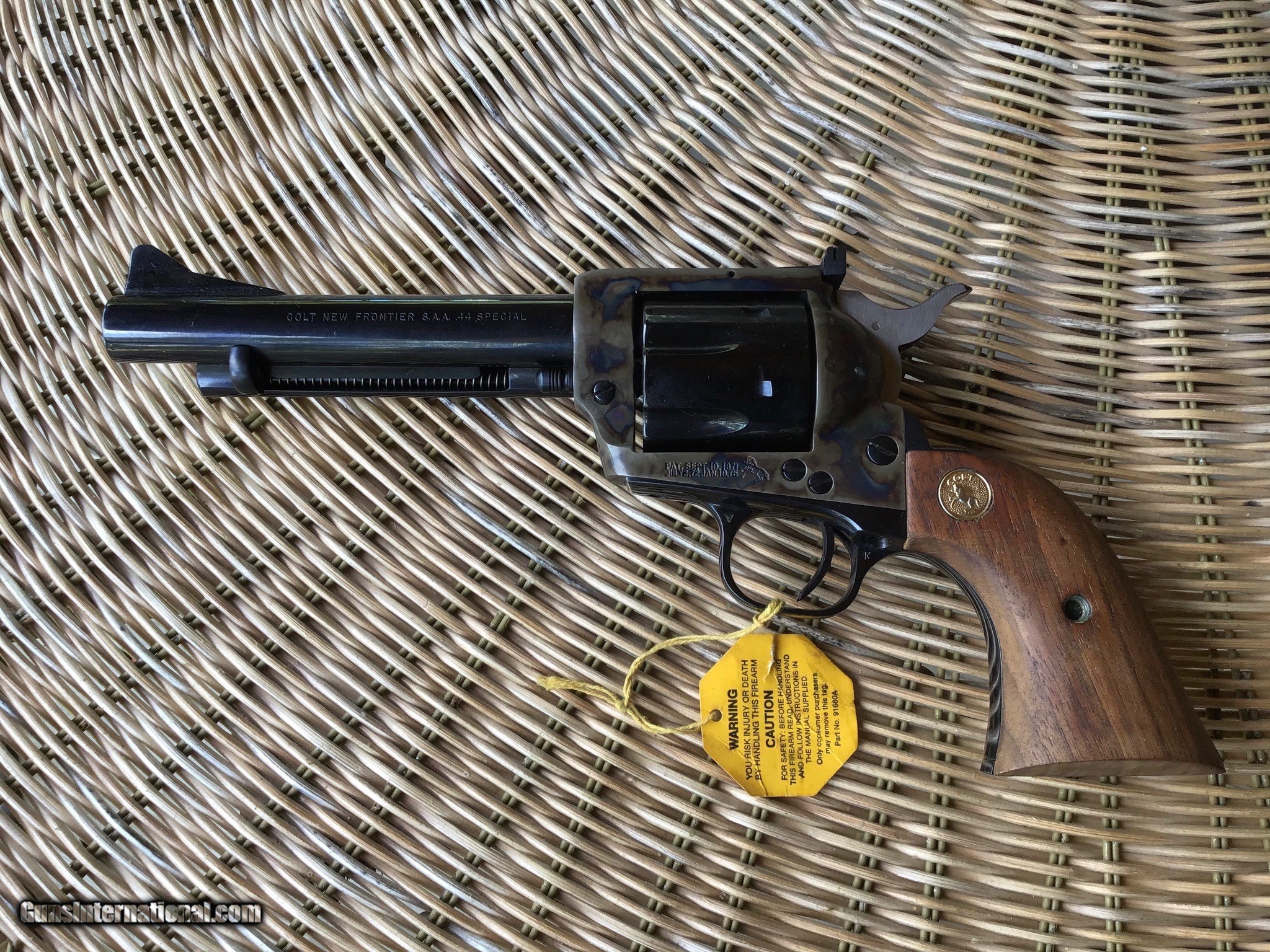 COLT SAA NEW FRONTIER 44 SPC. CAL., 5 1/2” BLUE/CASE, NEW UNFIRED, NO TURN LINE, 100% COND. IN FACTORY GREASE, IN THE BOX