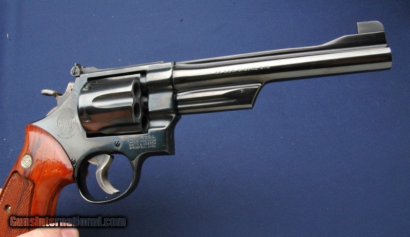 Description: Everything is here! This 24-3 is in collector grade condition, complete in the original factory box with all paperwork, wax paper and the cleaning kit. Box is numbered to the gun. Grips are excellent as well. Target hammer and trigger, mint bore. If you these 44s like I do- this is a killer deal! $35 shipping to the lower 48, 3% surcharge for using a CC. If you choose to pay with a personal check, we will hold the item for up to 10 days to make sure that it clears. Please expedite such pymts as we will hold an item on your word for 5 days. SOLD |