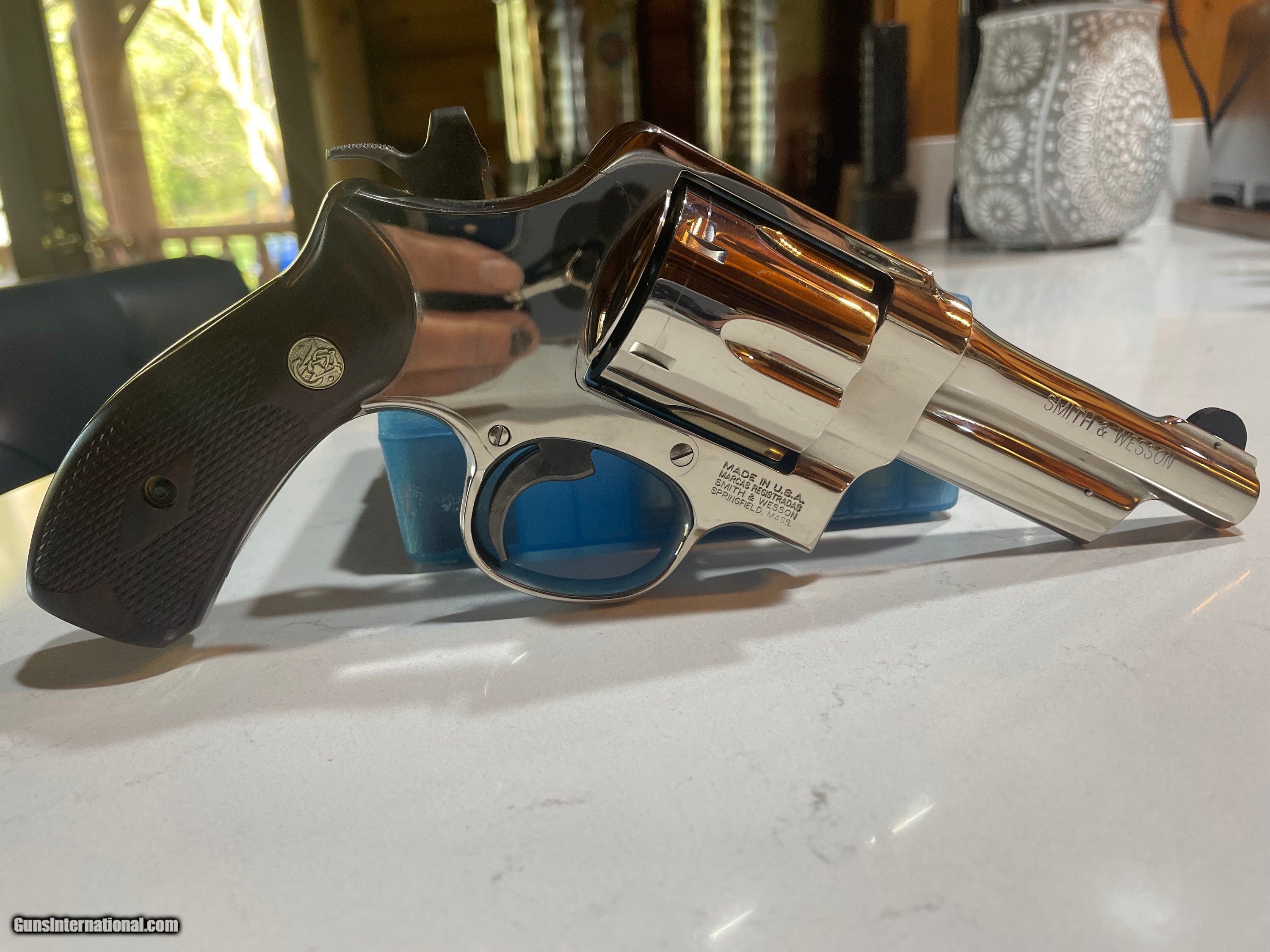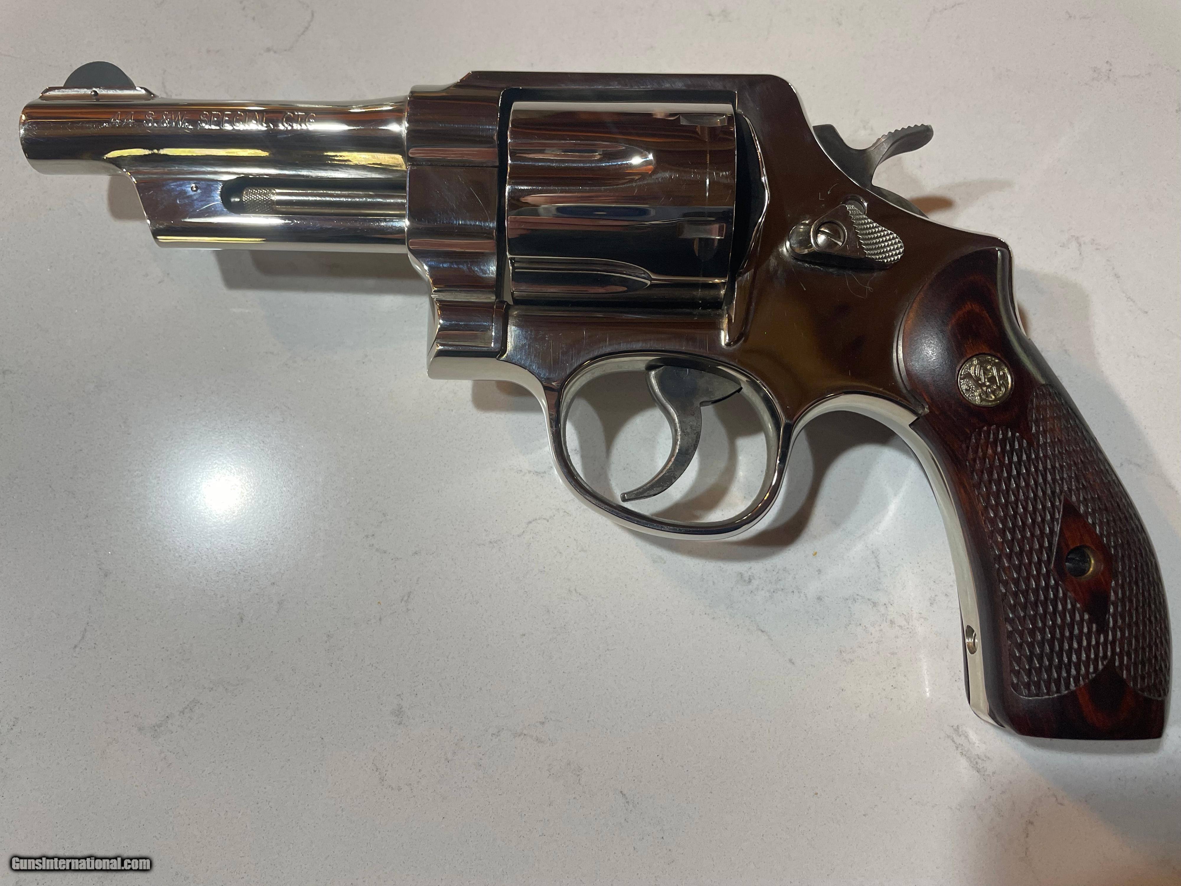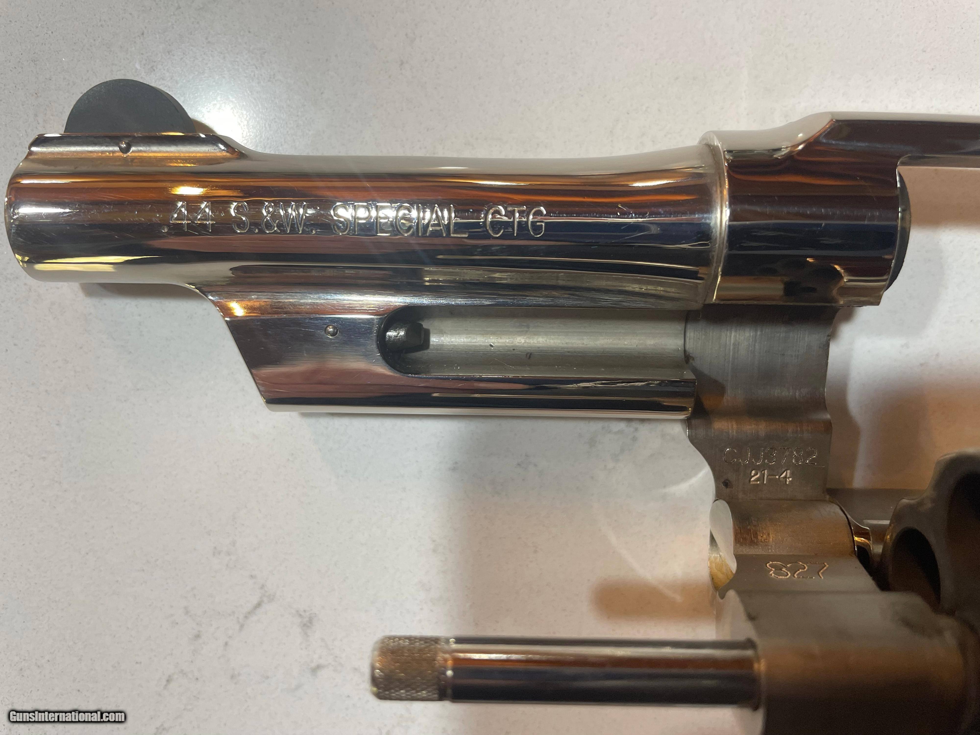 Description: SOLD a very beautiful and difficult to find Smith and Wesson 21-4 in 44 Special with excellent (but challenging to photograph) nickel finish. I bought this some time ago from the original owner who had a matching pair and never fired this one. I fired 12 rounds with it and put it back in the safe. I would rate this revolver Excellent+. I'm retired law enforcement and not a dealer so please refer to photos. Must ship to FFL. Selling this Smith at the bargain price of $1099 including shipping and insurance. Preferred payment method: USPS money order, Will accept personal check with hold until it clears. SOLD Handgun Caliber: .44 Special Manufacturer: Smith and Wesson Model: 21-4 Serial Number: CJJ3782 Barrel Length: 4 Condition: Excellent Metal Condition: Excellent Wood Condition: Excellent Bore Condition: Excellent |