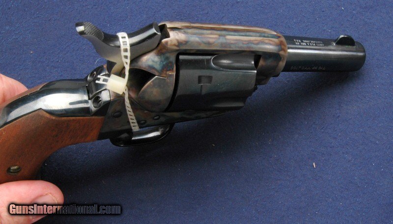 Description: A nice set at a nice price. This is a 3rd Gen Sheriffs model, with very nice color case hardening. Extra cylinder is 44-40, cylinder in the gun is .44 Special. Both are unfired and unturned. Factory fitted walnut grips. Only one spot on the upper left recoil shield where it looks like the color case rubbed off or just didn't take. Like a square quarter inch or so. You can see it in the picture of the left side of the gun. Otherwise really nice color case. The glass to case is not in perfect shape, has a few scratches and some water spots on the very front. $55 shipping to the lower 48, 3% surcharge for using a CC. If you choose to pay with a personal check, we will hold the item for up to 10 days to make sure that it clears. Please expedite such pymts as we will hold an item on your word for 5 days. SOLD Handgun Caliber: .44-40 Winchester (.44 WCF) |