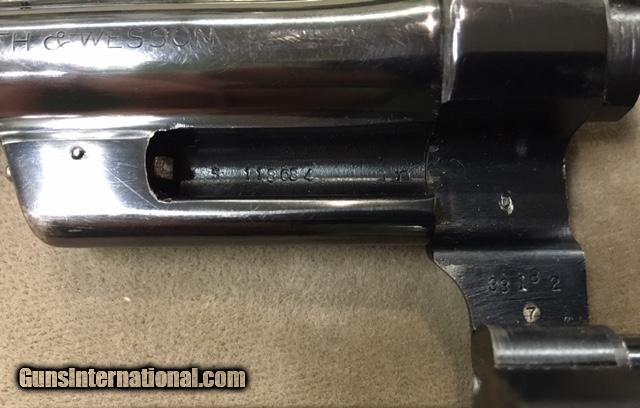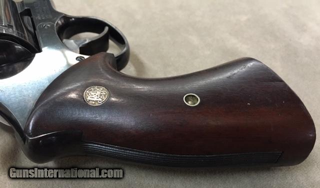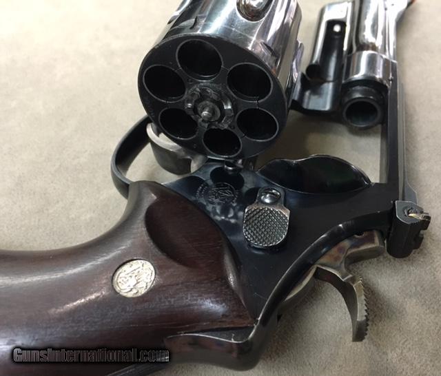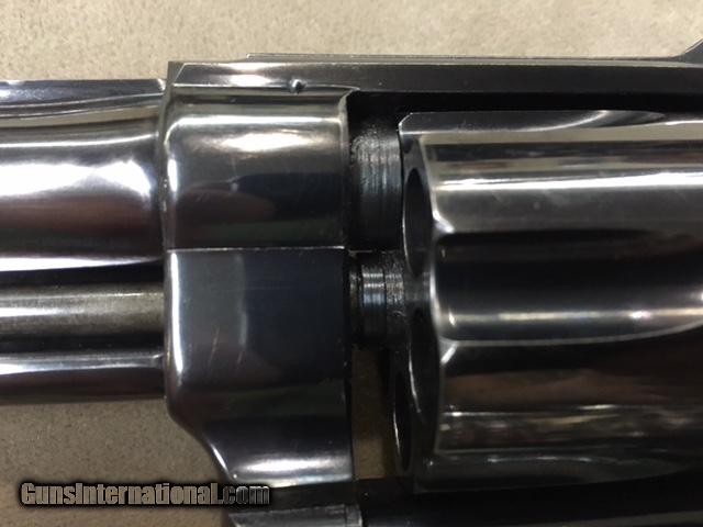 Description: REDUCED - This very rare S&W 1950 Target 4 Inch Revolver in .44 Special caliber is in excellent original factory condition, with only slight holster blue wear to both sides of the muzzle. Obviously the revolver was well cared for by the original owner. Bore and chambers are excellent. Revolver is exactly as pictured in the STANDARD CATALOG OF SMITH & WESSON by Supica & Nahas, inlcuding the smooth dark target grips with S&W medallians which appear to be rosewood but could be dark walnut. Revolver has small S&W Logo on the left side of the frame, with a plain unmarked sideplate. In addition, this revolver has the original Special Order Bright Blue finish which is seldom encountered. Grips are not numbered inside but appear 100% original, with a very fine crack and chip on the upper left rear of the grip which is hardly noticeable. Remember this is an S Prefix 5 Screw revolver, with serial number S118084 from the early 1950's. Some will call this model the Pre Model 24 or the .44 Hand Ejector 4th Model Target. Whatever you wish to call it these are quite scarce. You will find 100 of the 6&1/2 inch barreled 1950 Targets before you encounter one 4 inch revolver. They are that rare and hard to find - in fact more rare than the Pre Model 29 of slightly later vintage. This is the same type revolver that Elmer Keith used to develop his hot .44 Special loads that resulted in the formation of the .44 Magnum cartridge along with the S&W Model 29. A wonderful classic.... SOLD Curio/Relic: Yes |