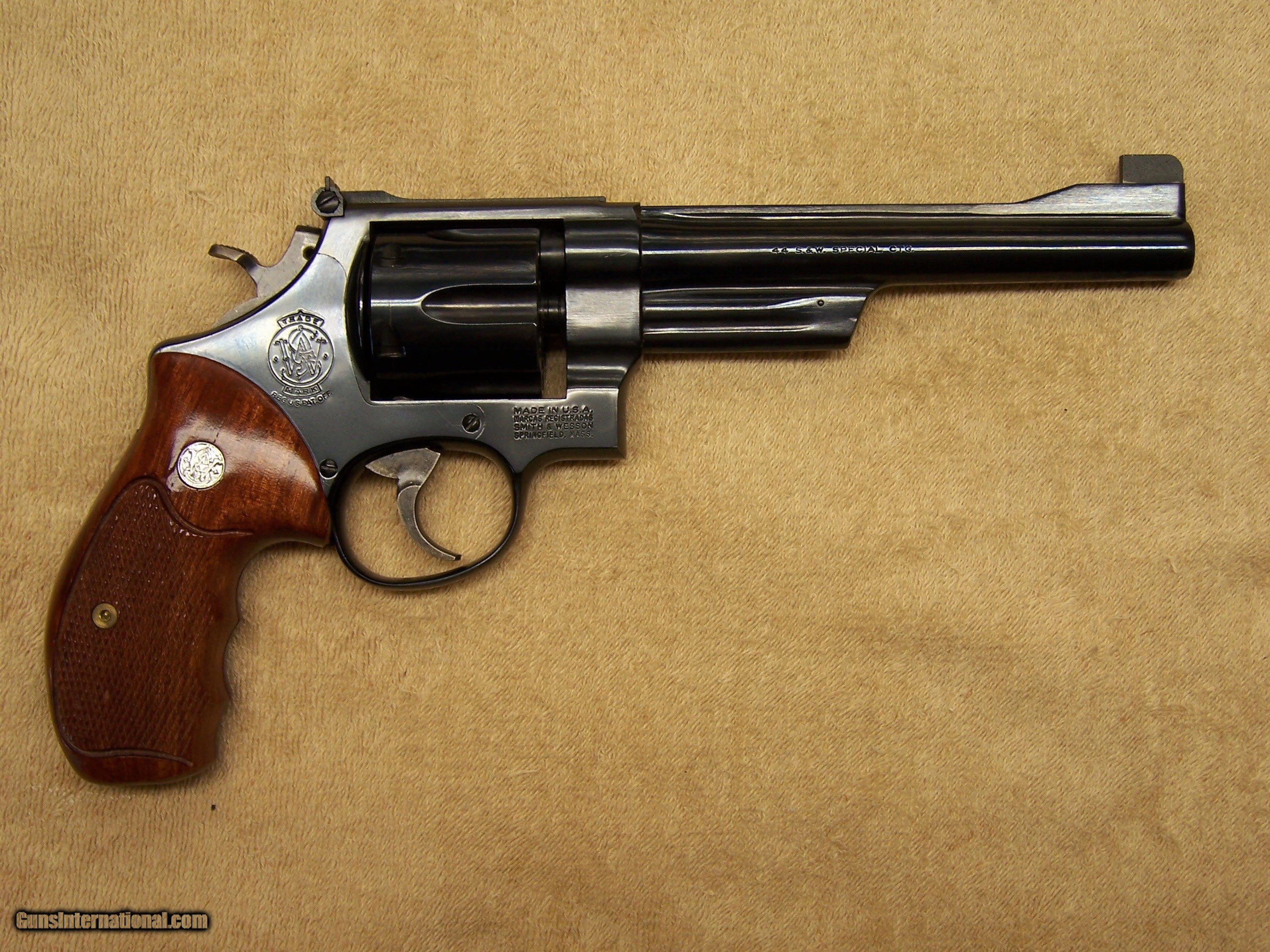 Description: This Special Order 24-3 was built in 1984 on a Combat frame with a 6 1/2" barrel . Round butt with combat grips, smooth faced trigger and a white outlined rear sight. Excellent condition, perfect bluing except for a faint turn line on the cylinder. S/N AEM0910 $50 shipping charge. No sales to CA. SOLD Handgun Caliber: .44 Special |