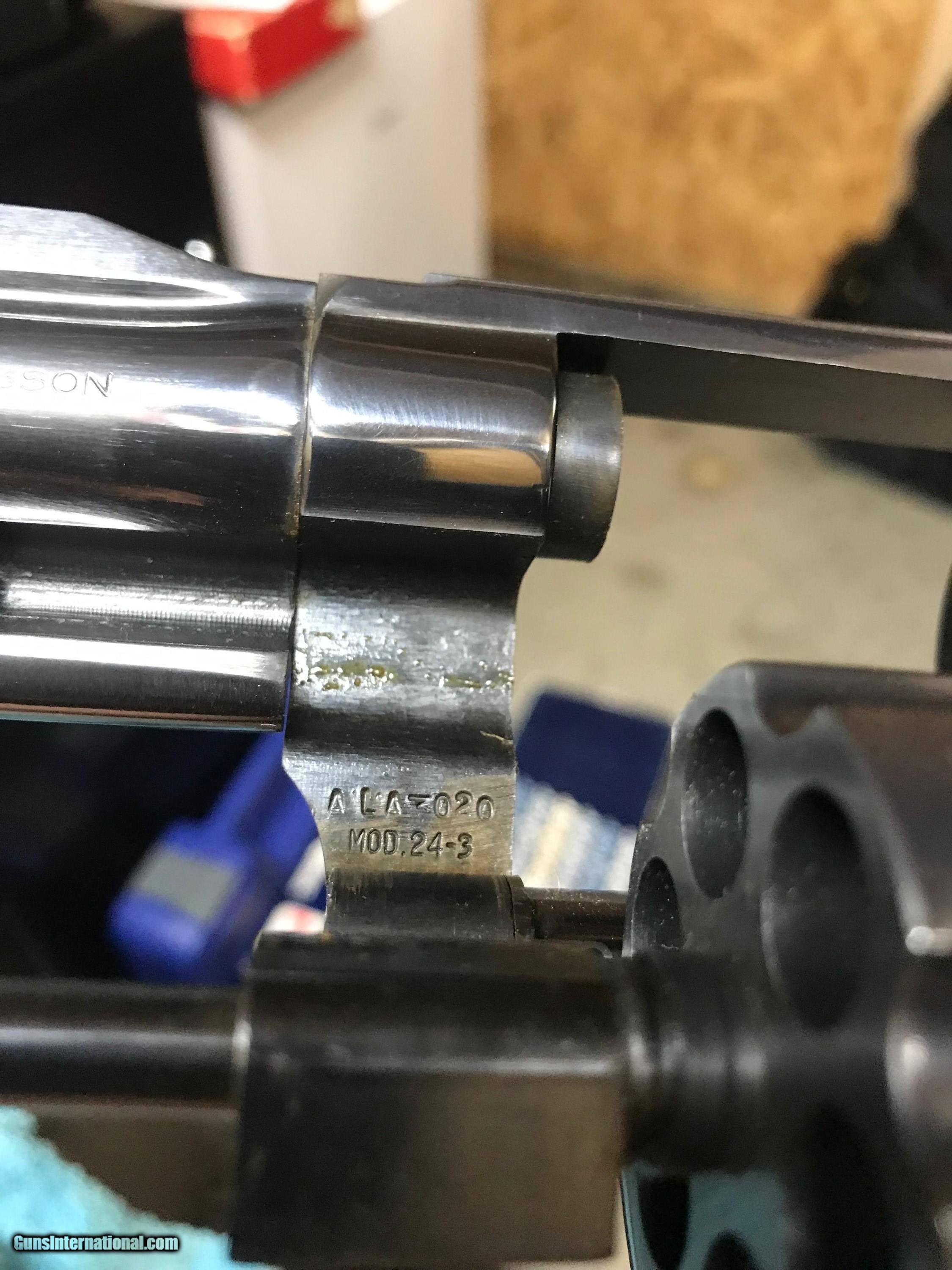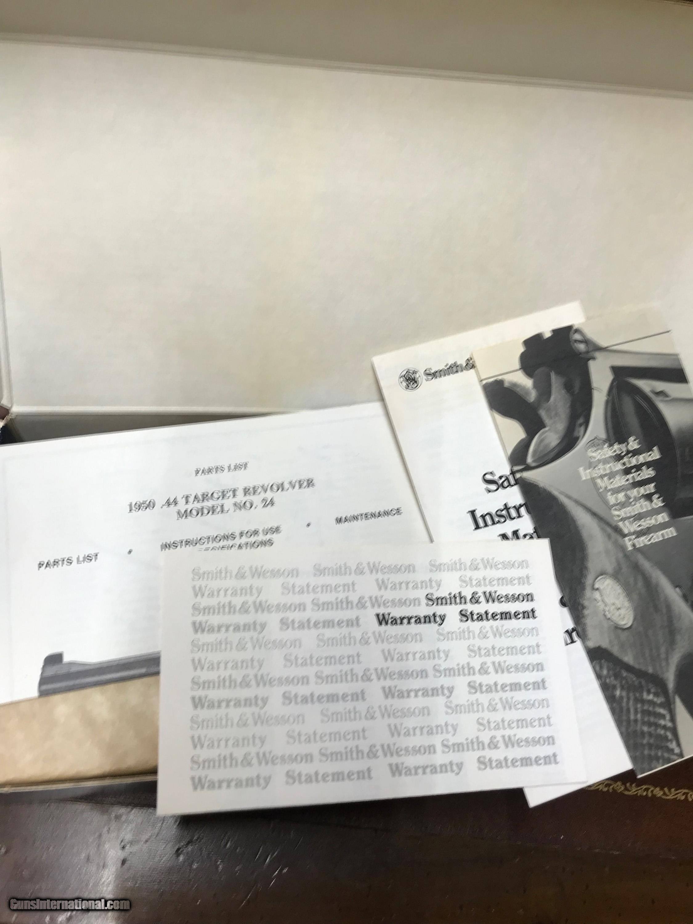 Description: It is always a privilege to have one of these fine 44 specials! 3 inch barrel, blue finish, target sights, combats, original numbered box, paper, and tools. This gun appears to be unfired although there is a faint turn line. Simply gorgeous! Please email with questions. Buyer pays shipping and insurance. Cards add 3% SOLD Manufacturer: Smith and Wesson Model: 24-3 Barrel Length: 3 inch Condition: LNIB Metal Condition: Excellent Wood Condition: Excellent Bore Condition: Excellent Action: Double Finish: Blue Sights: Target Item Location: 37075 |