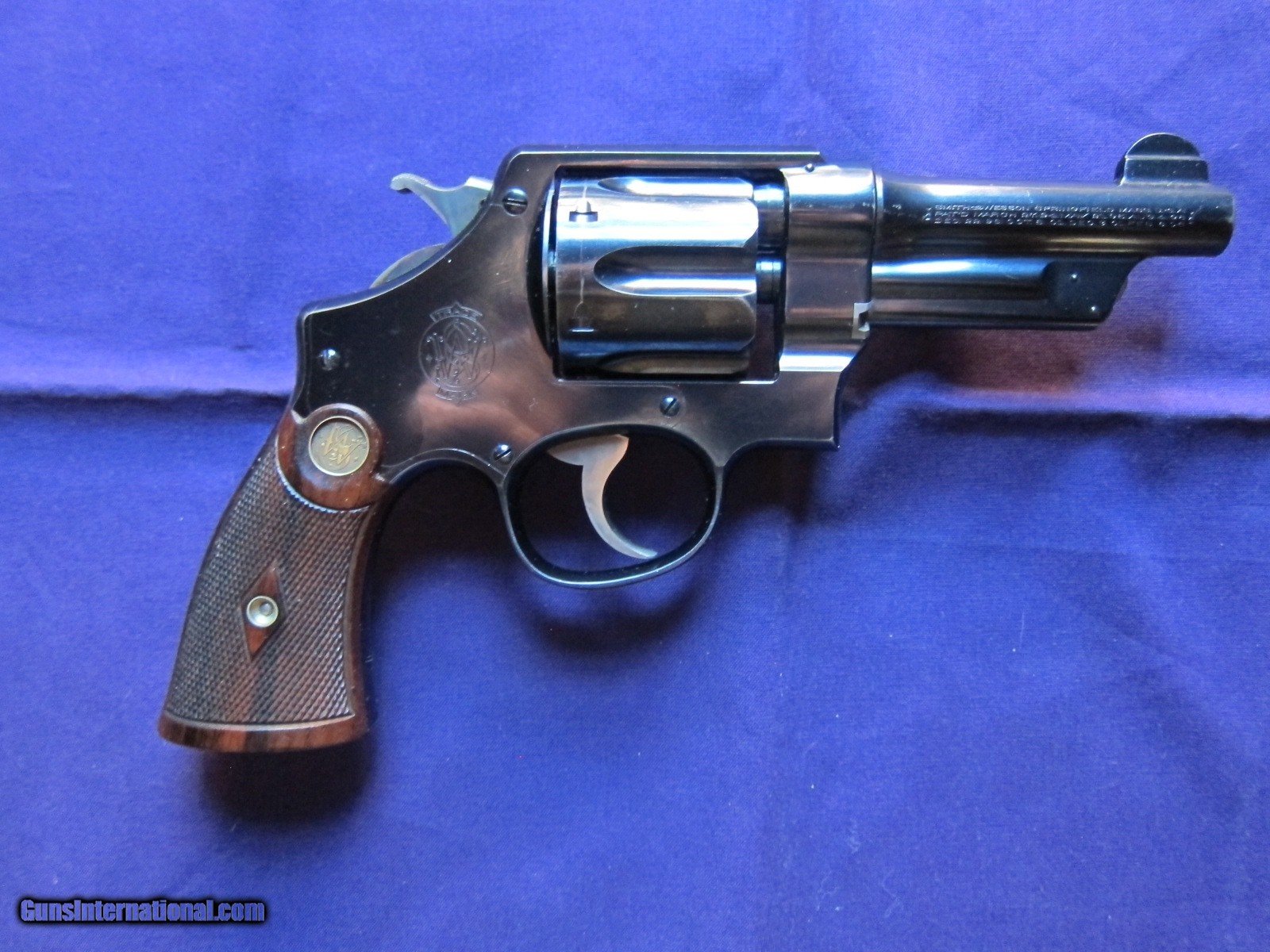 Description: Listed here is a well preserved Smith&Wesson tripple lock revolver produced in 1915. Its condition is remarkable for its age and the bore is mint. The action remains smooth as most of these early pistols produced by the company were. The high polished 98% blue finish contains a few minor blemishes and the cylinder has a modest ring as most due when they've seen 107 seven years of life. The majority of these pistols were produced with 5, 5 1/2 or 6 1/2 inch barrels but this one has the more rare barrel length of 4 inches. From late 1907 to the end of 1915 a little more than 15,000 of the guns were developed in mostly the .44 caliber. According to some authorities a very few were produced in the .38/40 and .45 calibers. These were indeed rare guns. During early WW1 the British ordered around two thousand of these revolvers in the .455 caliber but their use in the muddy trenches of the then battle fields caused the delicate tripple lock mechanism to malfunction. Later guns delivered to the British soldiers were made without the under barrel protective encasement of the cylinder pin and so proved to be very functional and worthy firearms. As this early large frame pistol came into being it hearlded the onset of a type firearm that was to be the nudus of an assortment of guns by Smith &Wesson that evolved throughout the twentieth century. Quite a few mid century writers touted this gun as the best ever produced. Elmer Keith highly supported this model pistol and it was carried by the likes of Keith and Frank Hammer, the government agent responsible for taking down Bonnie and Clyde Barrow. In today's world with profit margins and sales being the only real manufacturing considerations pistols like this can not be produced. The cost would be prohibitive. I've taken a few pictures of the listed gun for your review and hopefully they will answer most questions. If not, either call or communicate through the G.I.site. Always remember that condition dictates the value of any iconic legendary antique pistol and time will never see it devaluation. Thanks for taking a look. Jack SOLD Curio/Relic: Yes Antique: Yes Handgun Caliber: .44 Special |