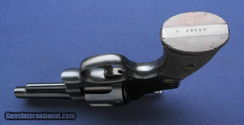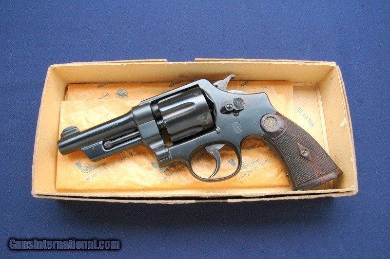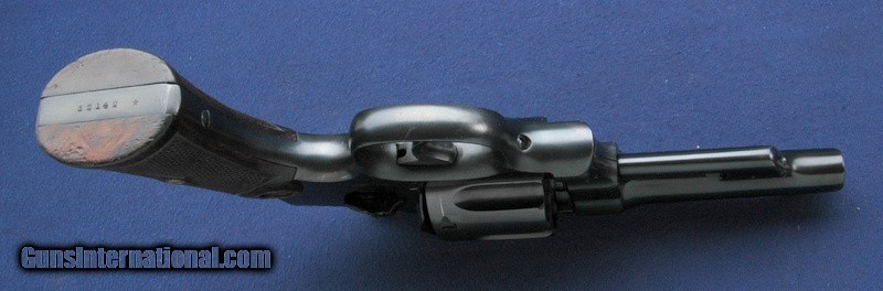 Description: This one is a 3rd Model Hand Ejector, with a star stamp on the butt indicating factory reblue! Excellent original condition overall, solid original grips, solid tight lock up, 4" barrel with a minty bore. This one is a real sweetheart. Box of course is postwar and this is a pre war gun, but it's a great original box nonetheless. You won't see many like this. $35 shipping to the lower 48, 3% surcharge for using a CC. If you choose to pay with a personal check, we will hold the item for up to 10 days to make sure that it clears. Please expedite such pymts as we will hold an item on your word for 5 days. SOLD |