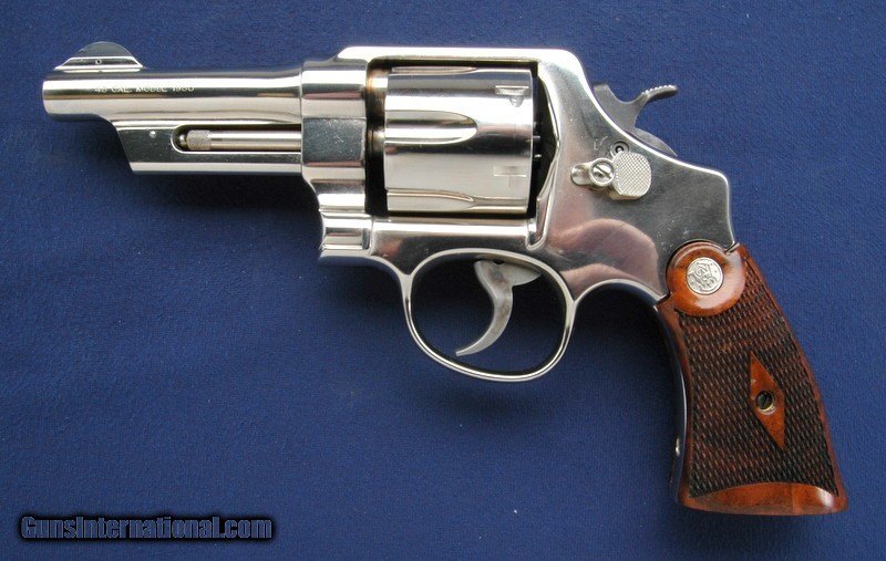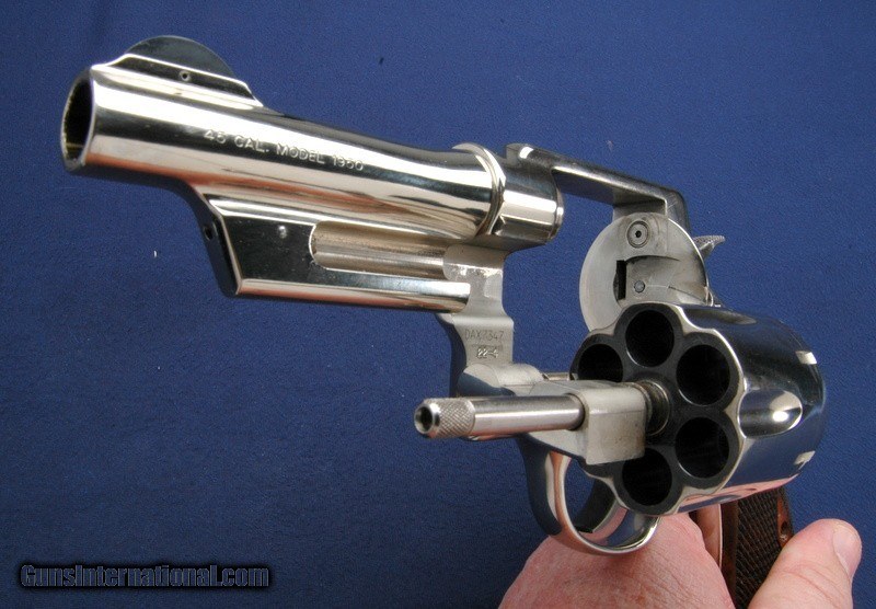 Description: Very nice condition used S&W 22-4. This revolver is chambered in .45 acp, which is a very affordable and effective defensive cartridge. Checkered wood grips, no box or papers. I have one of these, I put a set of Pachmayr grips on it, fit great, very controllable. Classc carry gun as well, based on the Target Model of 1950, excellent nickel finish as well. This was sold to us without the lock key, which, if you want, can be gotten from S&W, prob for free. $35 shipping to the lower 48, 3% surcharge for using a CC. If you choose to pay with a personal check, we will hold the item for up to 10 days to make sure that it clears. Please expedite such pymts as we will hold an item on your word for 5 days. SOLD |