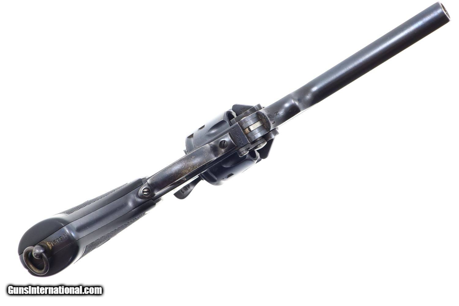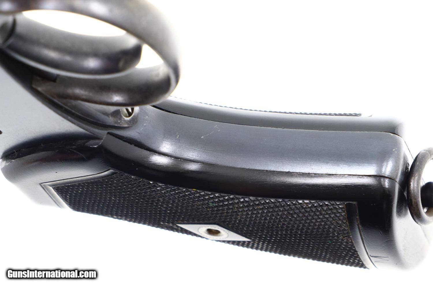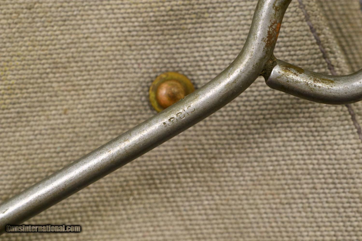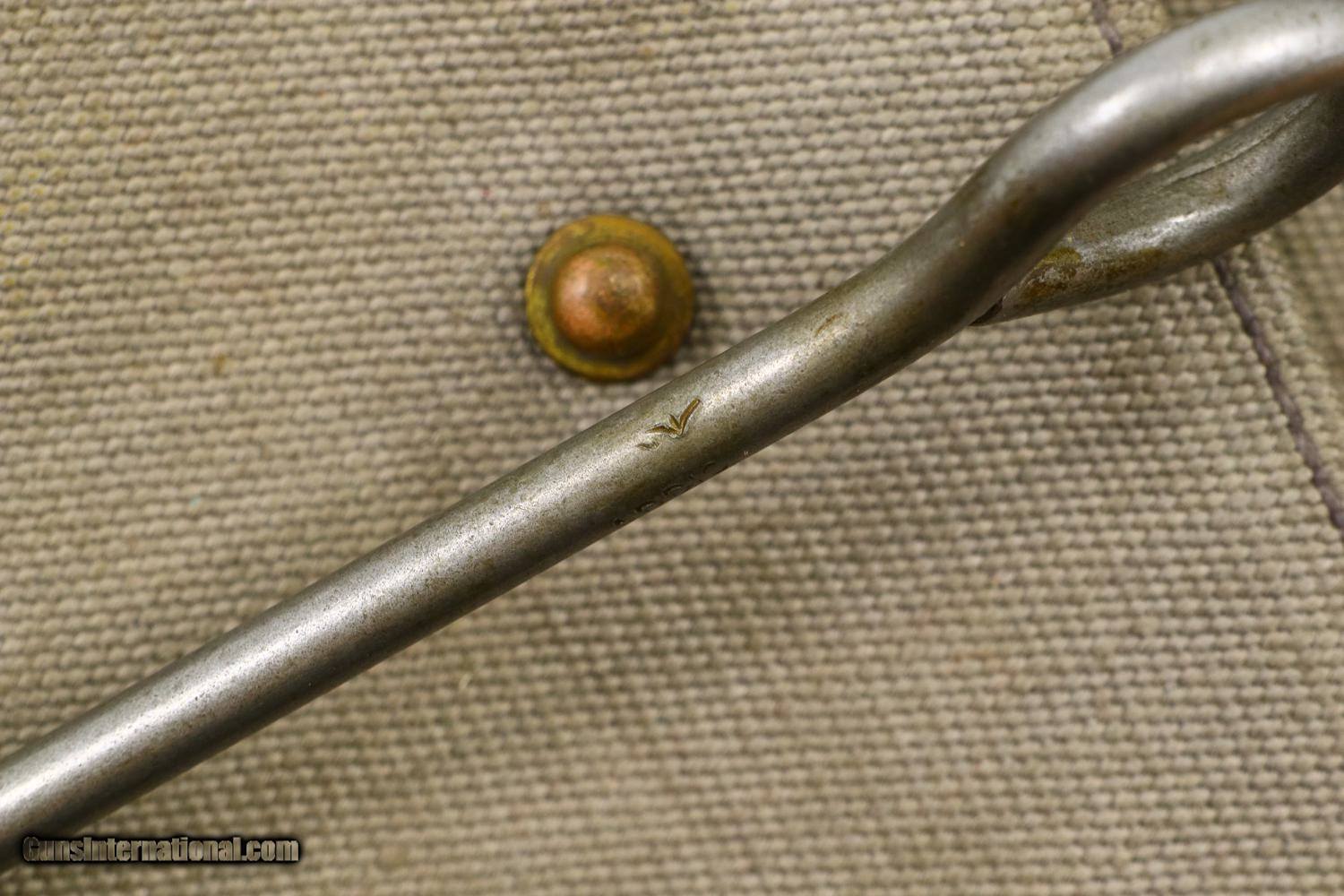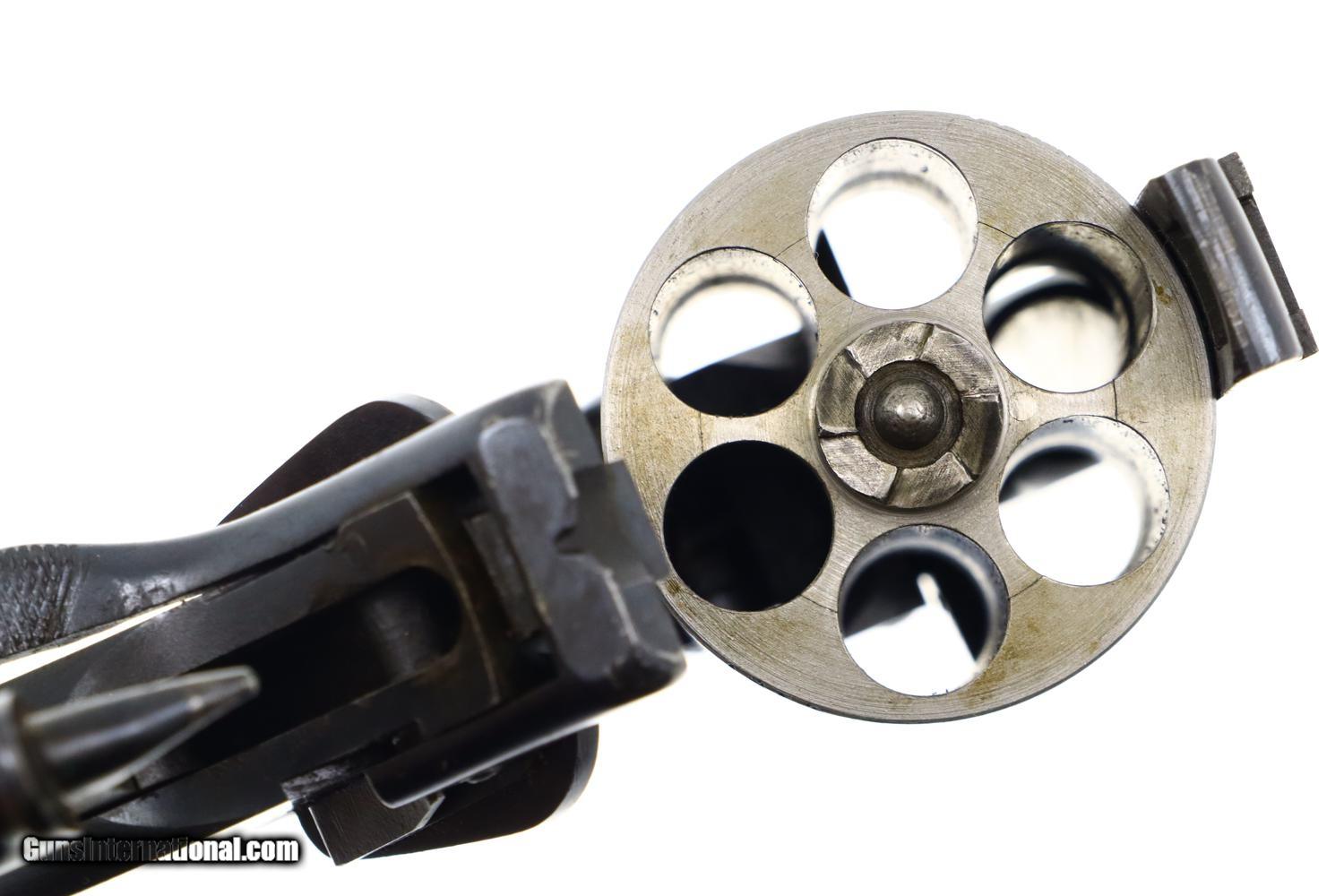 Description: Synopsis: Webley Mark VI, British Military WWI, Holster, N3481, FB01127 Description: Large and immediately recognizable Webley Mark VI revolver from WWI, this example manufactured in 1915, later reworked to allow chambering of the .45 ACP cartridge/half moon clips. In the course of reworking, the gun was renumbered now to matched to N3481 that appears on the bottom of the barrel lug, on cylinder (partially shaved off), right side of trigger guard, and bottom of frame. Markings are otherwise standard to include the Mark VI reference on the left side of the top strap and the Webley patent reference on the left side of the frame. Usual scattered British proofs. Fitted with original bakelite grips and rotatable lanyard ring. Complete with original WWII khaki belt holster dated 42 and original British proofed cleaning rod. Condition: VG+ as arsenal reworked, now with 90-95% of the reworked finish, minimal sharp edge wear, oxidative etching on bottom of trigger guard as carefully photographed. Mirror bore. Perfect manual mechanics. EXC holster and cleaning rod. A very nice ensemble originally made in 1915, then reworked to a more popular caliber, complete with WWII Military holster and accepted cleaning rod. ~~Insured shipping fee of $55; most packages shipped using FedEx 2nd Day.~~ SOLD Curio/Relic: Yes Manufacturer: Webley Serial Number: N3481 Caliber Info: .45 ACP |